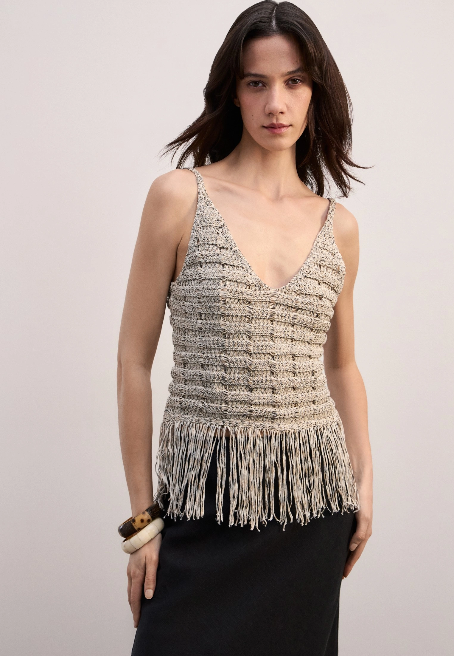 Топ вязаный на тонких бретелях — идеальный выбор для создания стильного и уютного образа.