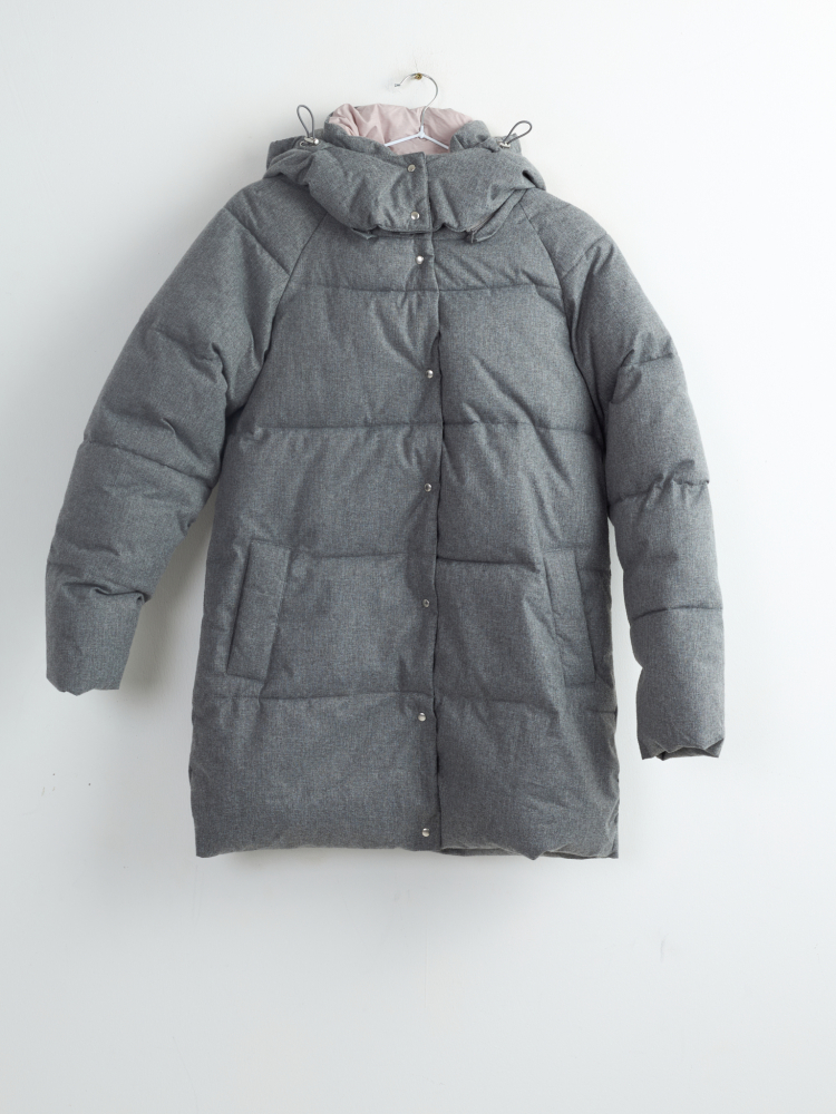 Стильный и практичный пуховик серого цвета со съёмным капюшоном. Прекрасно подойдёт для холодного времени года, обеспечит комфорт и тепло.
