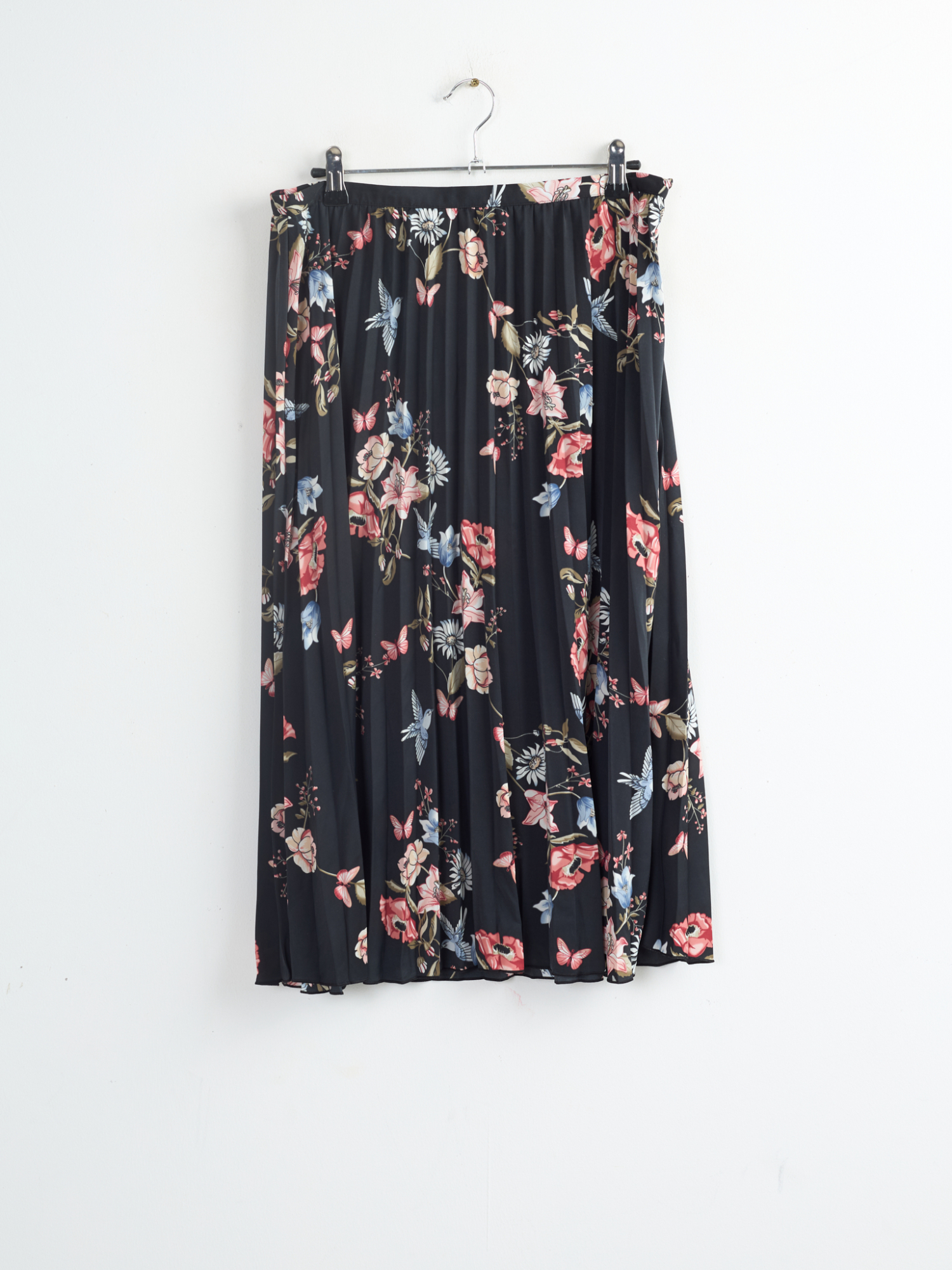 Плиссированная юбка миди с цветочным принтом — это стильный и яркий элемент гардероба. Она подойдёт для создания как повседневных, так и более нарядных образов.