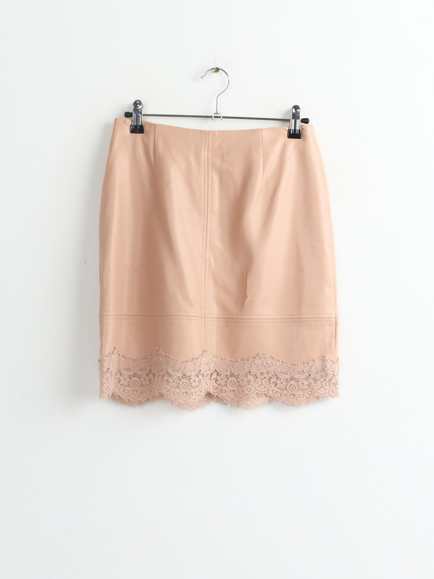 Элегантная кожаная юбка с кружевной отделкой — идеальный выбор для создания стильного образа. Модель подчеркнёт вашу индивидуальность и добавит нотку изысканности в ваш гардероб.