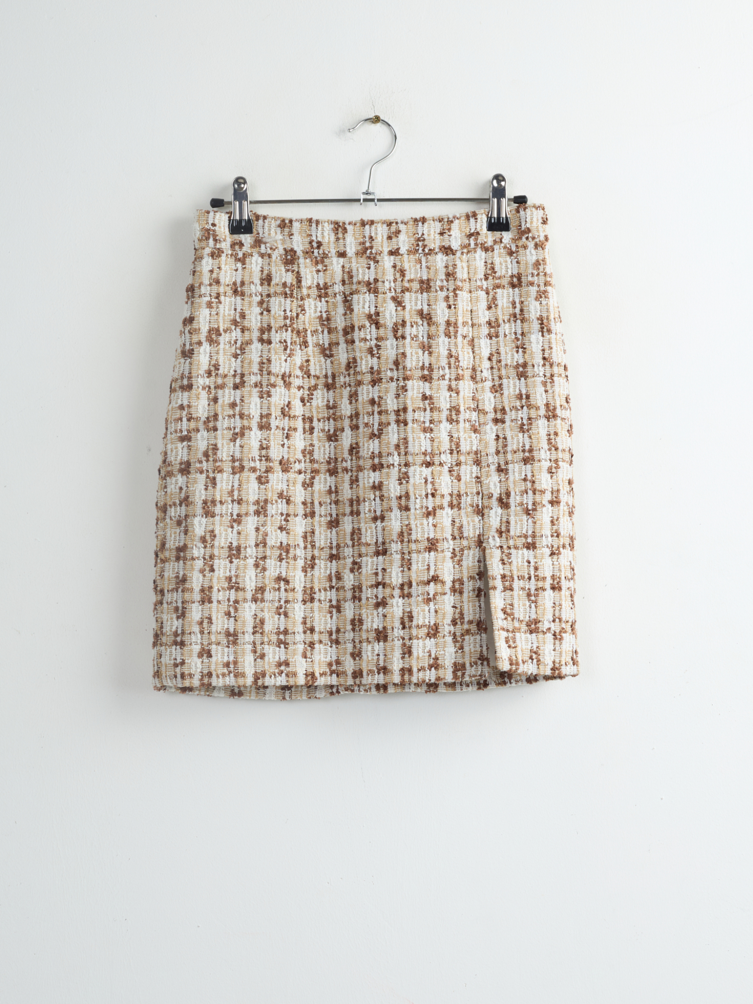 Твидовая мини-юбка в клетку — стильный и элегантный элемент гардероба. Она идеально подходит для создания модных и современных образов.