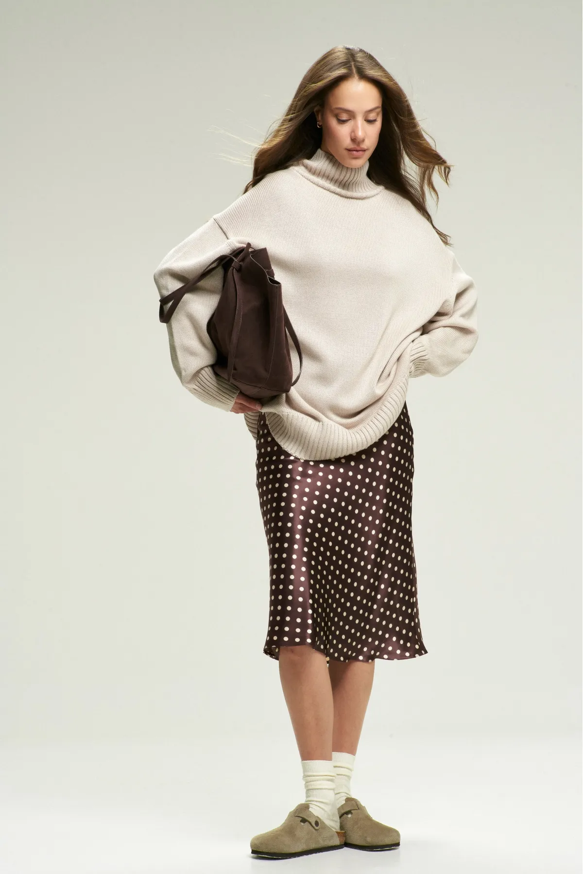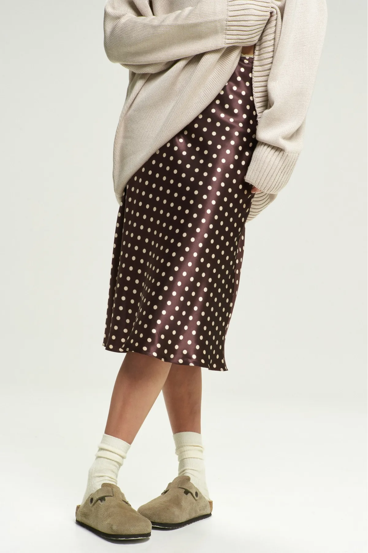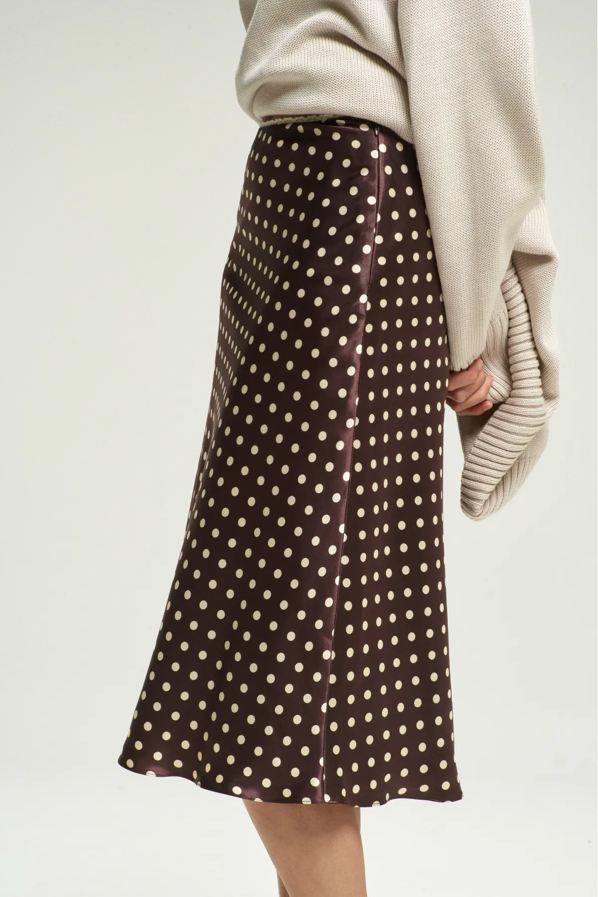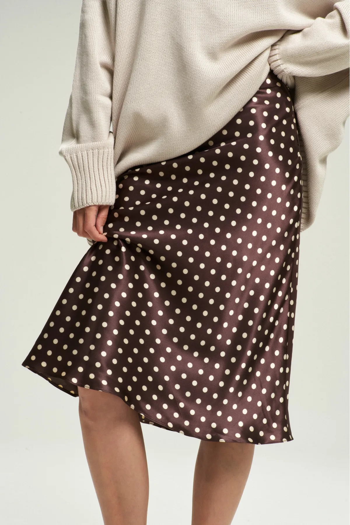 Это вариант для тех, кто ценит лёгкость в движении и утончённые детали. Модель средней длины, скроенная по косой, мягко обнимает бедра и плавно расширяется книзу, создавая элегантный силуэт. Декоративная тесьма подчёркивает принт и аккуратно акцентирует талию.