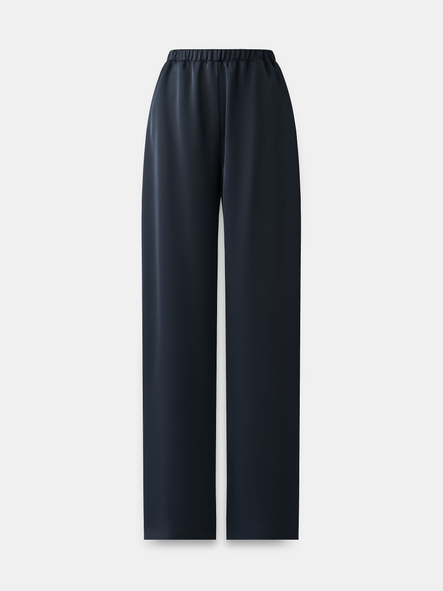Прямые свободные брюки из струящейся шелковистой ткани можно надеть на вечернее событие, а также в офис. Выполнены на широкой эластичной резинке, которая варьирует посадку, создает изящные складки и отменяет необходимость подбирать ремень. Модель дополнена боковыми карманами.