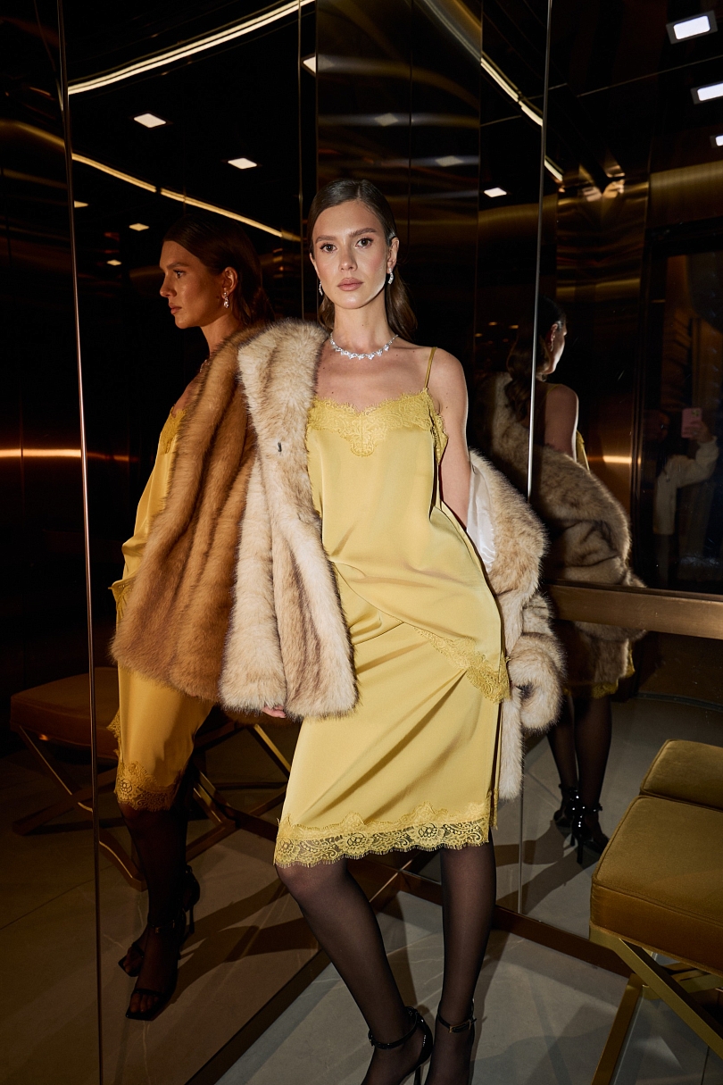 Юбка миди с кружевом — элегантная модель средней длины. Изделие выполнено из полупрозрачного кружева с выразительным ажурным узором по низу. Такая юбка подходит для романтических и вечерних образов, легко сочетается с однотонными топами и блузами.