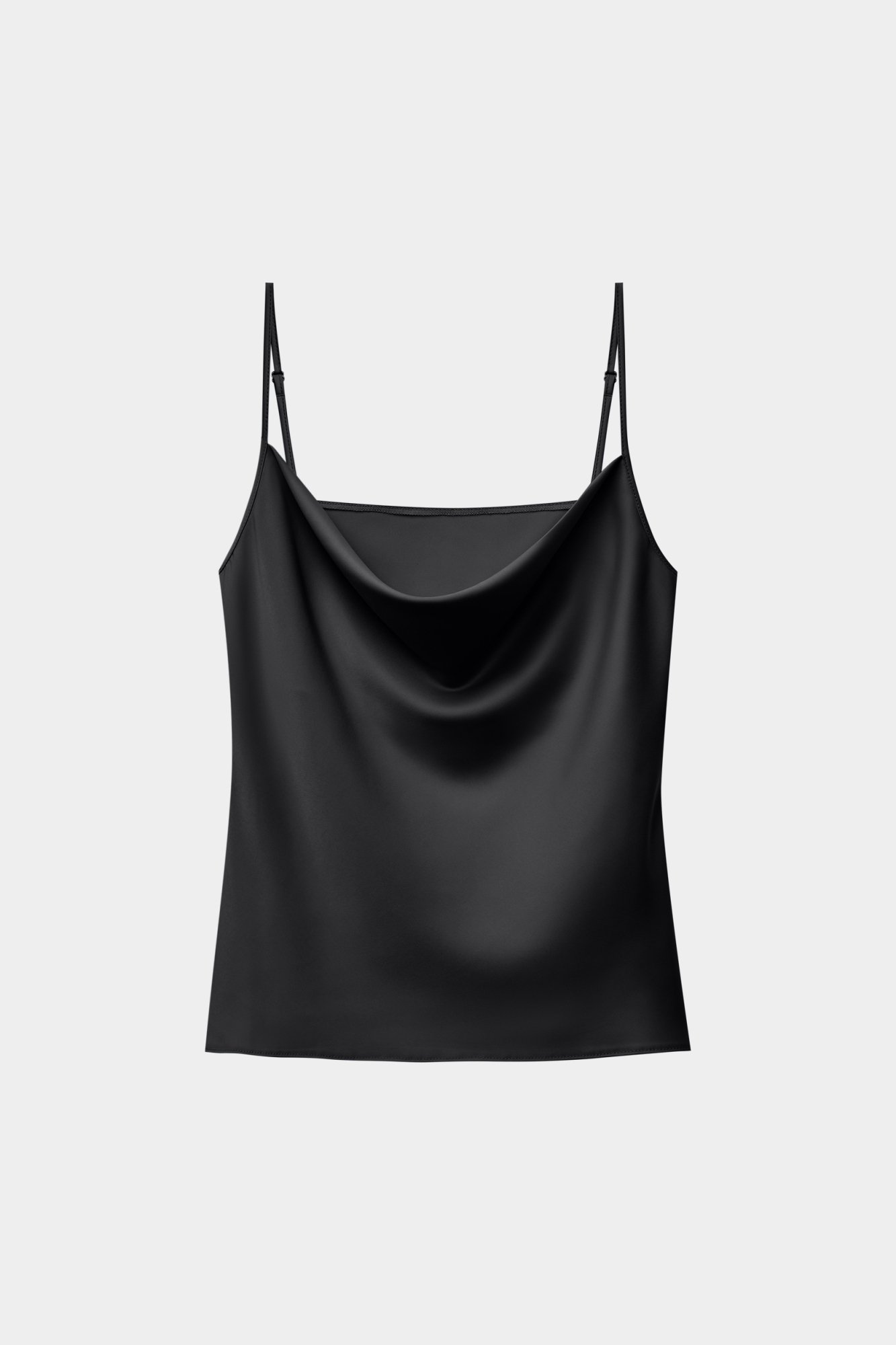 Изысканность и элегантность в чёрном цвете — роскошный топ в бельевом стиле. Тонкие бретели и драпировка создают утончённый образ. Отличный выбор для создания нежного и женственного лука.