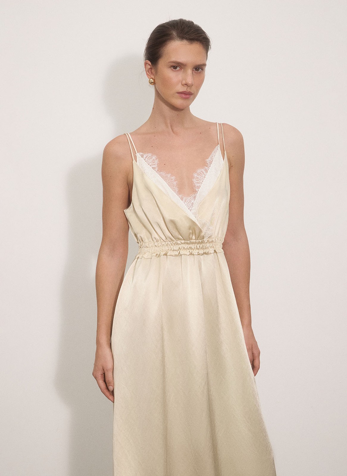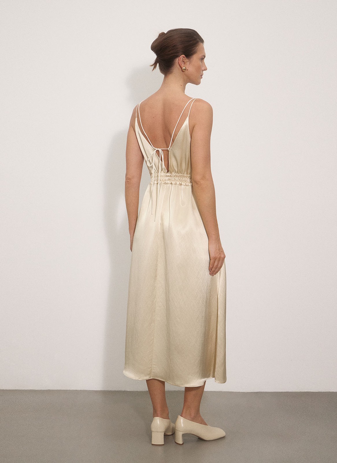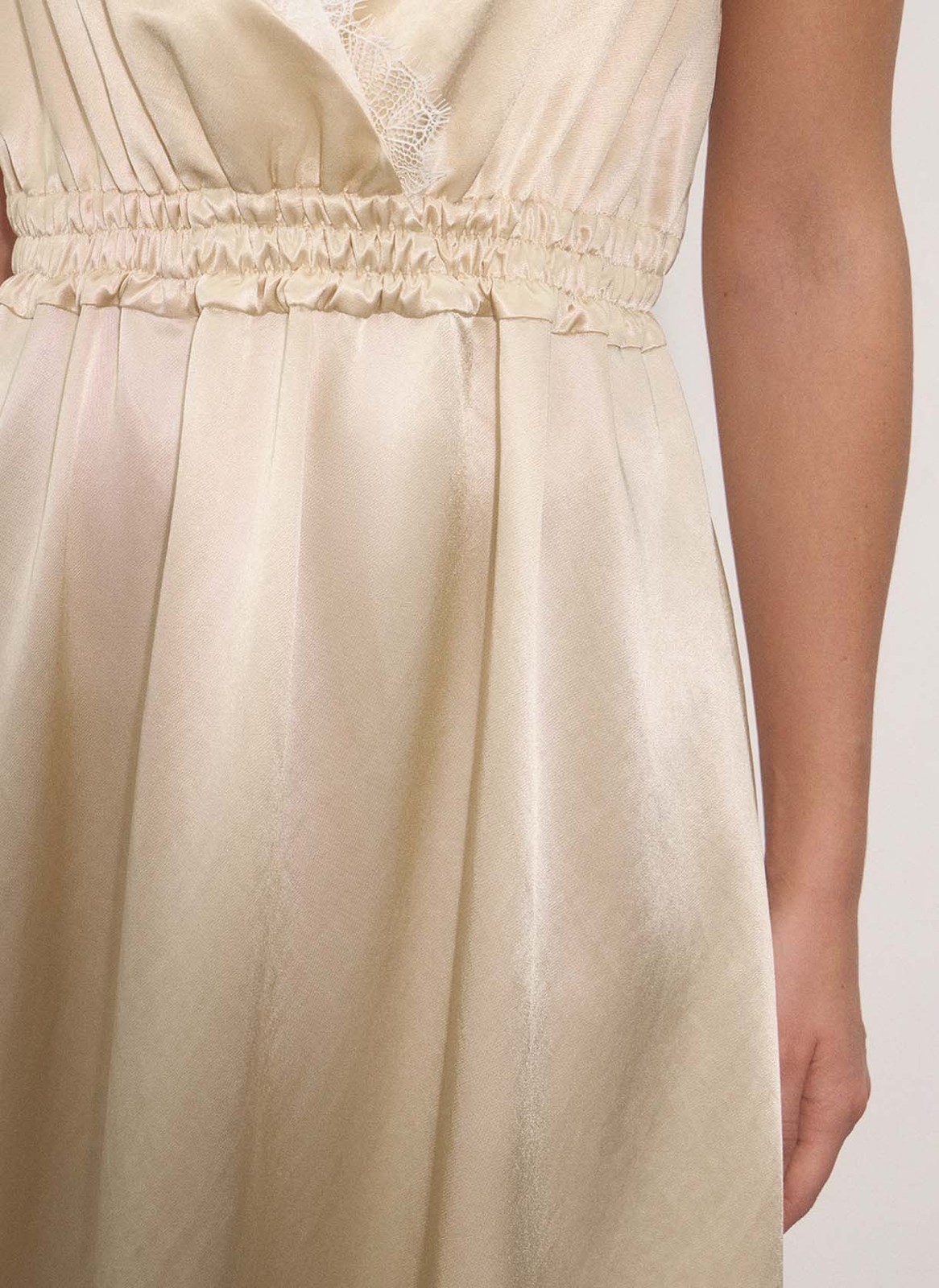 Модель выполнена из нежной атласной ткани, которая красиво струится и позволяет коже дышать благодаря волокнам вискозы.