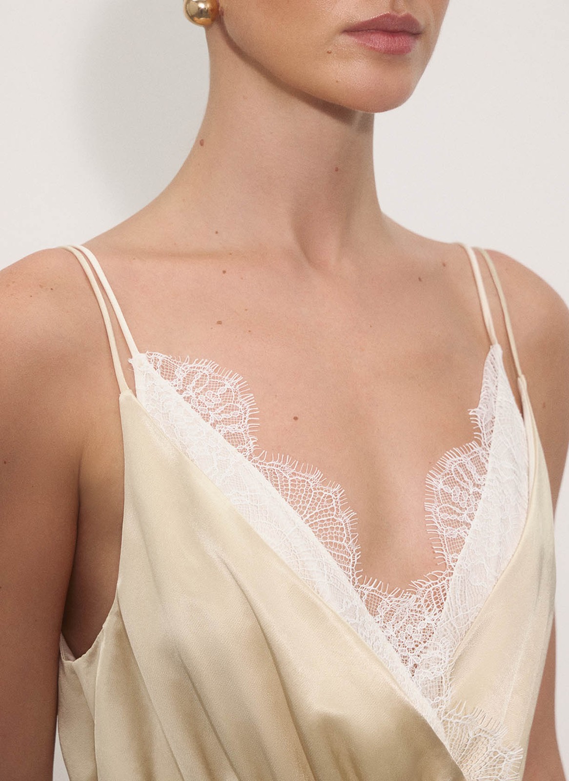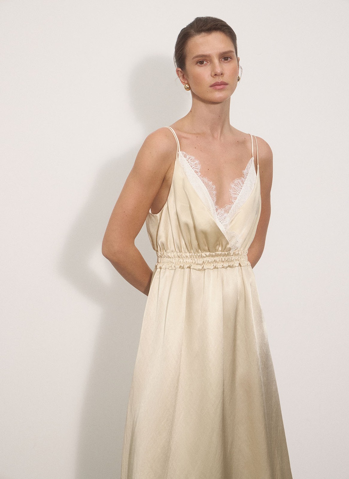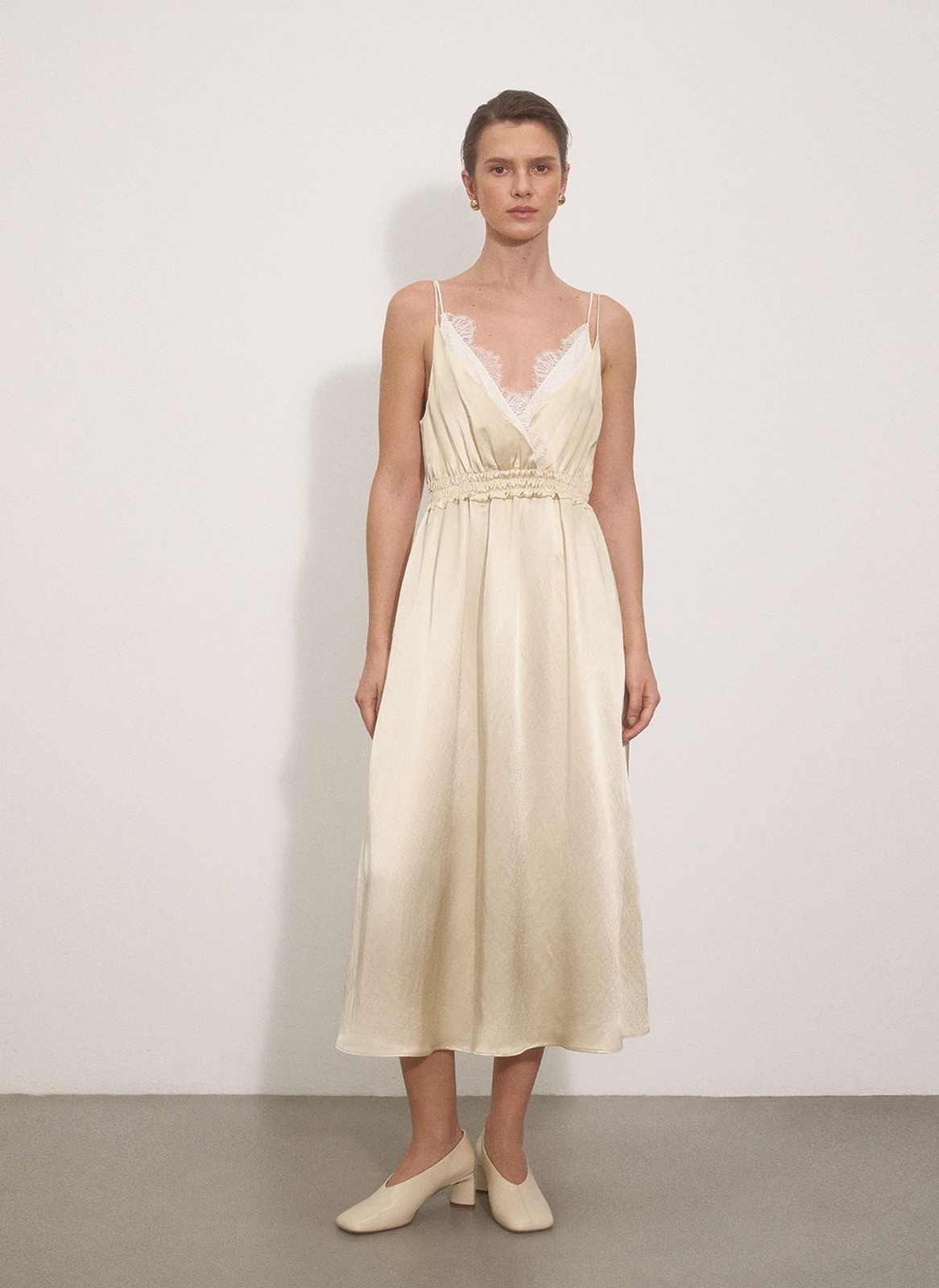 Модель выполнена из нежной атласной ткани, которая красиво струится и позволяет коже дышать благодаря волокнам вискозы.