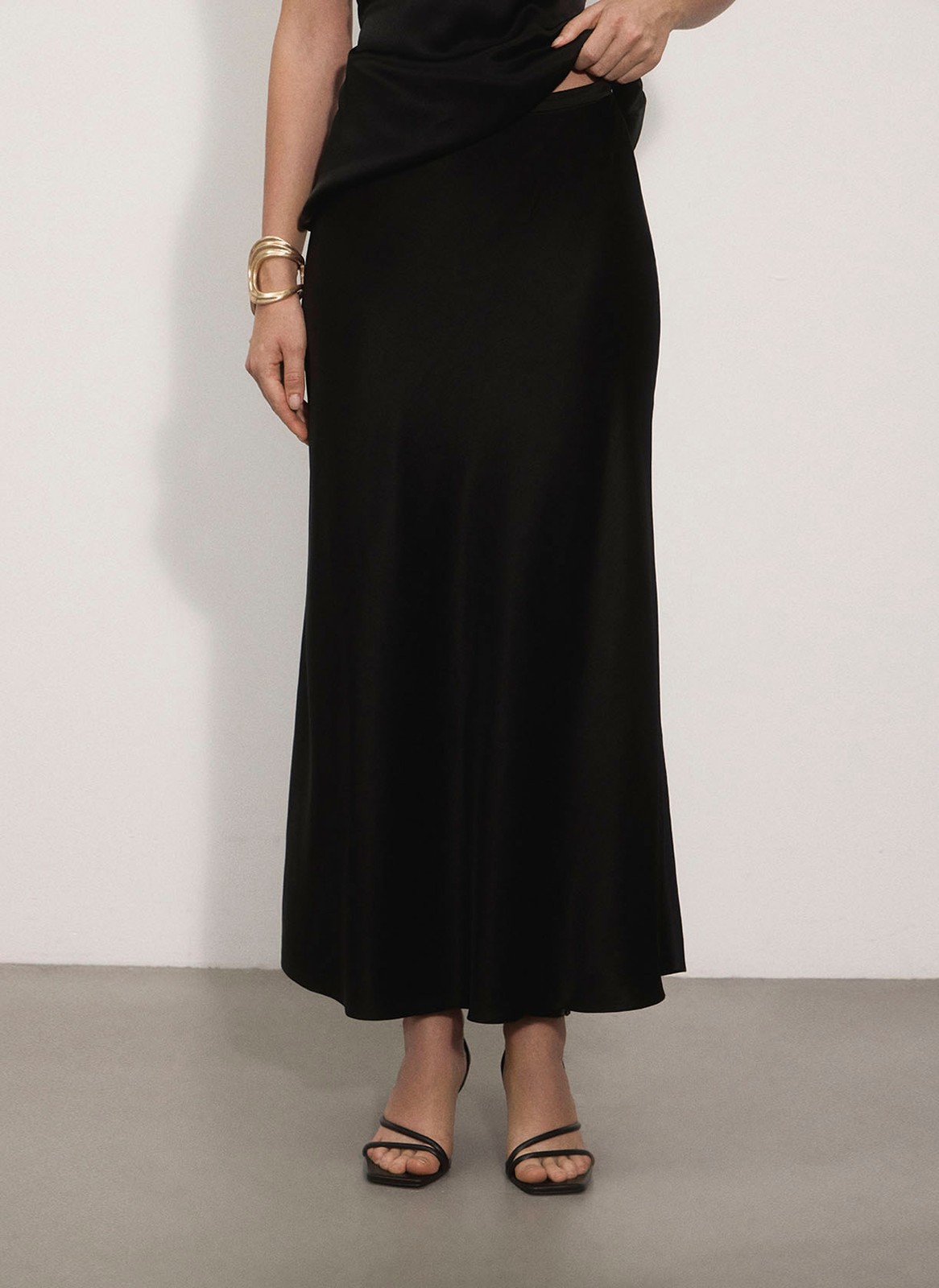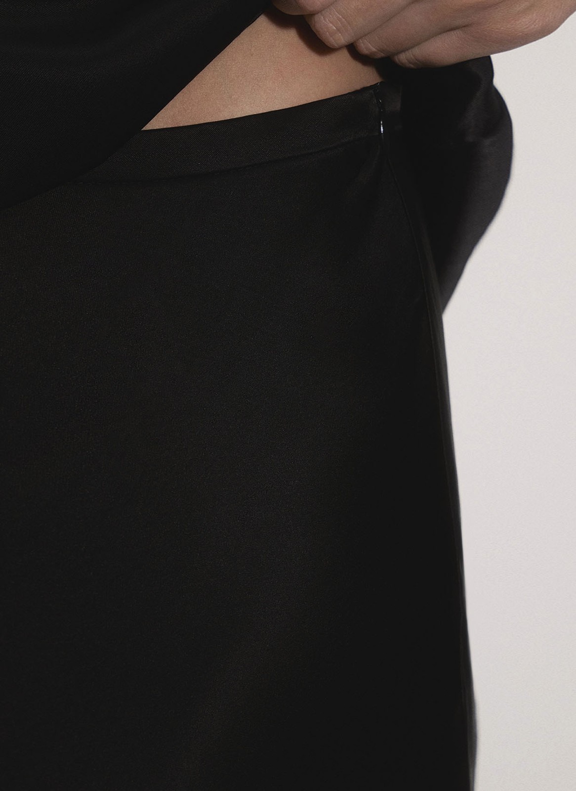 Благодаря крою по косой модель эффектно подчёркивает фигуру, создавая плавные линии и женственный силуэт. Застёжка на молнию в боковом шве обеспечивает аккуратный вид.