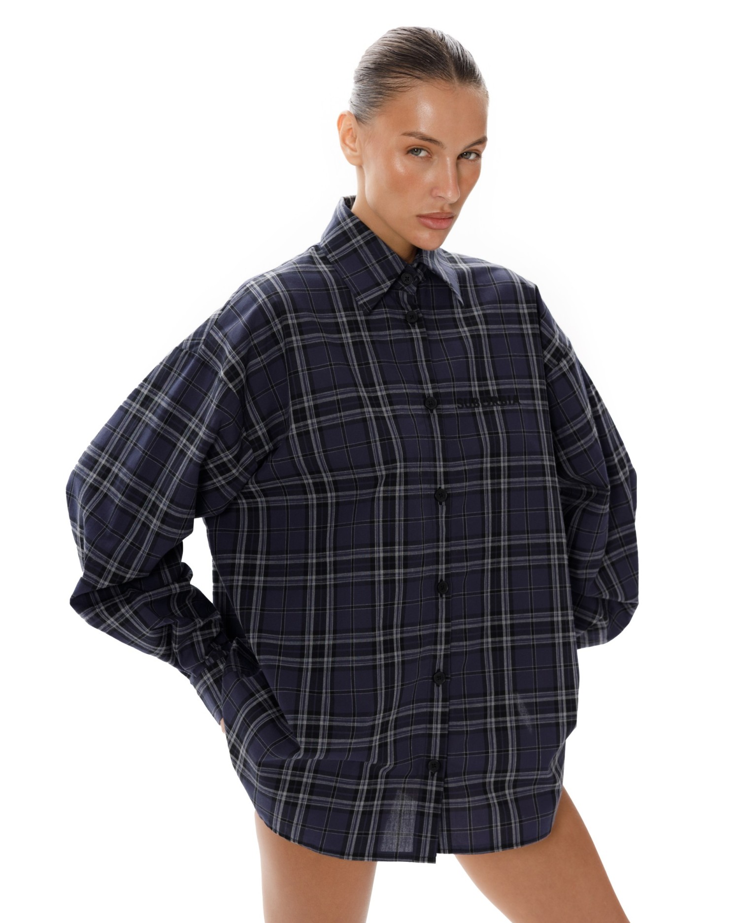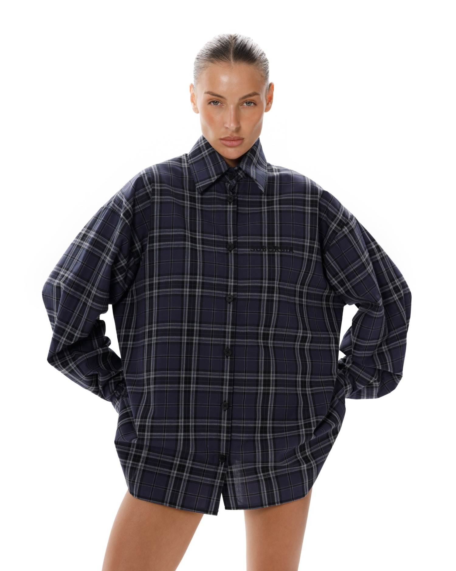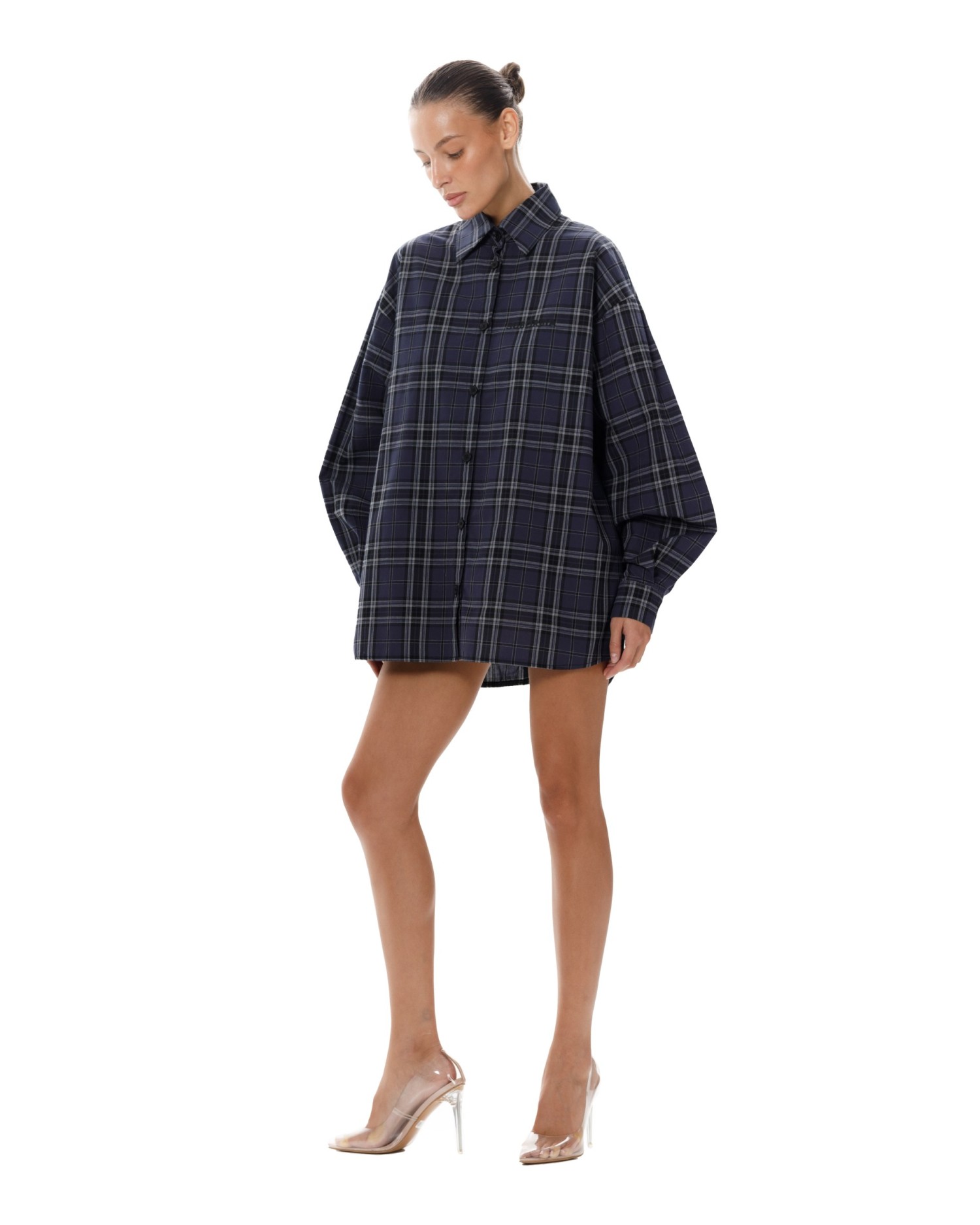 Рубашка в клетку оверсайз кроя с отложным воротником.
