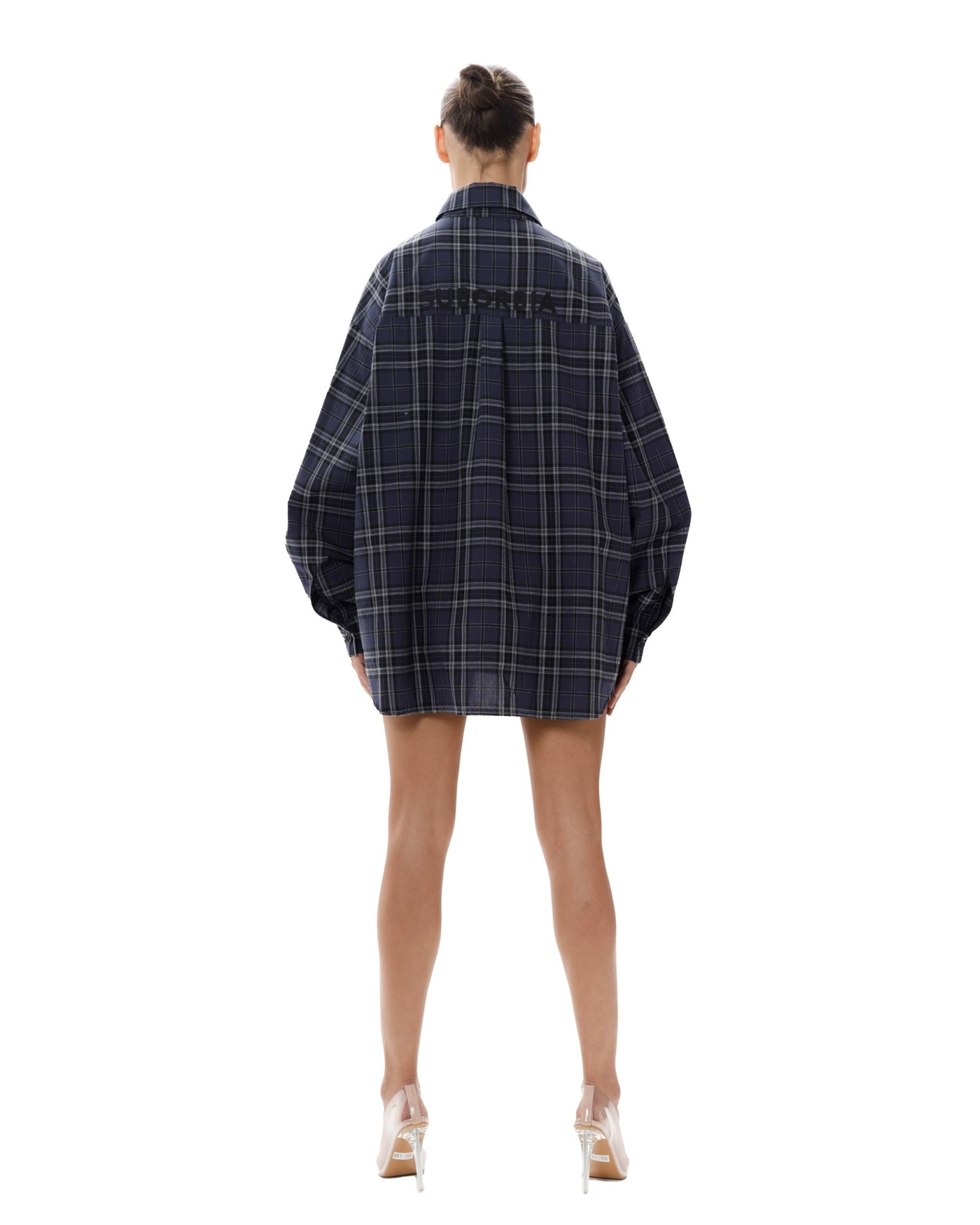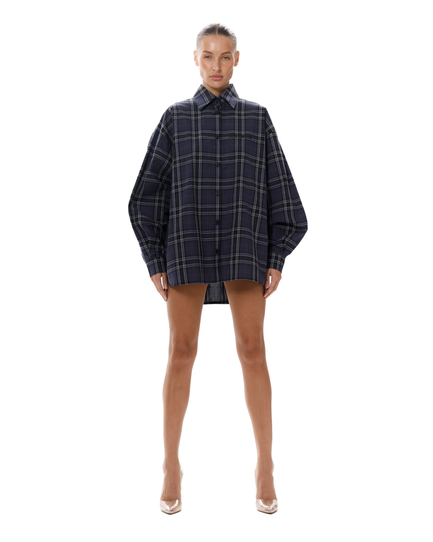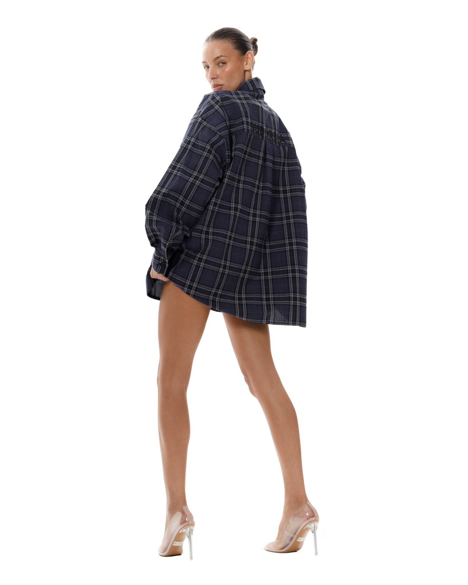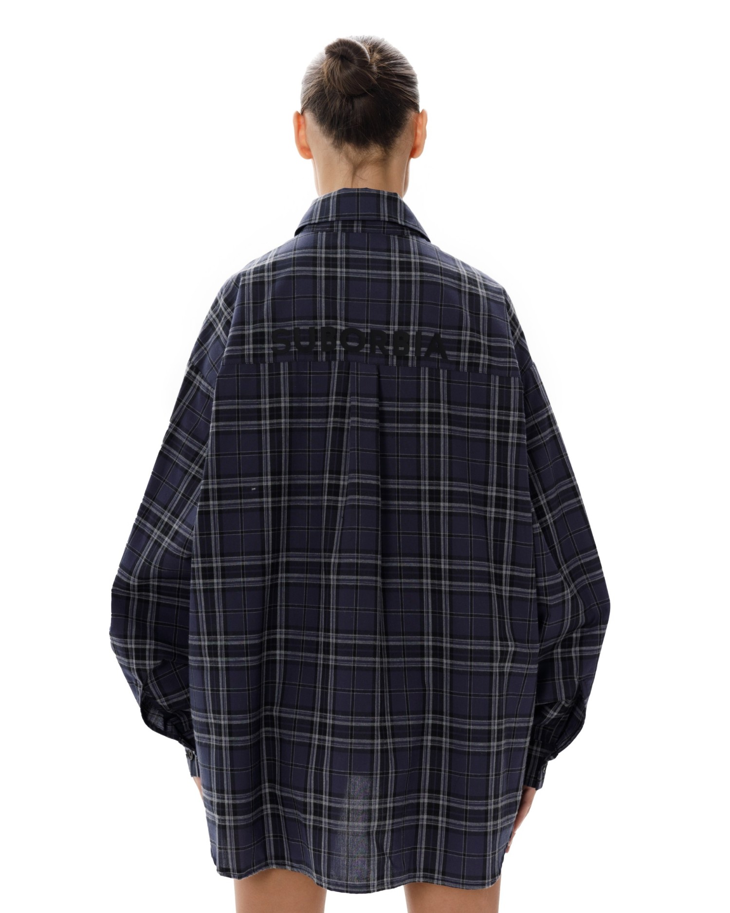 Рубашка в клетку оверсайз кроя с отложным воротником.