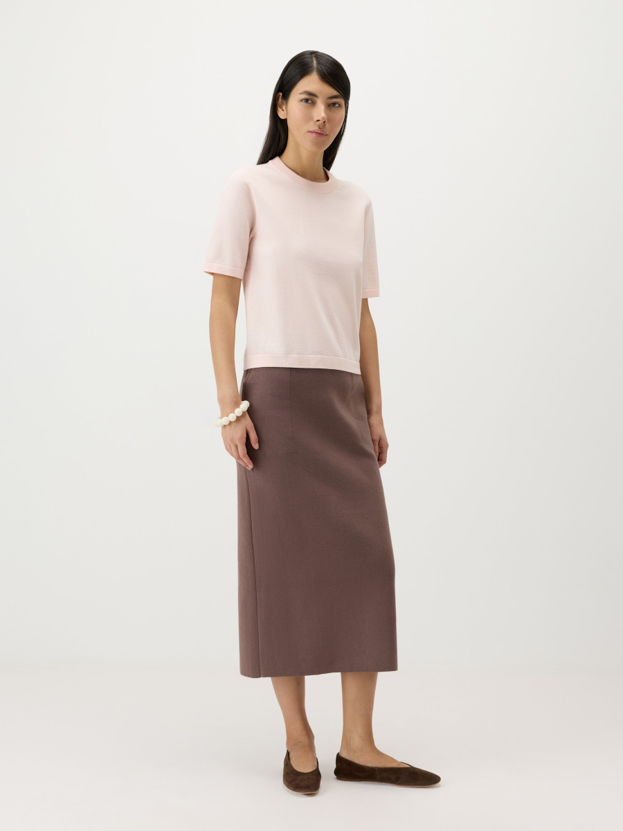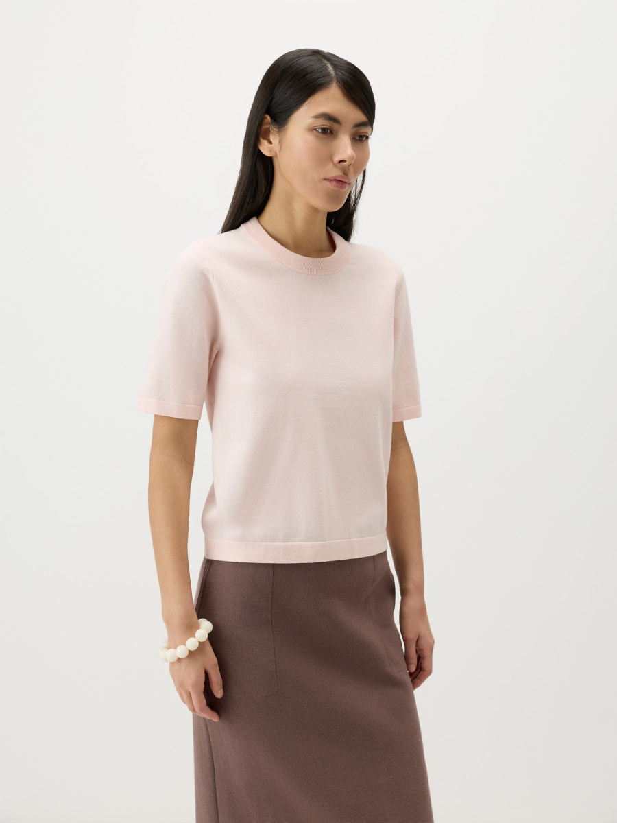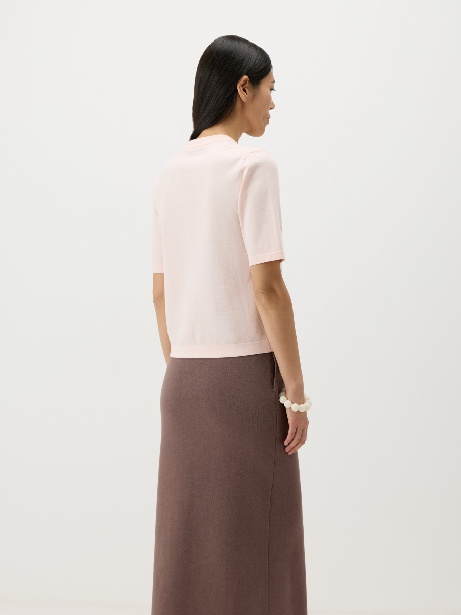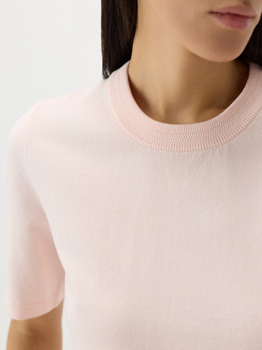 Лаконичный джемпер на каждый день: прямой фит, среднее облегание без лишнего объема, длина для стилизации навыпуск и под заправку. Гладкое полотно тонкого плетения 12 класса из 100% хлопка комфортно ощущается на коже. Декоративная обработка выреза делает модель выразительной, а плоская обвязка рукавов и низа формирует аккуратный силуэт.
