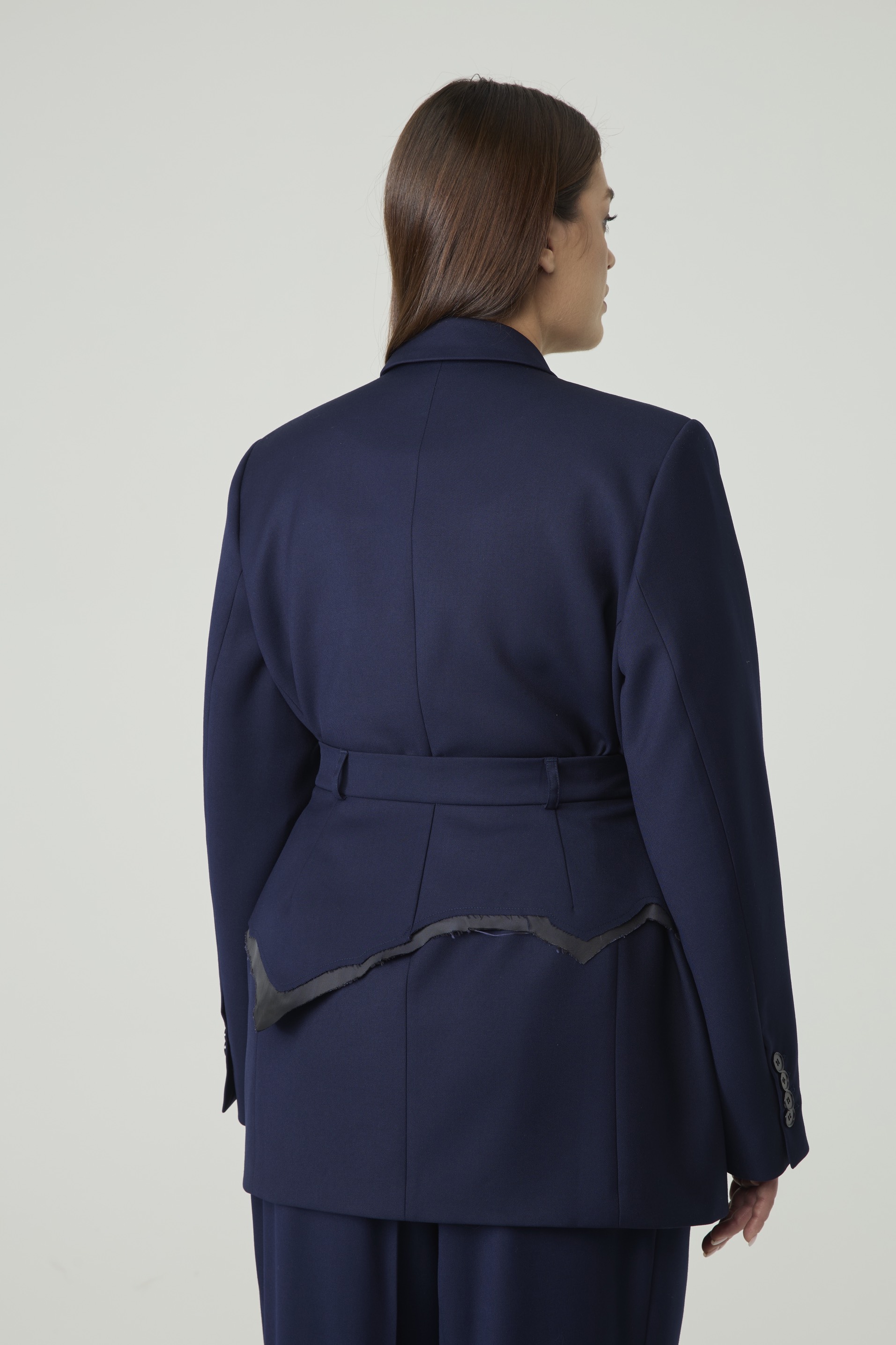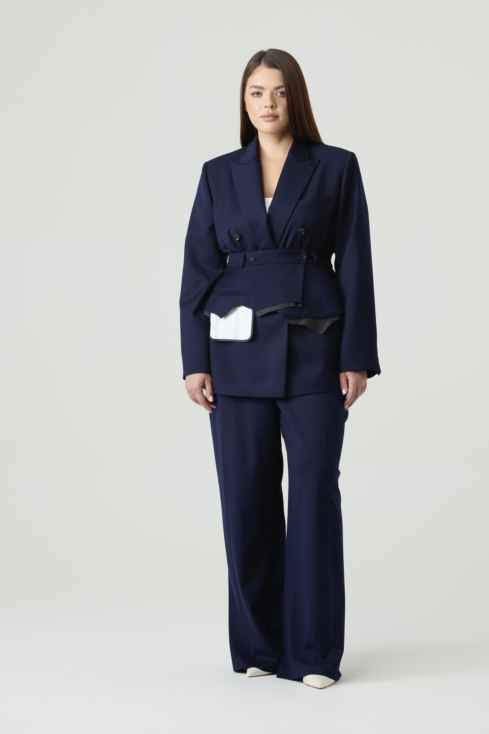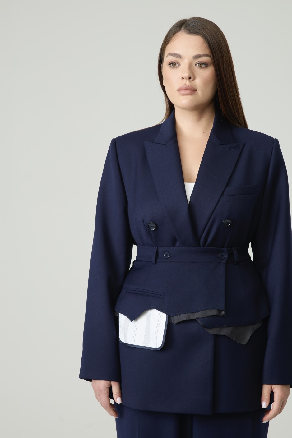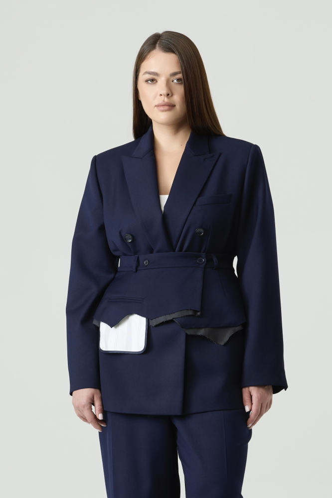 Акцентный ассиметричный пояс-баска с необработанным краем подчеркнет вашу индивидуальность и поможет создать множество образов на разные случаи жизни.