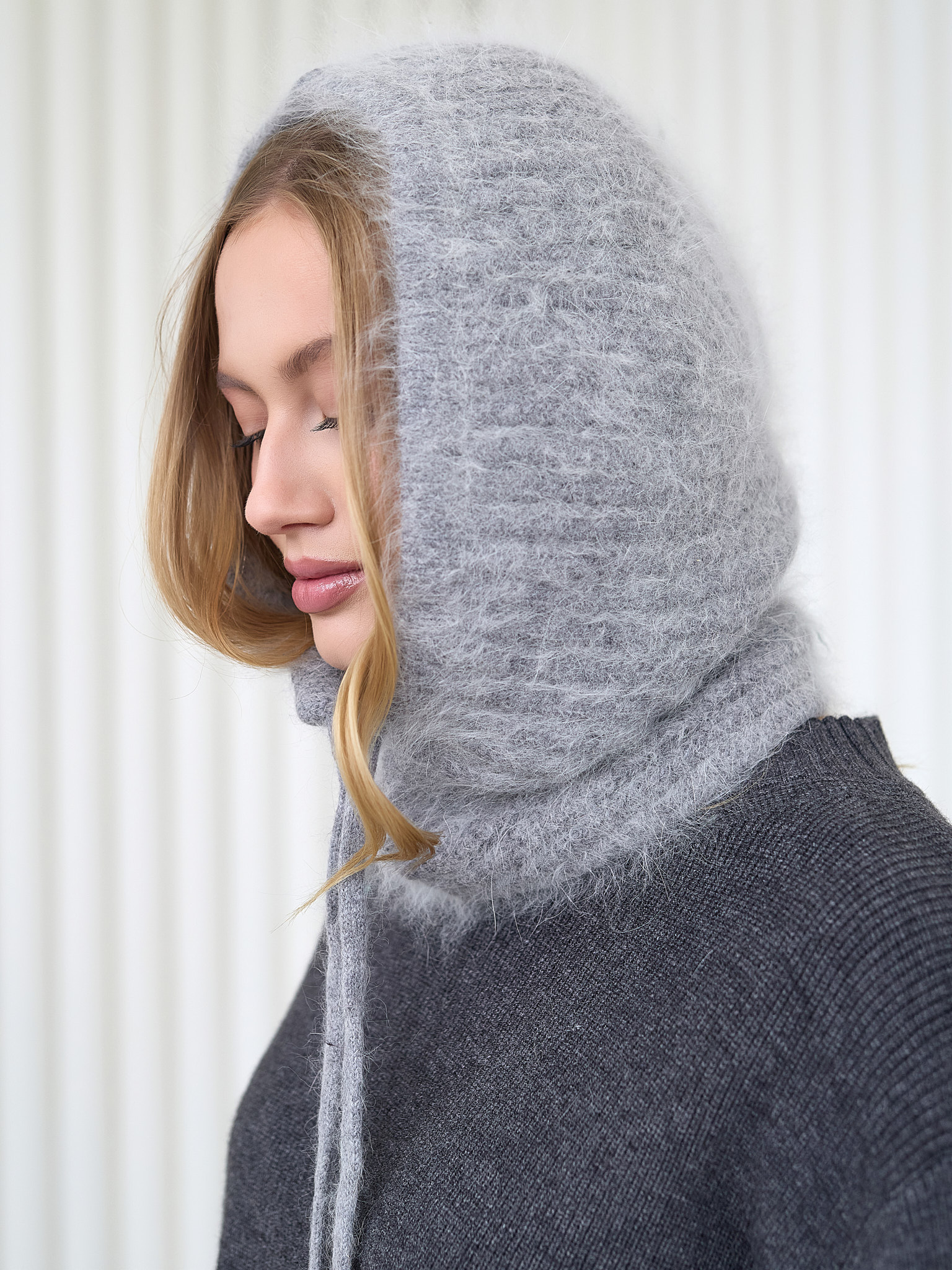 Капор из ангоры — это уютный и тёплый головной убор крупной вязки. Мягкий и приятный на ощупь материал обеспечивает комфорт и сохраняет тепло. Идеальный выбор для холодного времени года, капор станет отличным дополнением к вашему зимнему гардеробу.