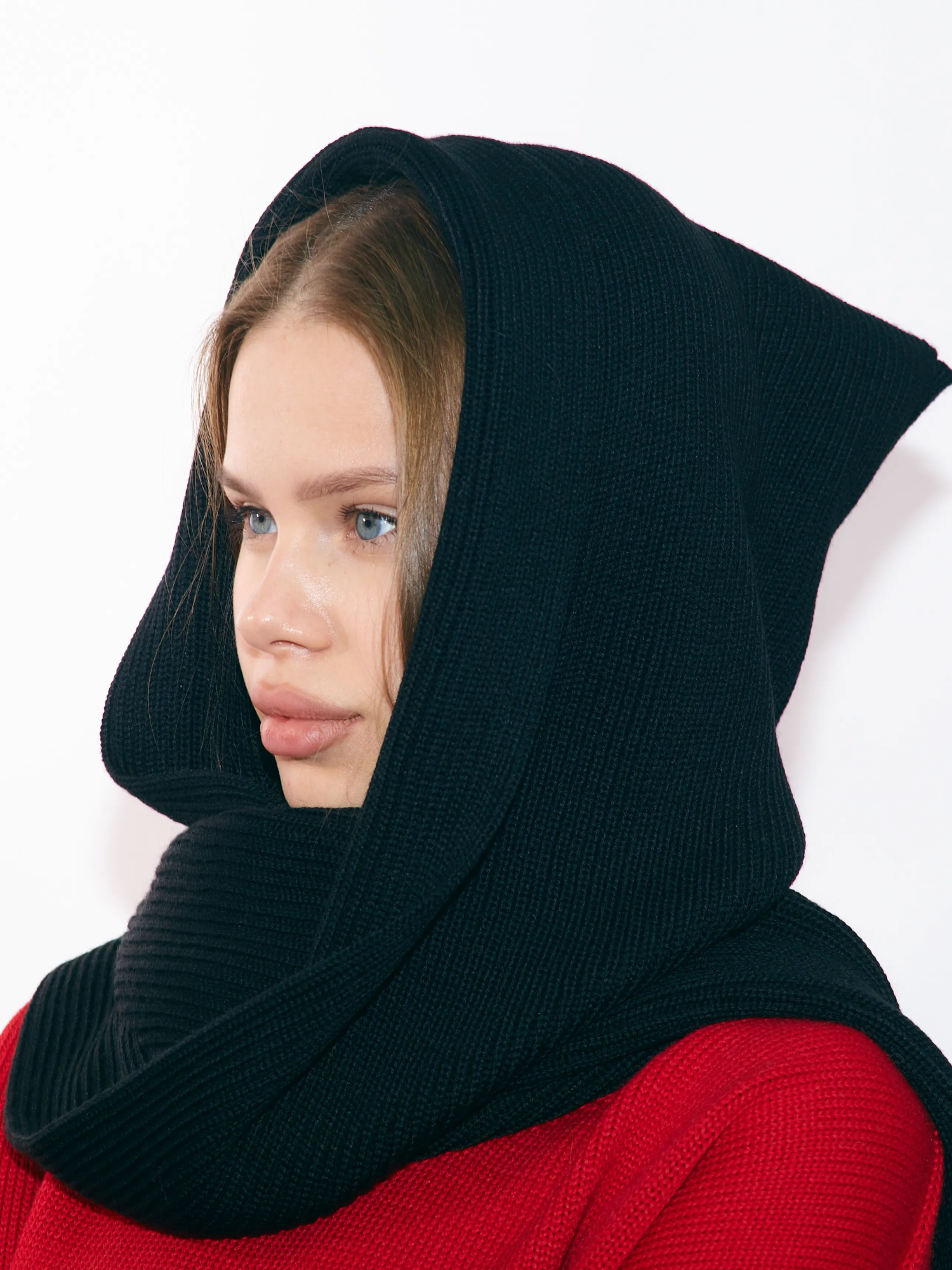 Уютный капор из мягкой вязаной ткани — идеальное решение для холодных дней. Глубокий капюшон и свободные складки создают эффект нежной драпировки, а фактурная вязка придаёт образу утончённость. Легко сочетается с пальто, платьями или свитерами — стиль, комфорт и тепло в одном аксессуаре.