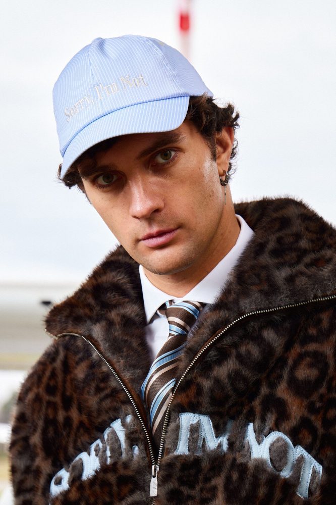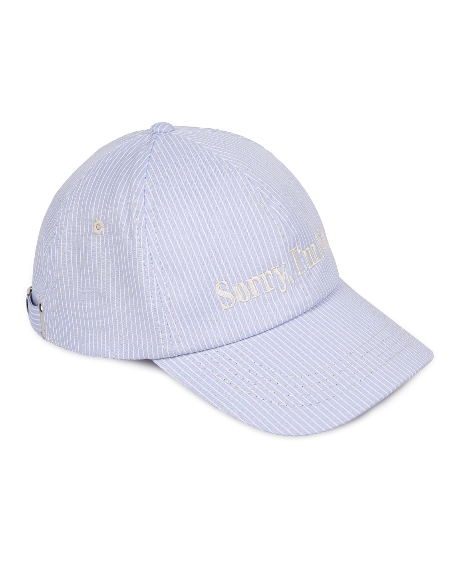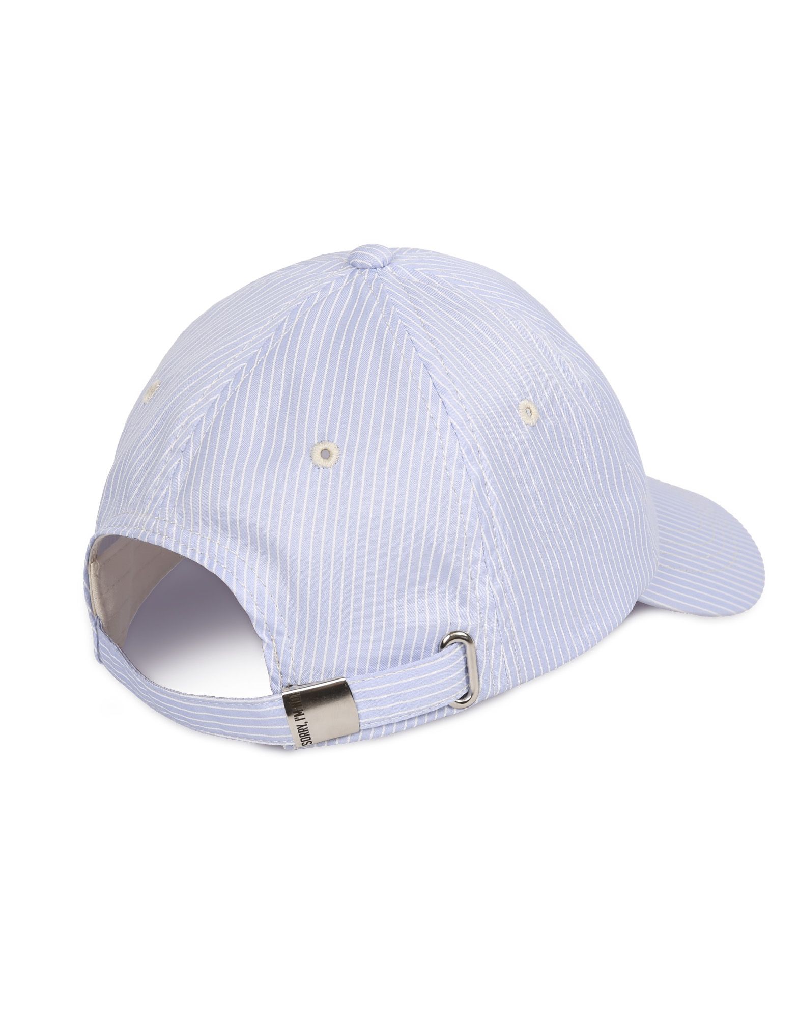 Голубая кепка в белую полоску. Логотип спереди, сзади регулировка размера.