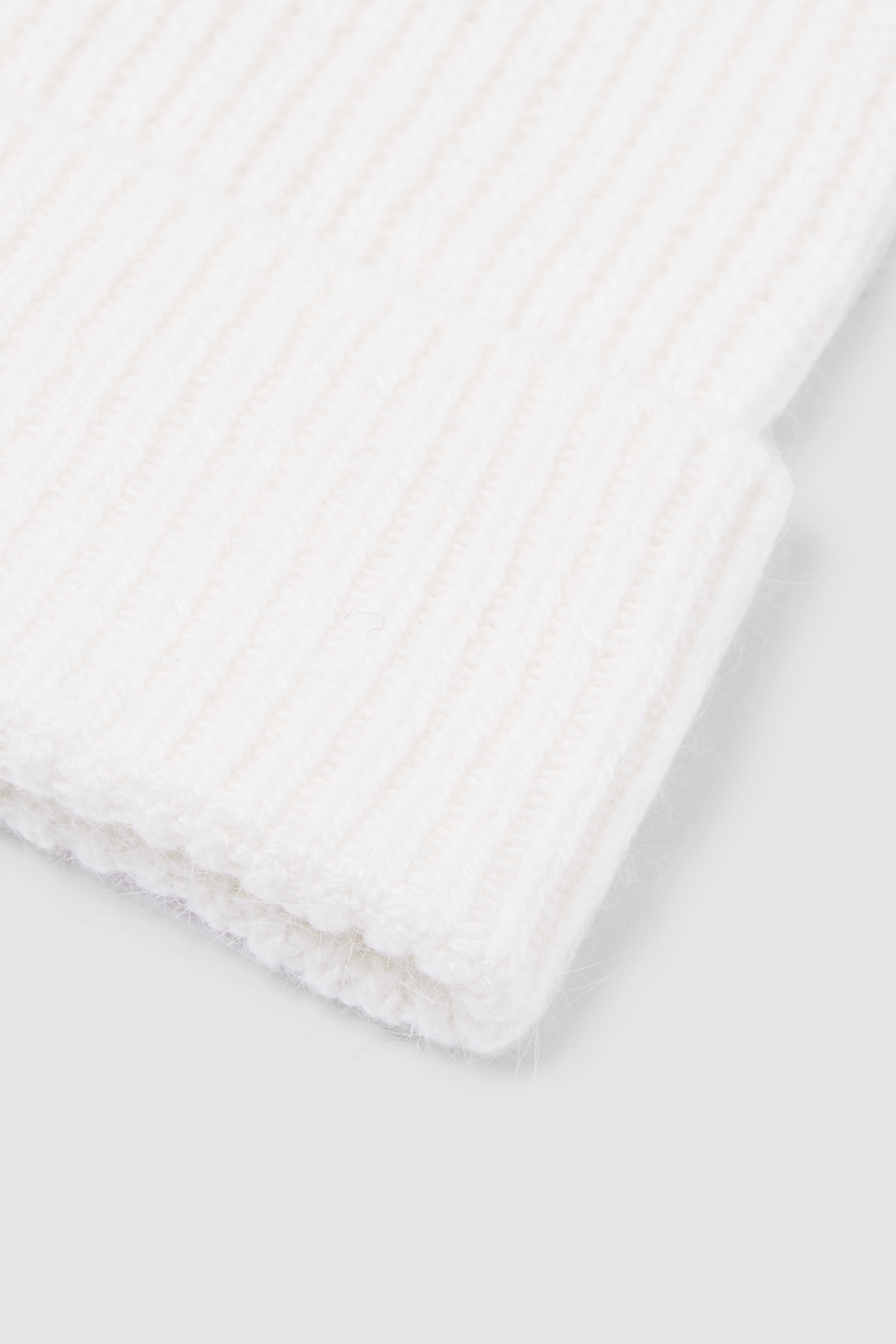 Классическая модель одновременно теплая, мягкая и легкая. Для изготовления изделия использовались натуральные материалы: ангора, шерсть и вискоза. Шапка отлично тянется и совсем не колется.