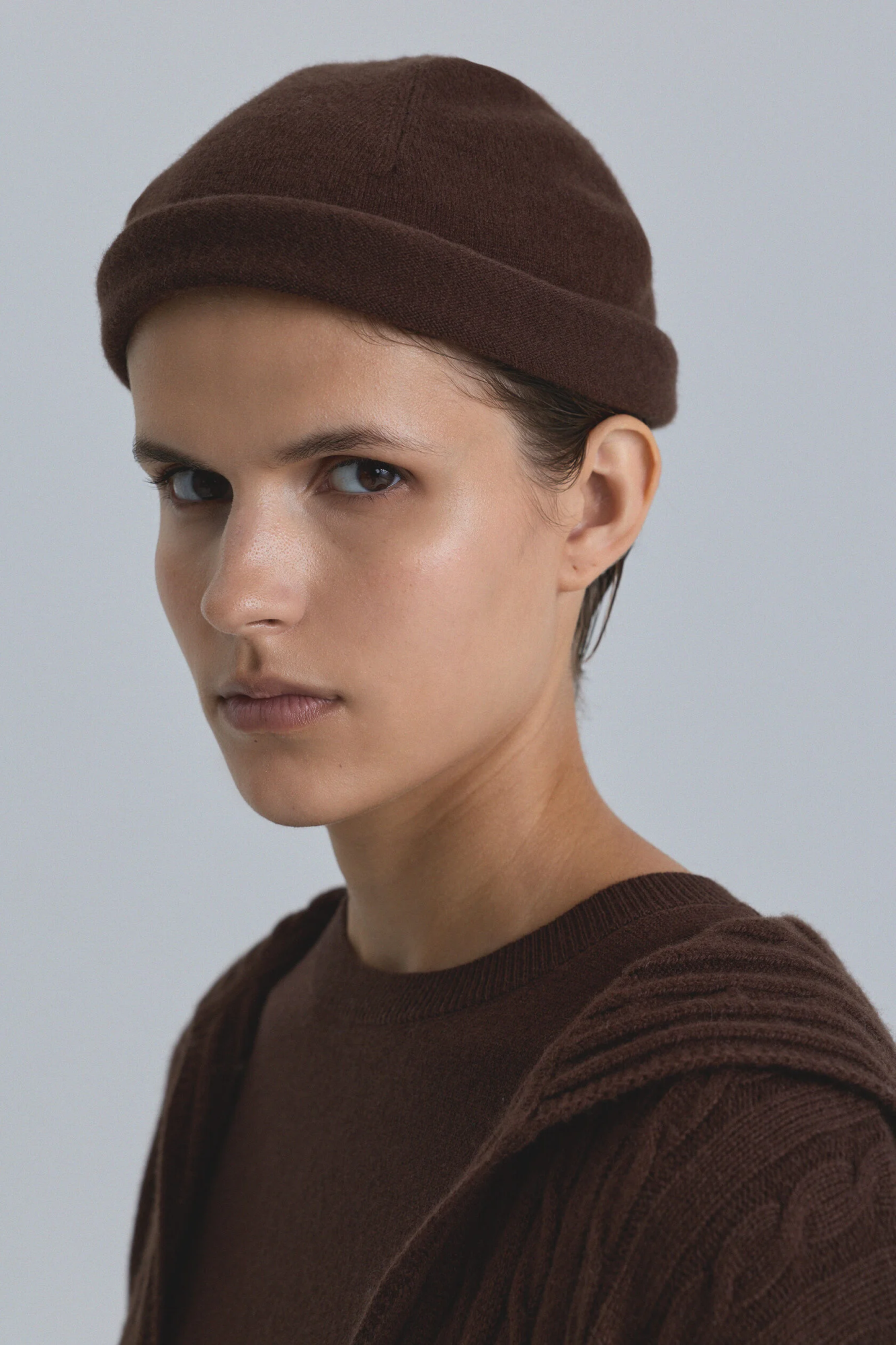 Деликатная шапка из тонкой шерсти мериноса с отворотом-закруткой. Модель свободно регулируема по длине и посадке, а благодаря мягкому и эластичному материалу практически не ощущается на голове.