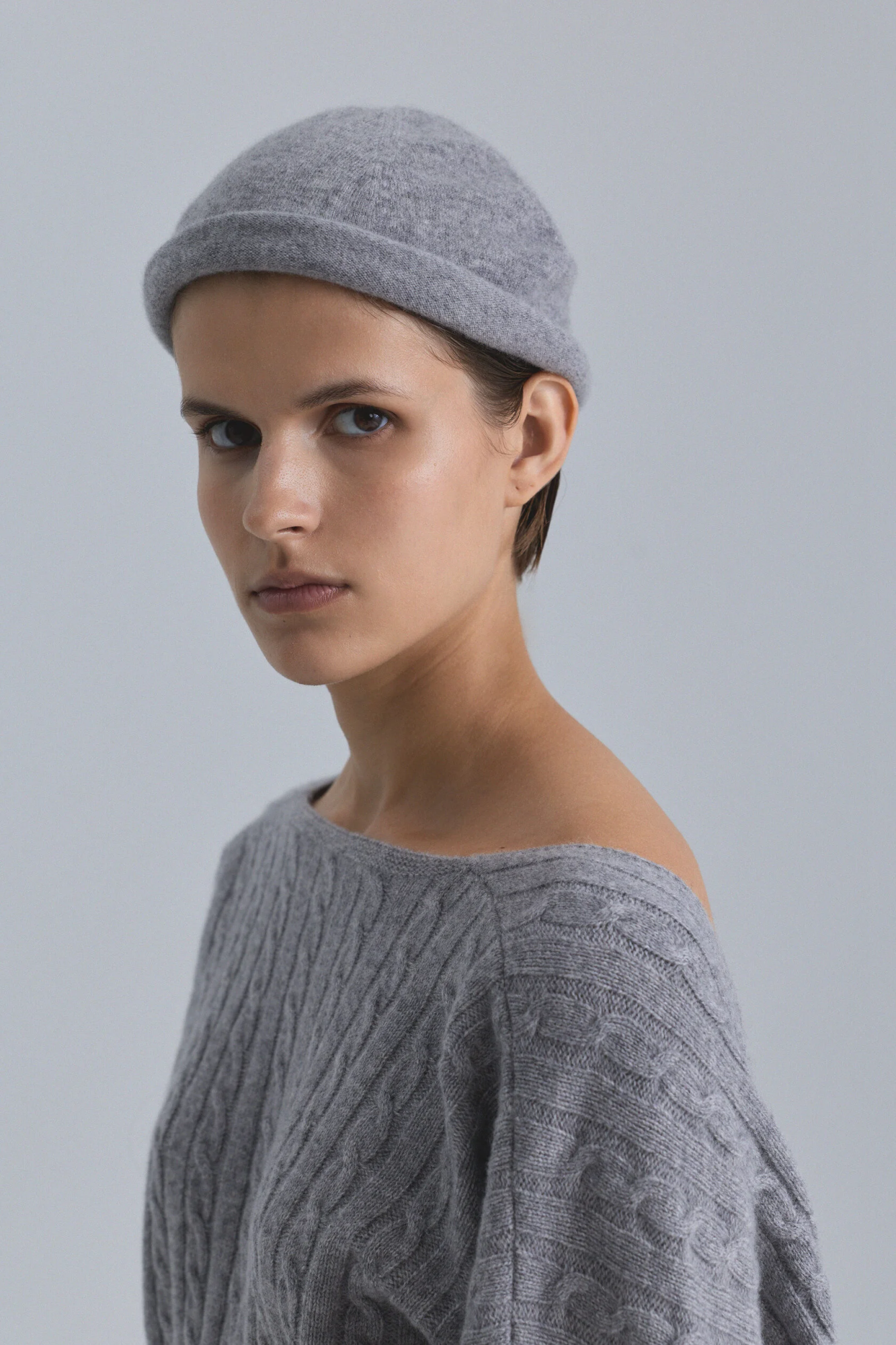 Деликатная шапка из тонкой шерсти мериноса с отворотом-закруткой. Модель свободно регулируема по длине и посадке, а благодаря мягкому и эластичному материалу практически не ощущается на голове.