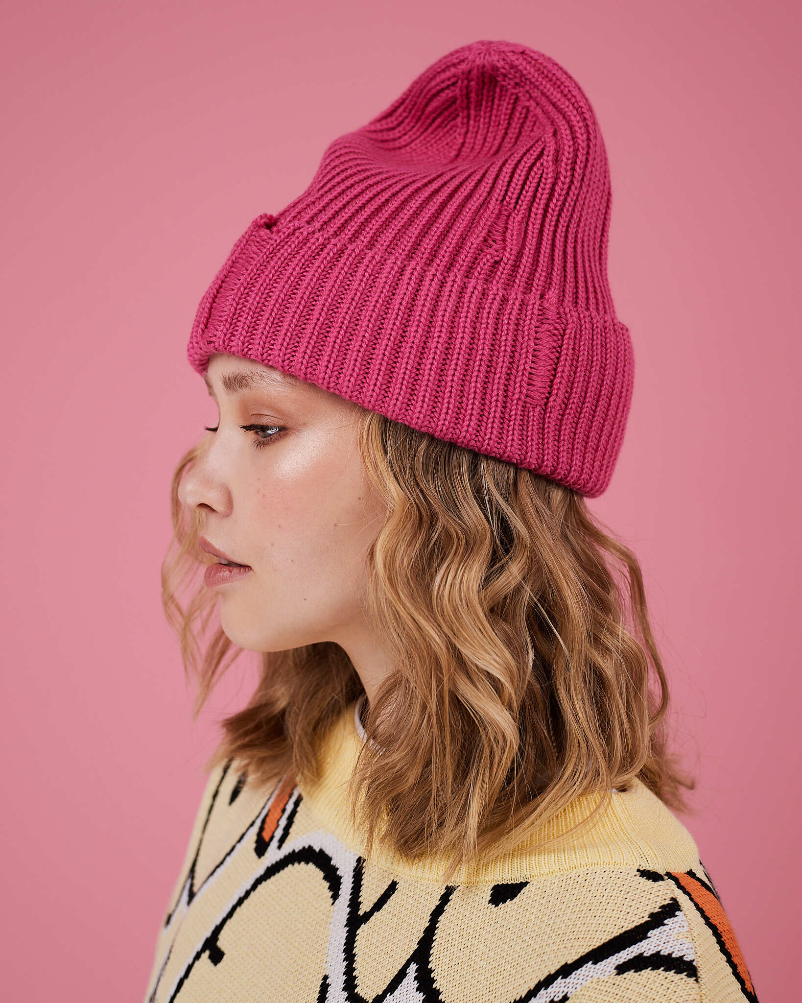 Шапка с рваными зафиксированными краями из шерсти мериноса.