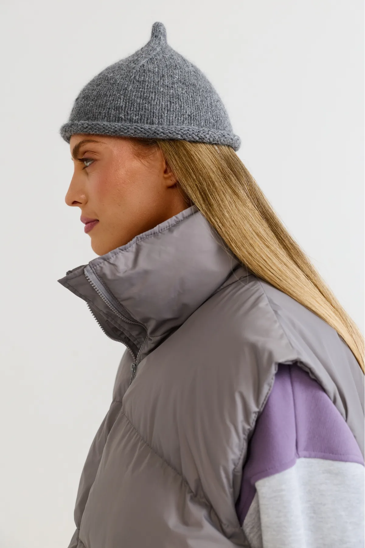 Стильный аксессуар, выполненный ручной вязкой, которая придаёт изделию выразительную фактуру и делает каждую шапку уникальной: мелкие варианты в узоре и плотности петель являются естественной частью изготовления. Декоративный кончик сверху служит ярким акцентом, который завершает образ и привлекает внимание