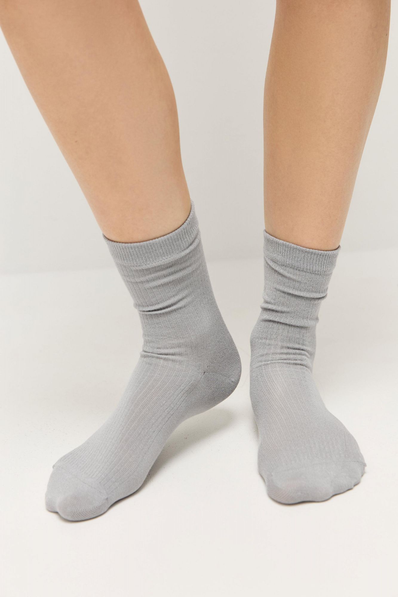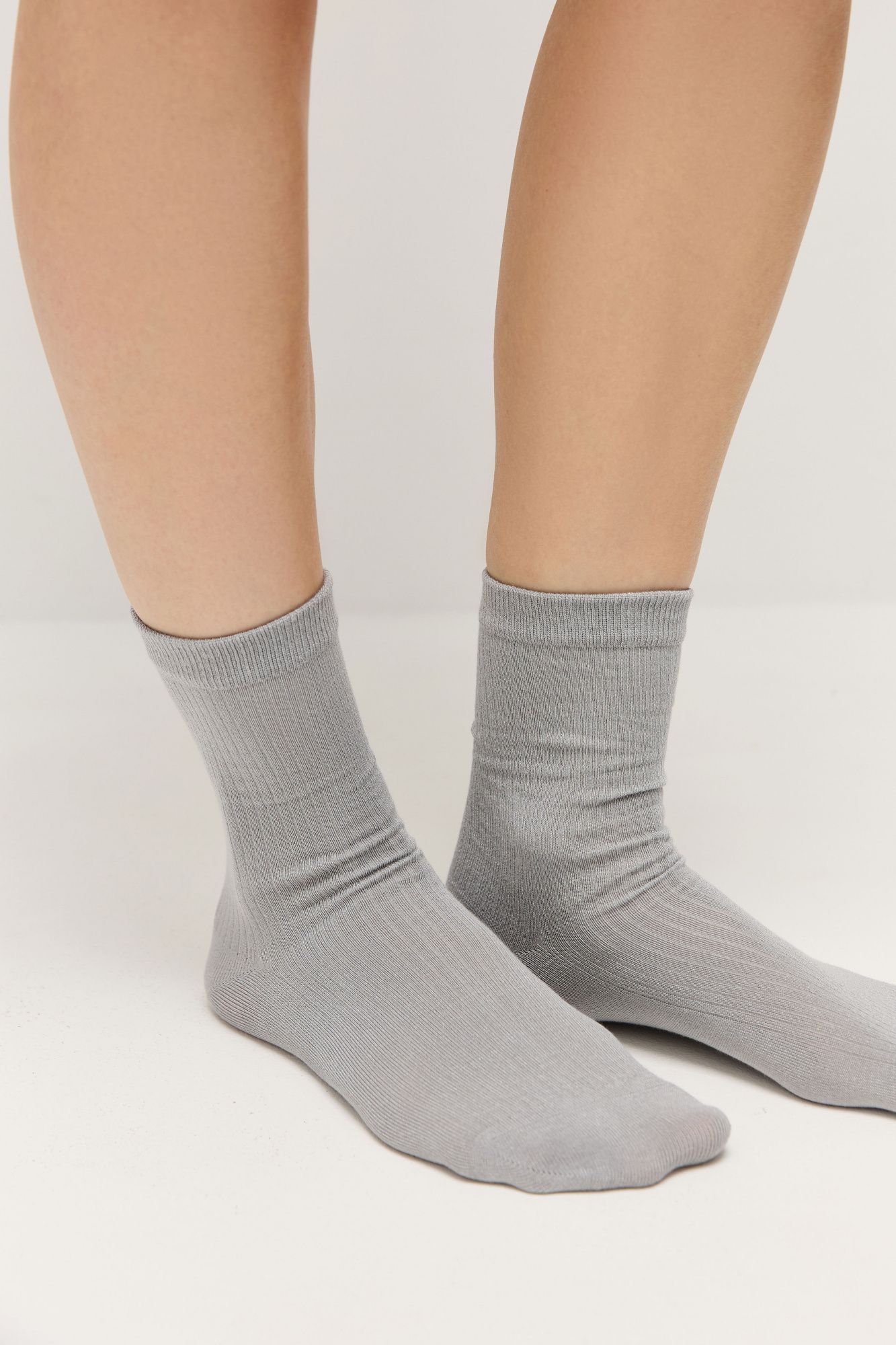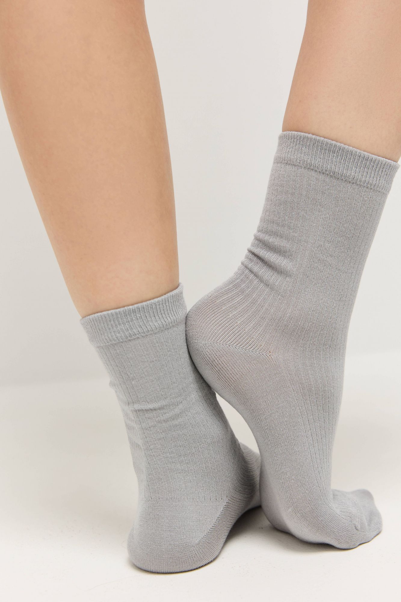 Носки в тонкий рубчик серый