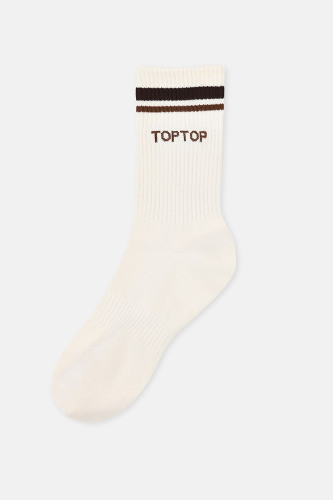 Классические спортивные носки из смесового хлопка – модель молочного цвета с контрастными полосками и принтом-логотипом. Паголенок и стопа дополнены резинками, которые обеспечивают надежную фиксацию.