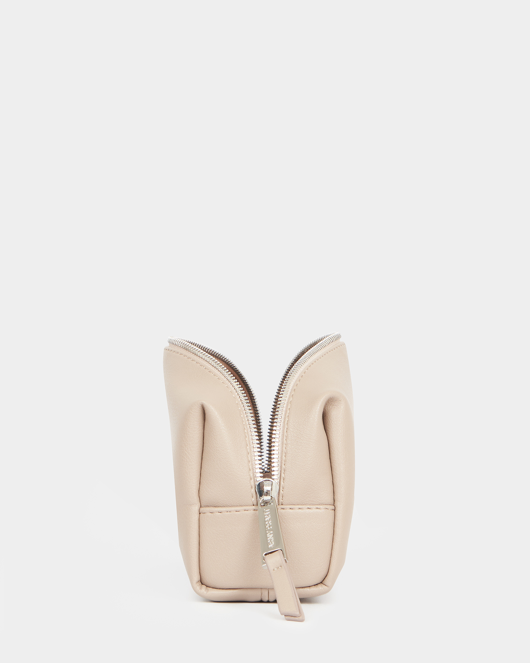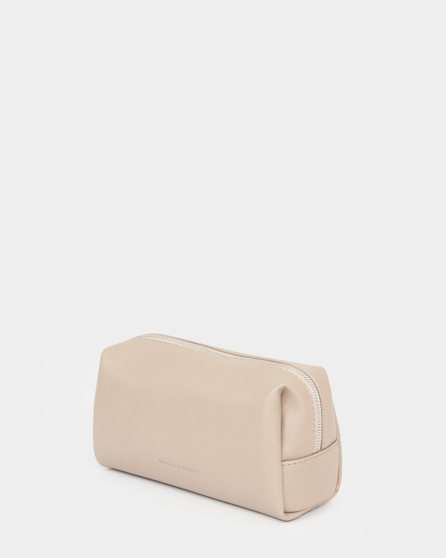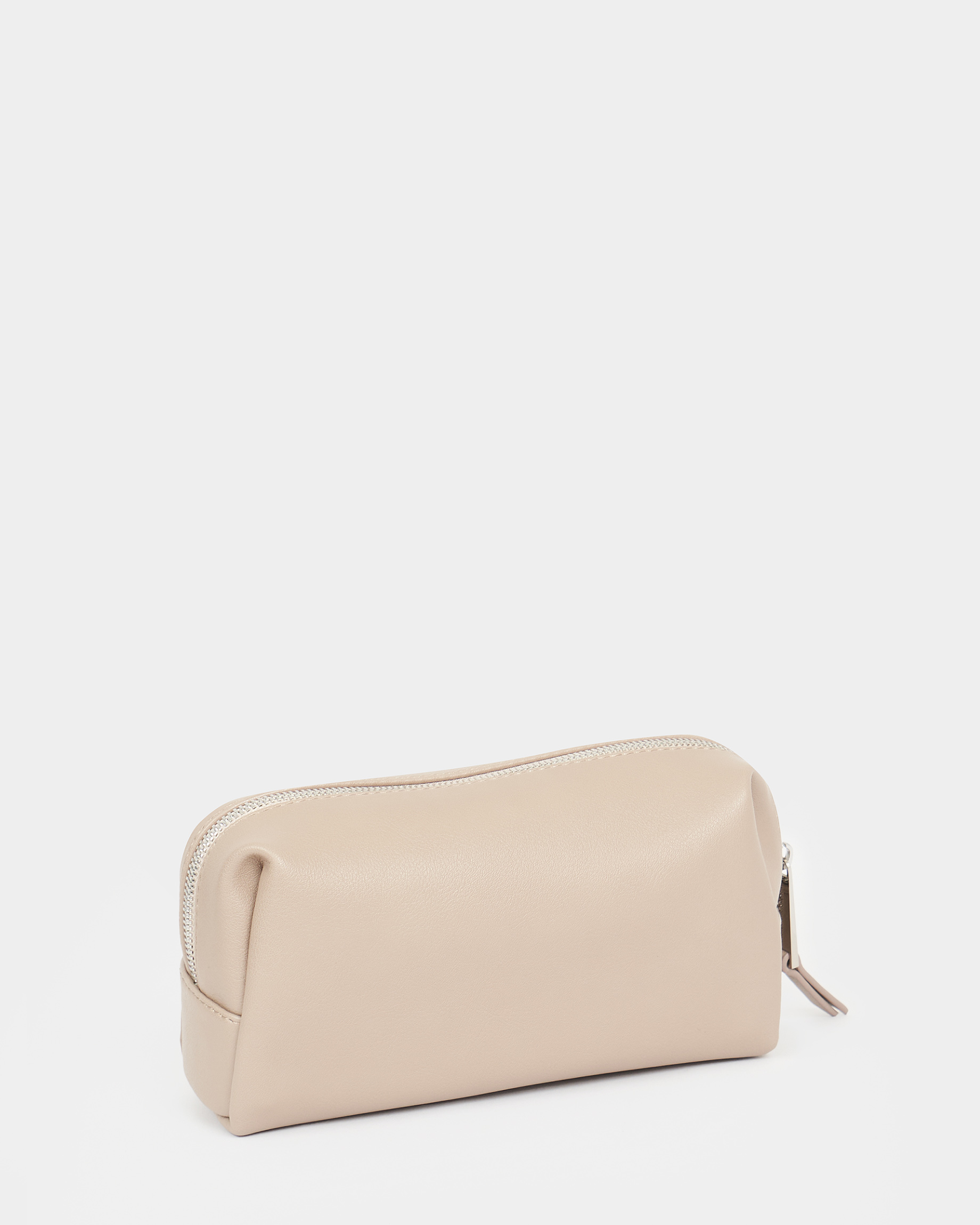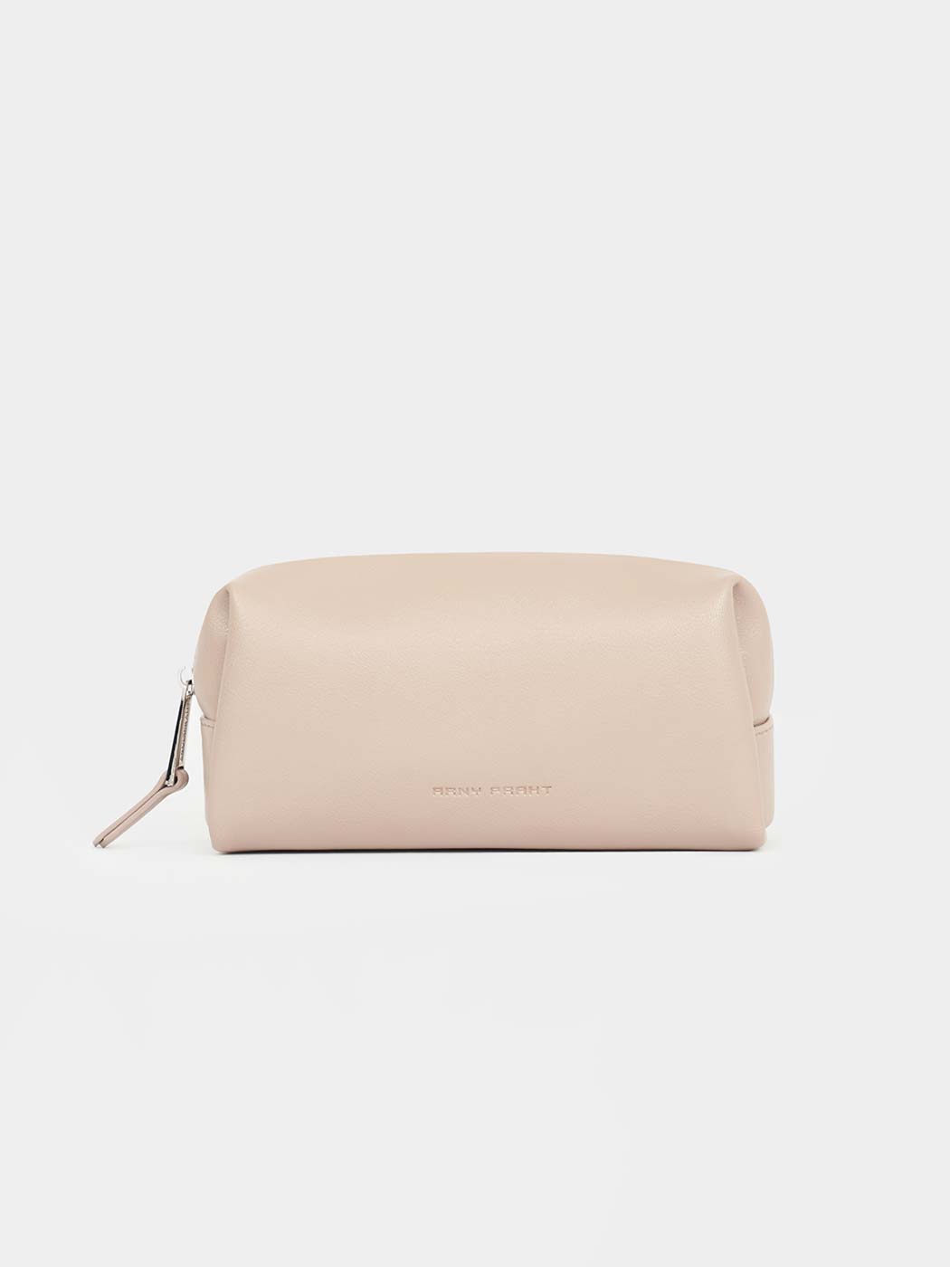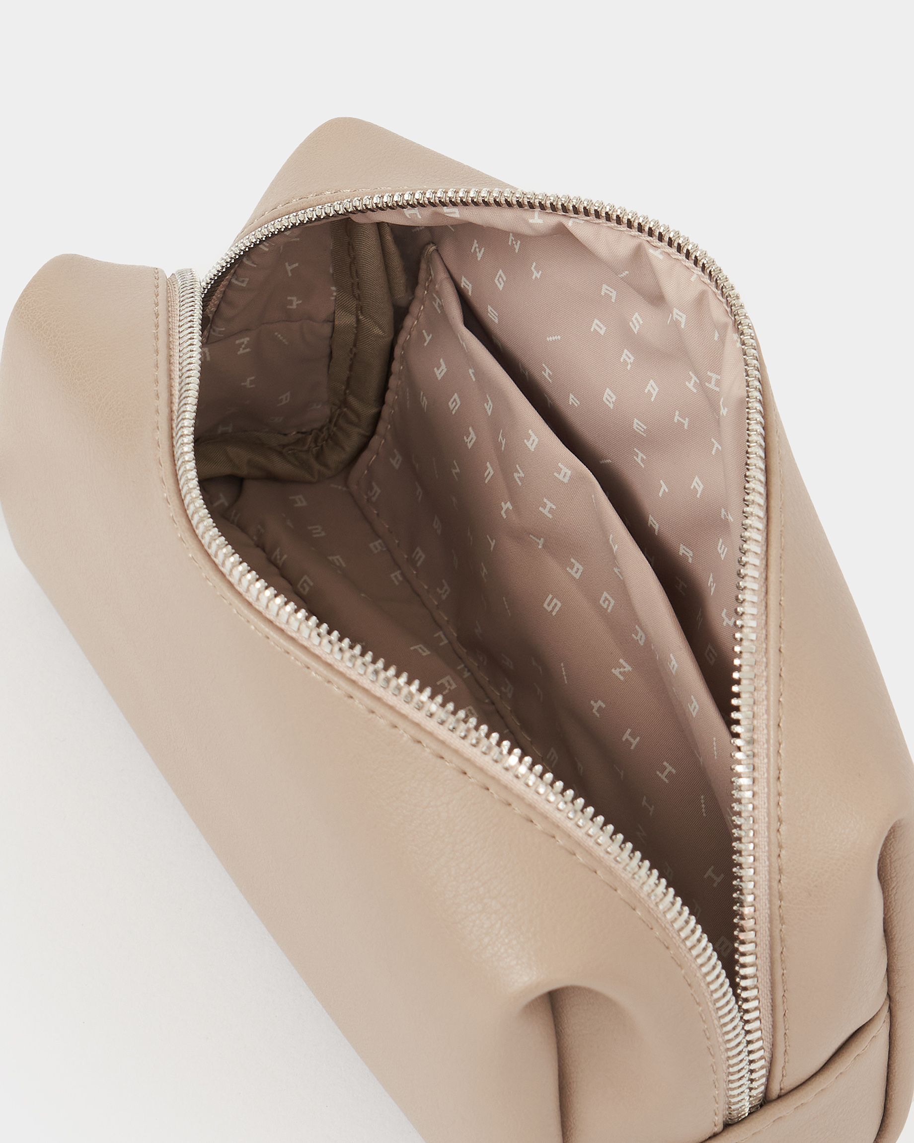 Вместительная косметичка-пенал в цвете светлый кофе.