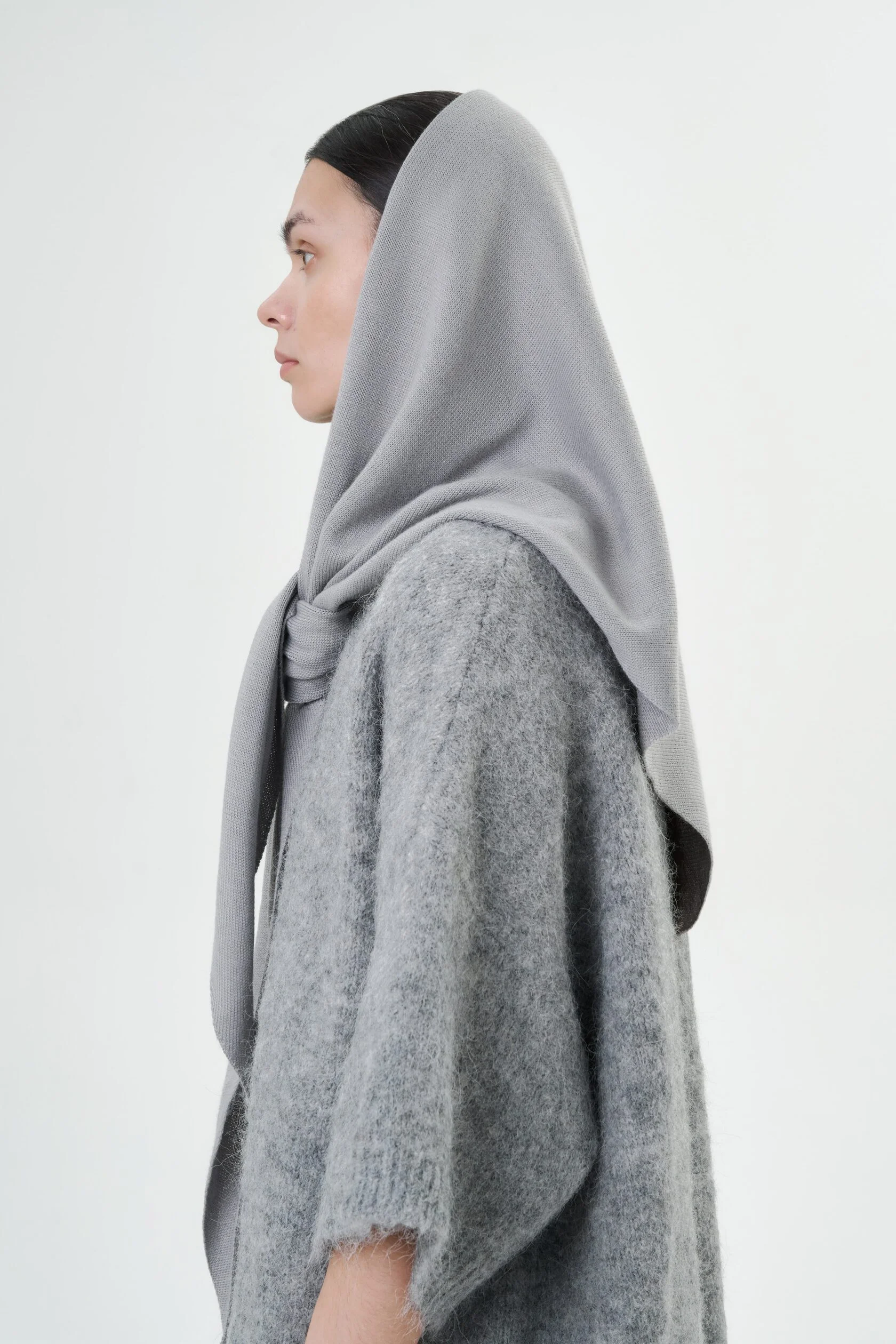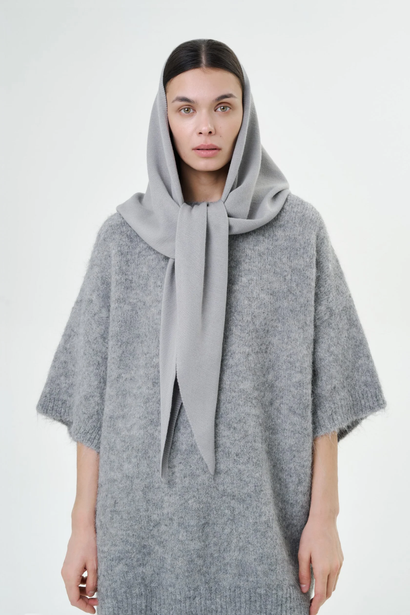 Косынка светло-серого цвета выполнена из шерсти и акрила.