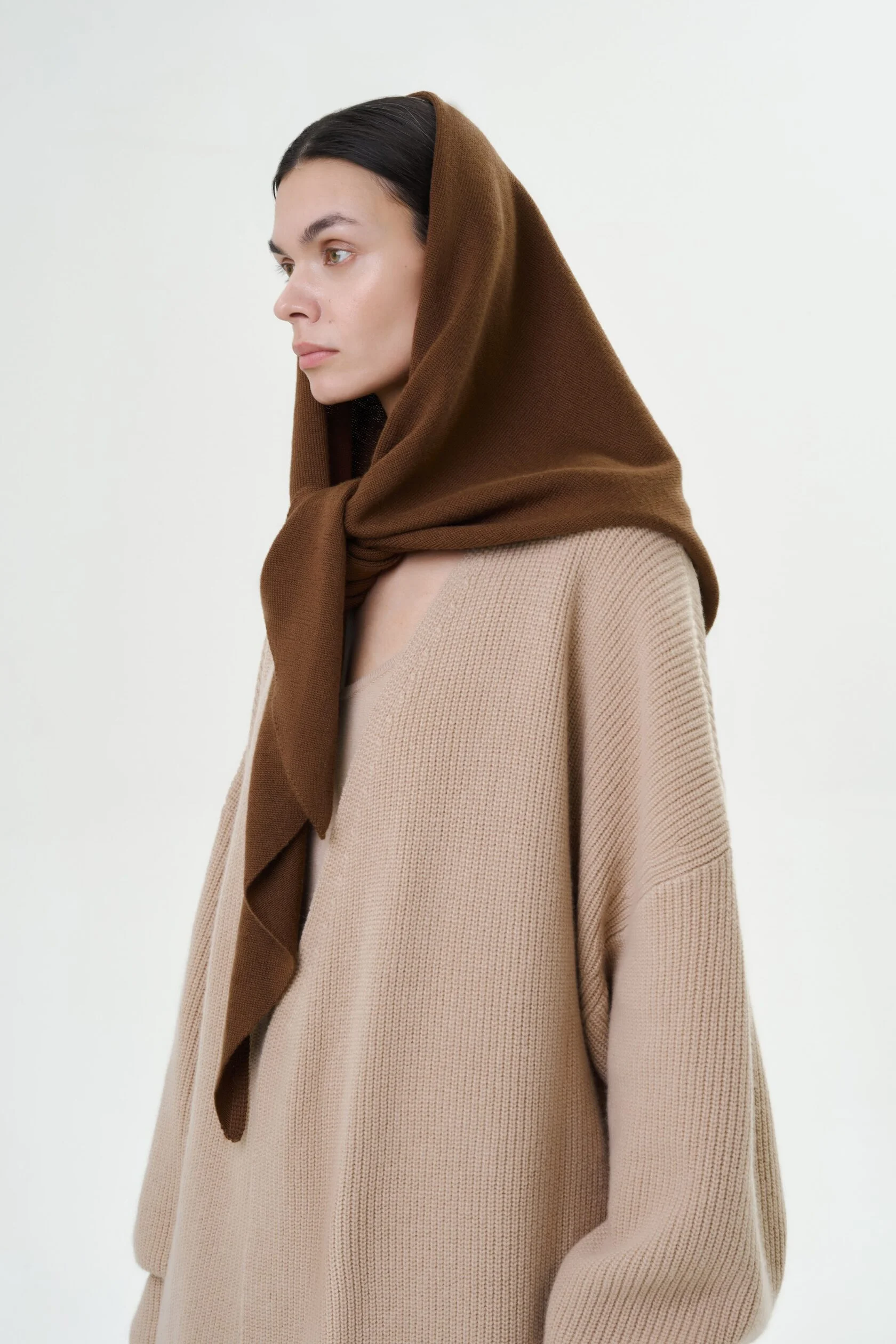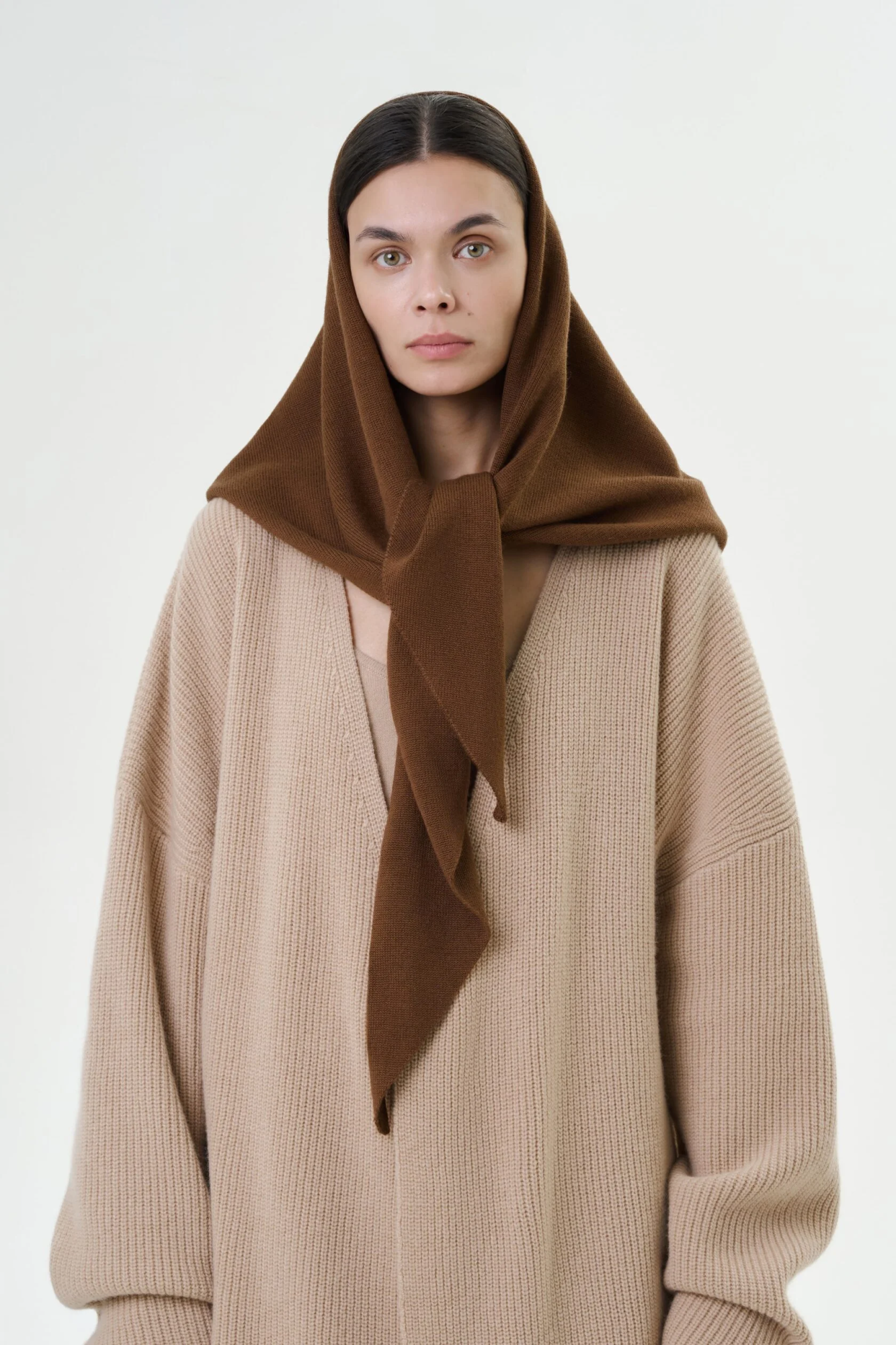 Косынка коричневого цвета выполнена из шерсти и акрила.