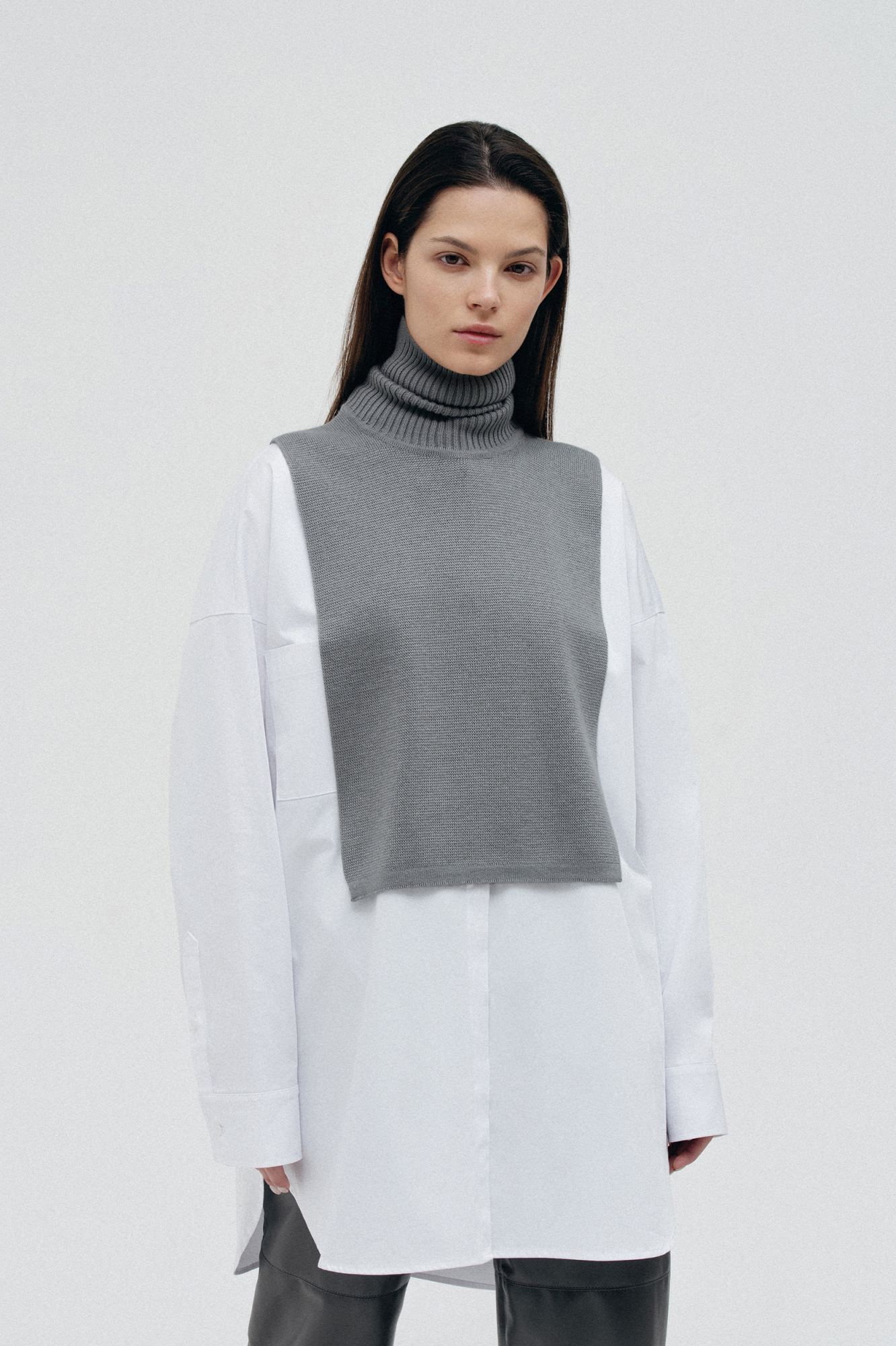Манишка светло-серого цвета с высоким воротником.