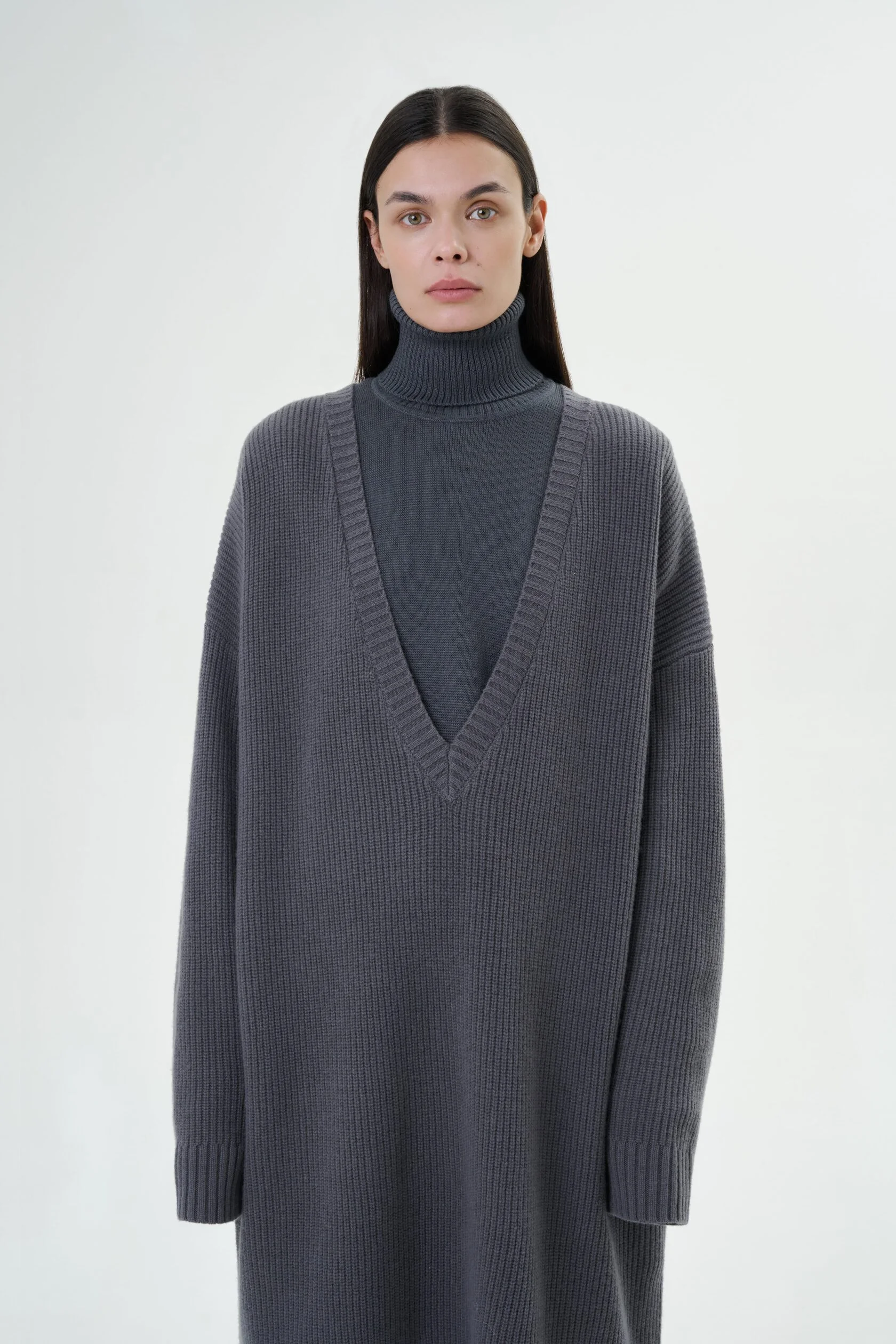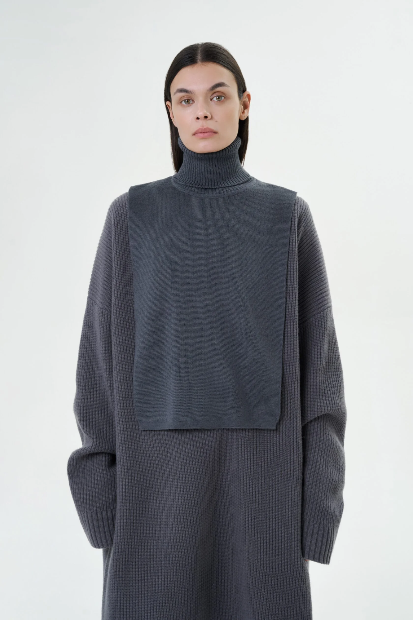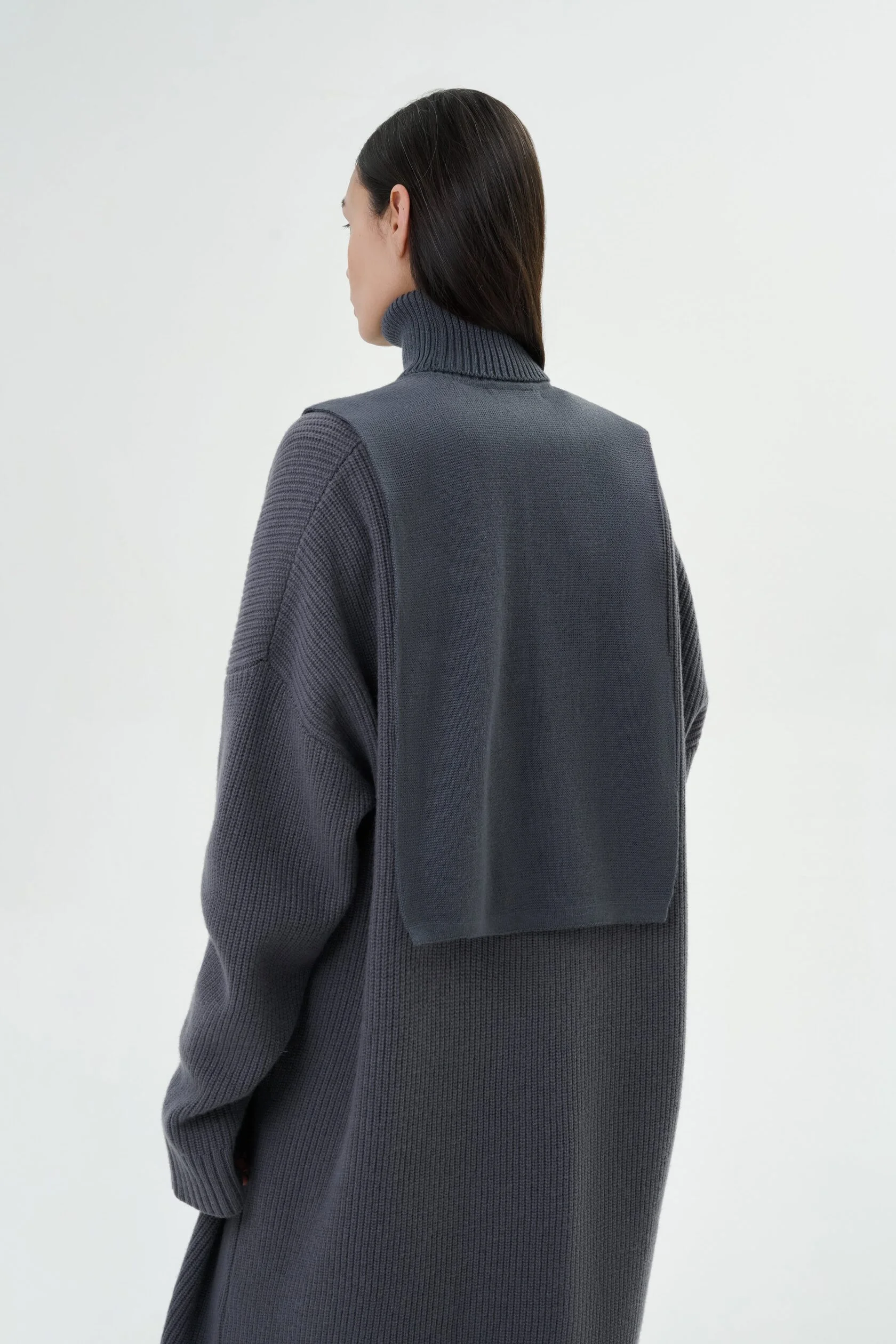 Манишка графитового цвета с высоким воротником.