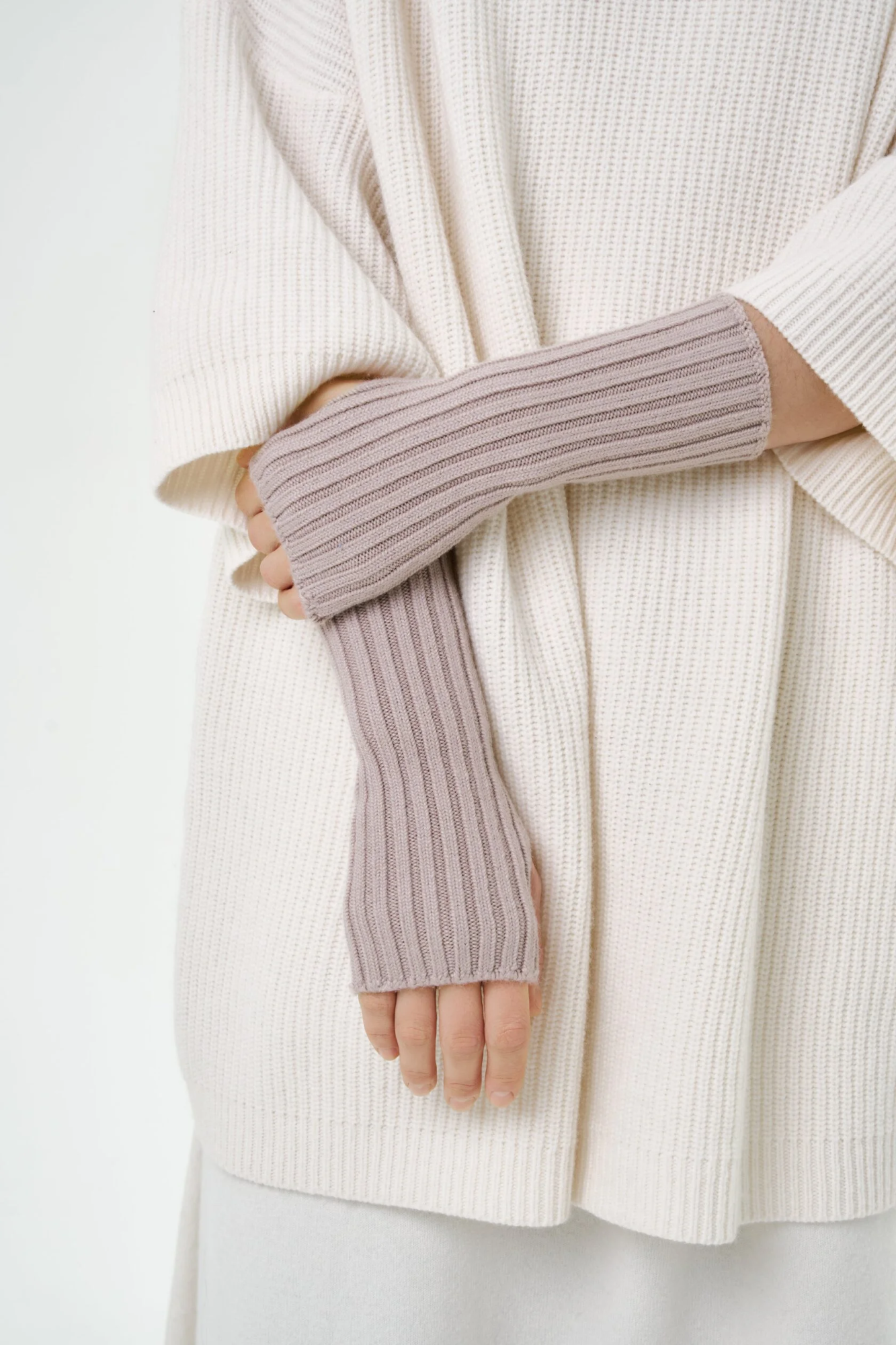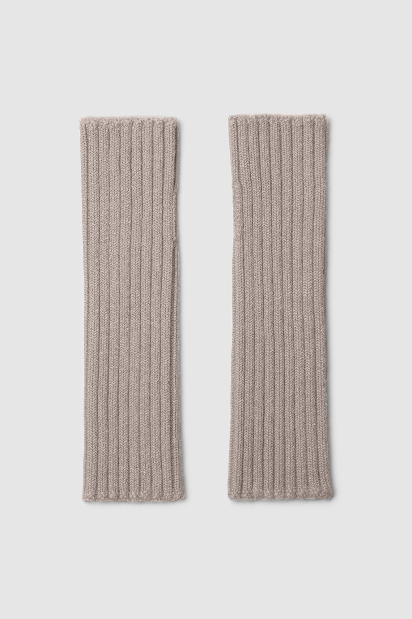 Митенки бежевого цвета выполнены из шерсти и акрила.