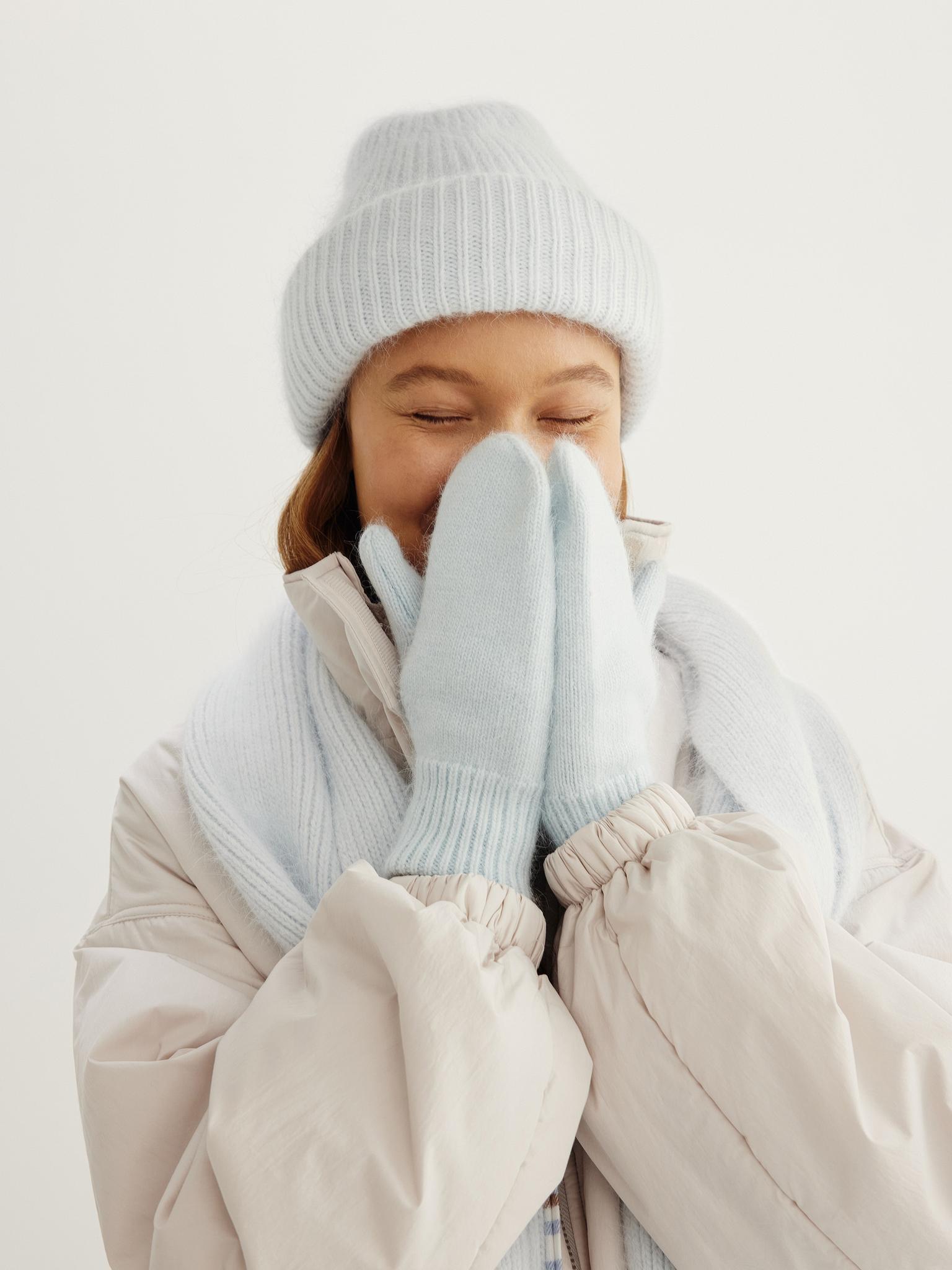 Тёплые и мягкие варежки из ангоры светло-голубого цвета — идеальный выбор для защиты рук в холодное время года.