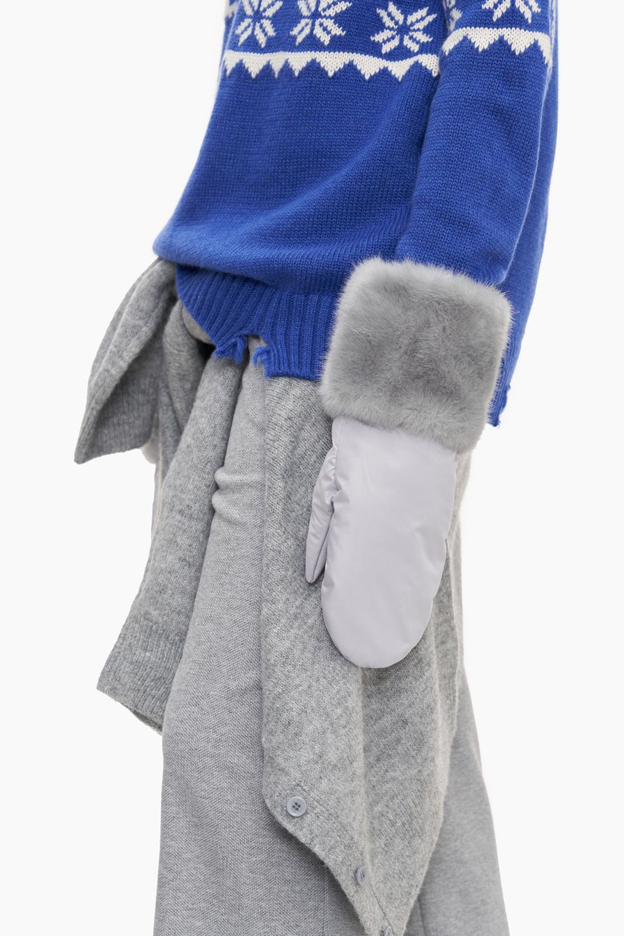 Варежки со съемными манжетами из пушистого экомеха – модель нейтрального серого оттенка.