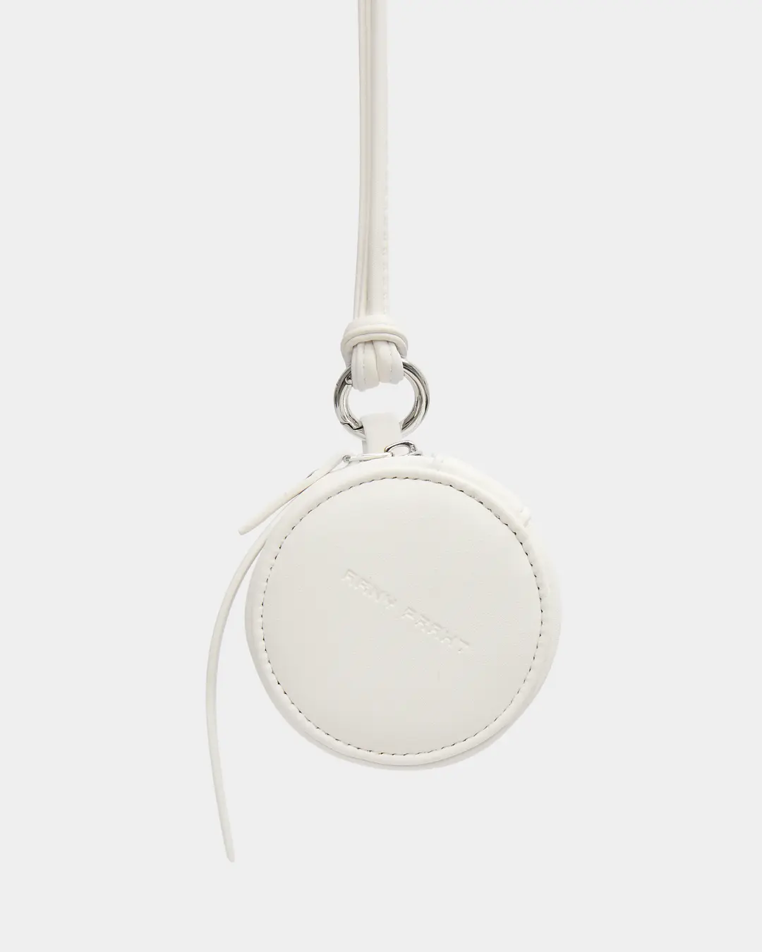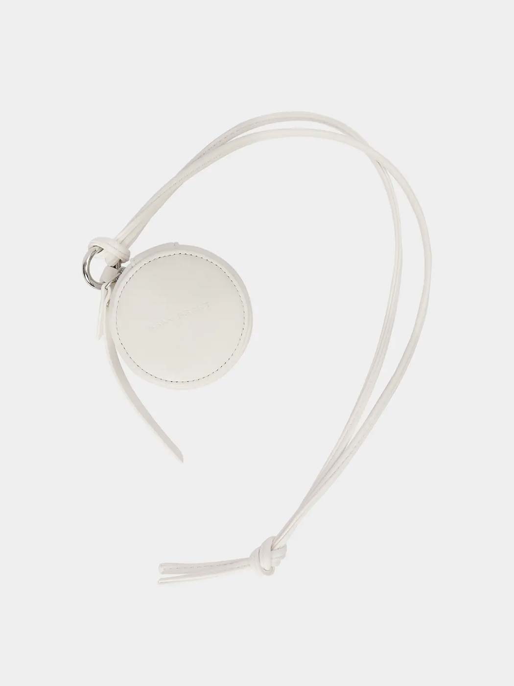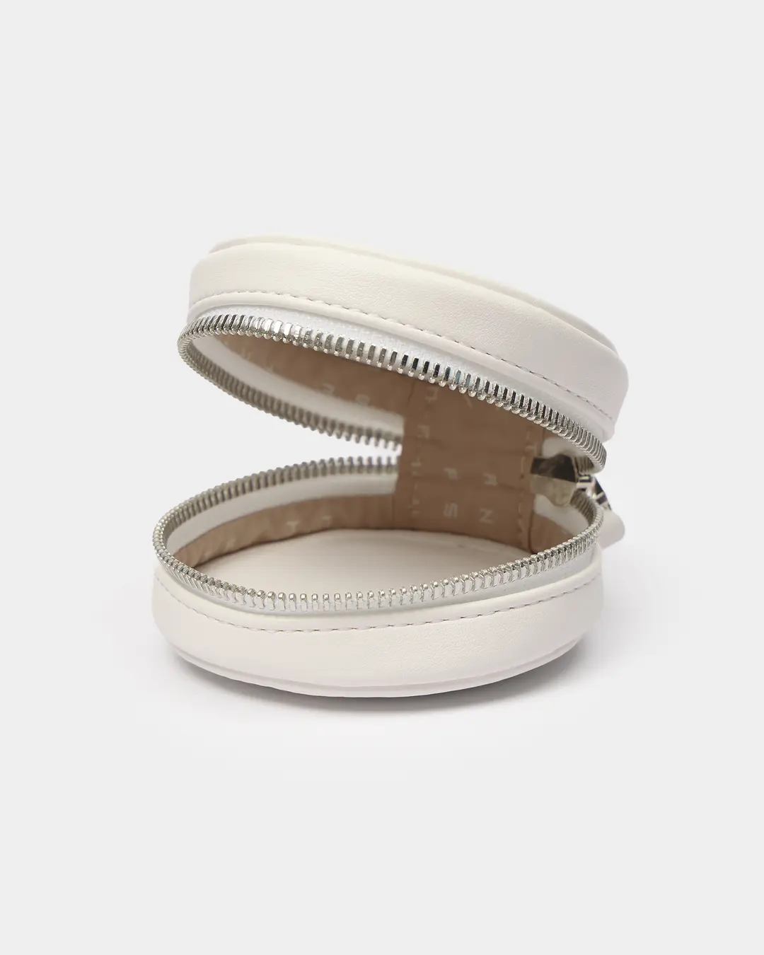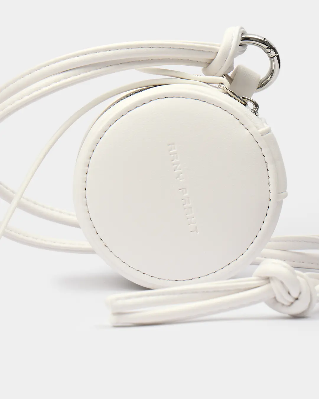 Круглый кошелек с ремнем в молочном цвете из экокожи.