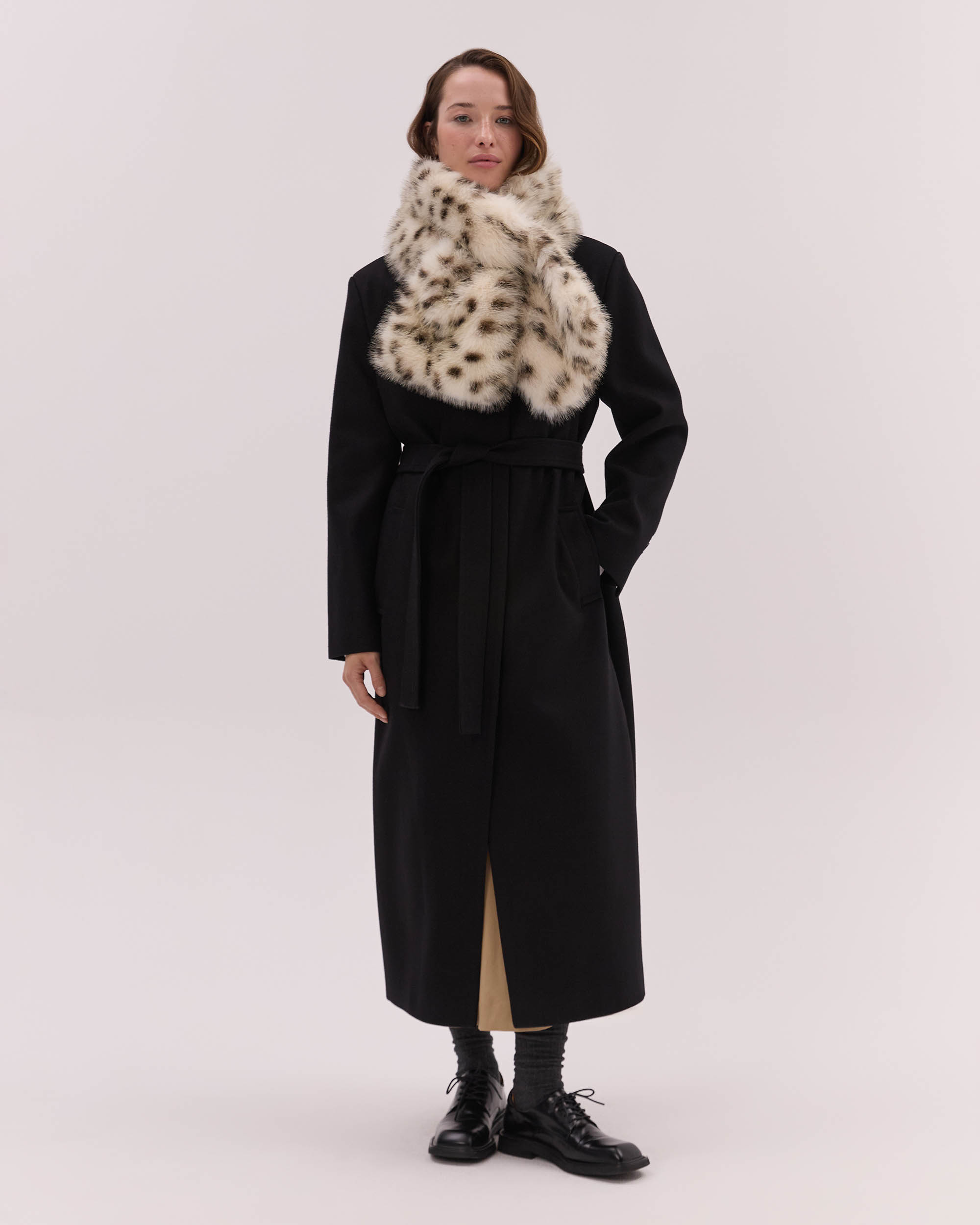 Шарф из экомеха. Красивое и теплое дополнение зимних и демисезонных образов. Особенно интересно смотрется с контрастными фактурами — экокожей или драпом. Удобно фиксируется на шее за счет специального разреза.