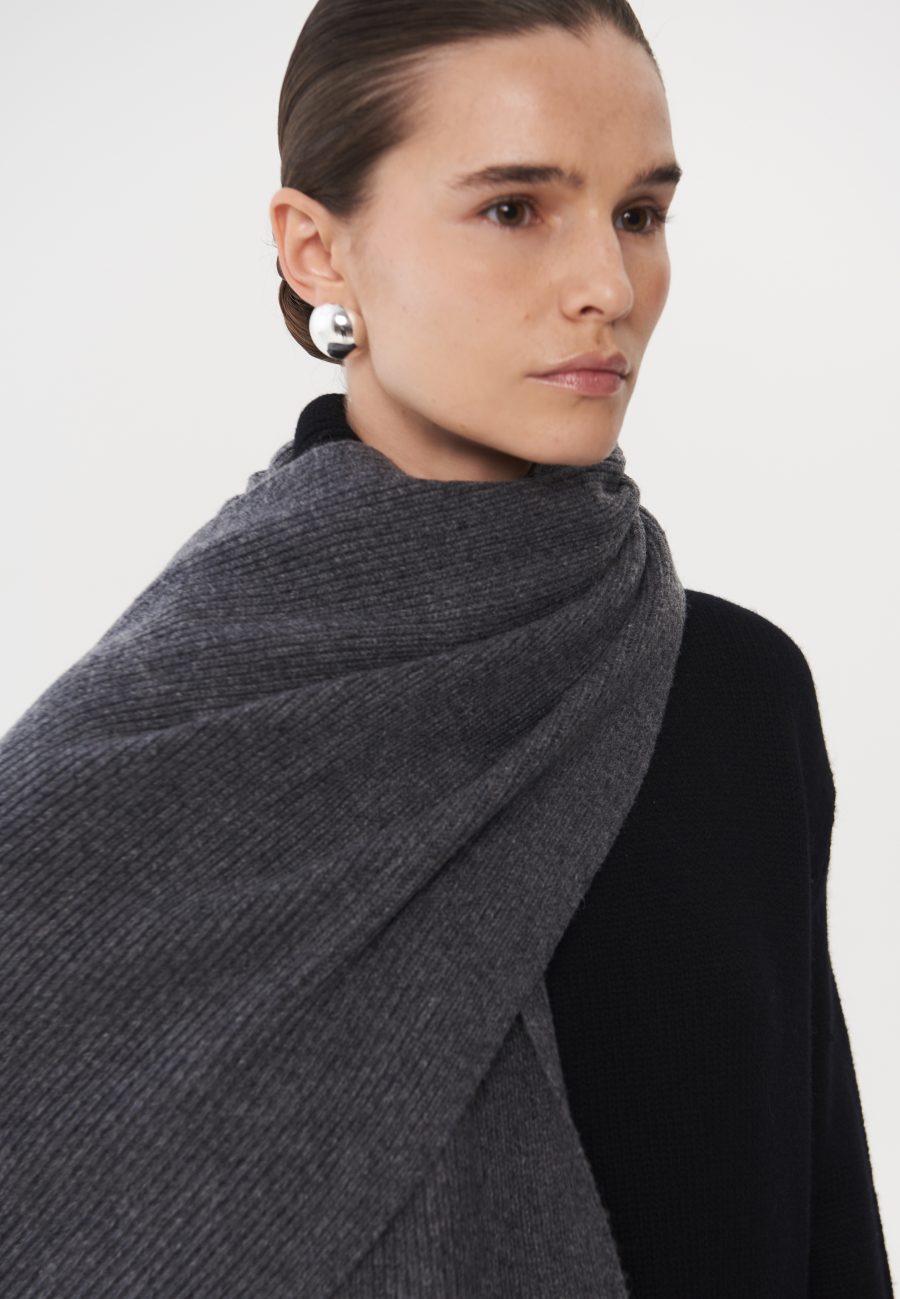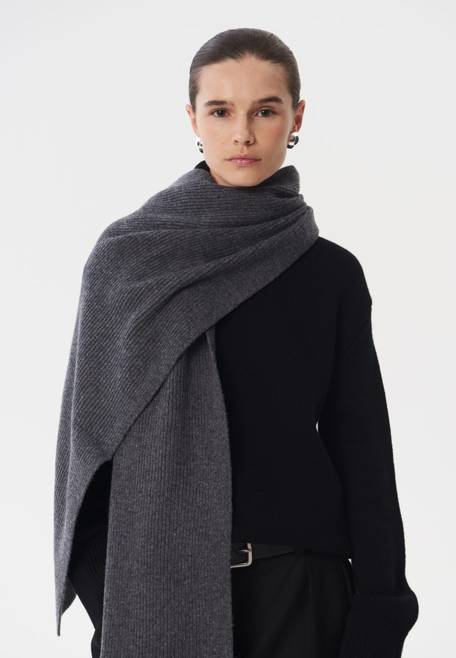 Широкий, длинный и теплый шарф Mist, связанный из мягкой и комфортной шерсти мериноса. Идеальная модель, чтобы накинуть поверх пальто или обернуть вокруг шеи. Базовый оттенок позволит сочетать данную модель с любой верхней одеждой. Рекомендуем стилизовать с шапкой и перчатками Mist