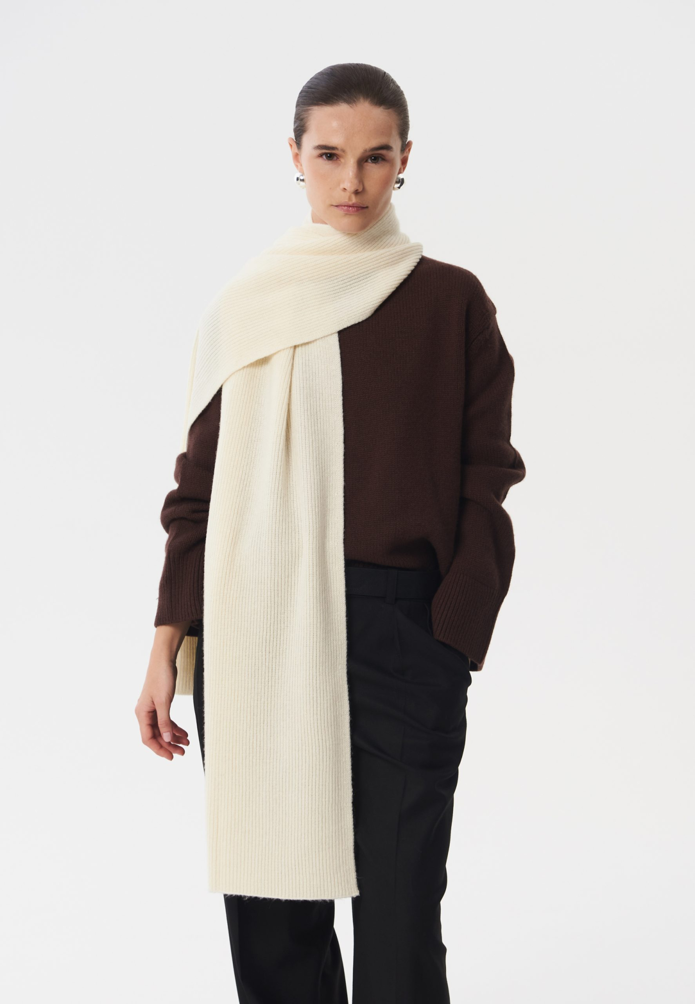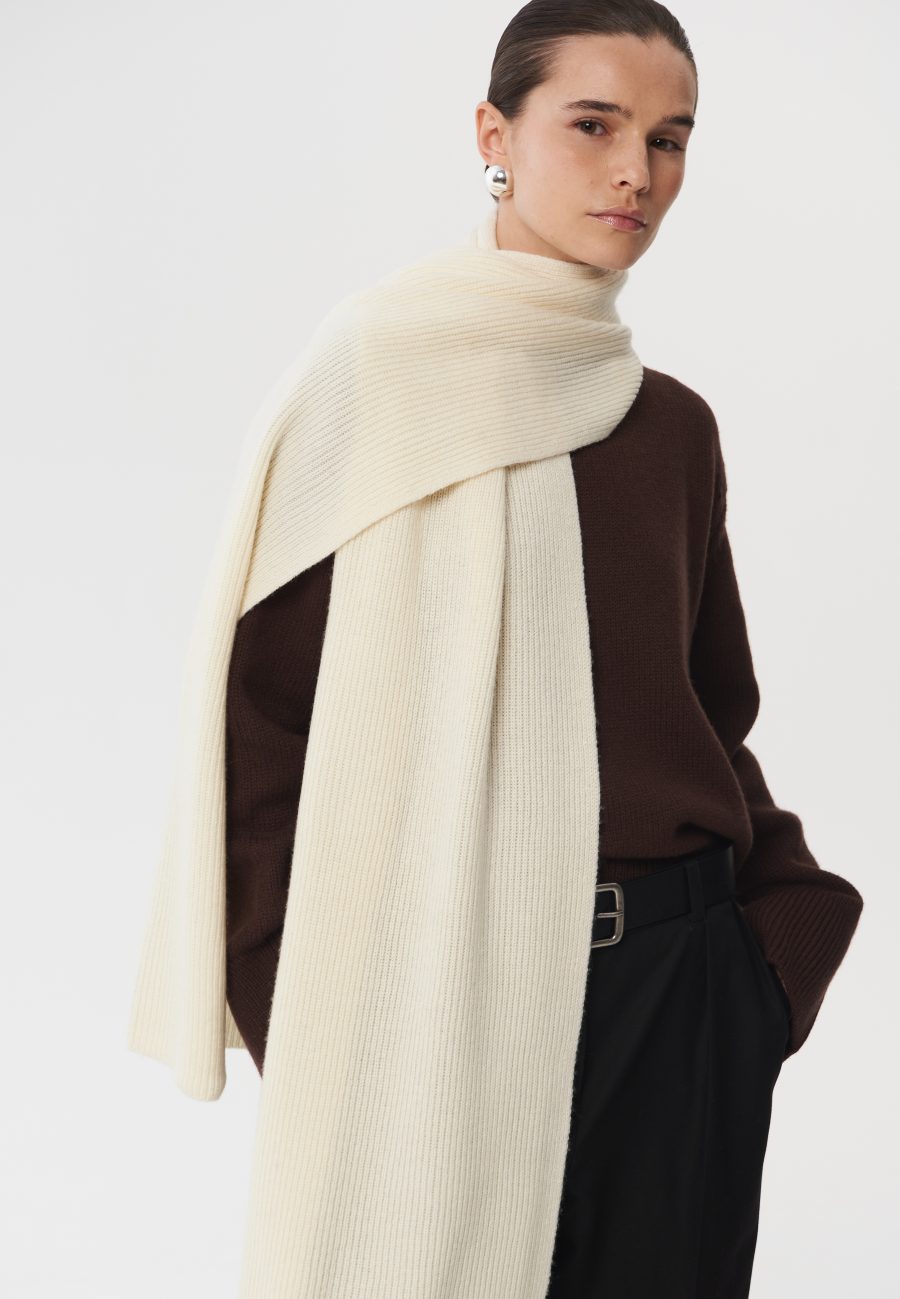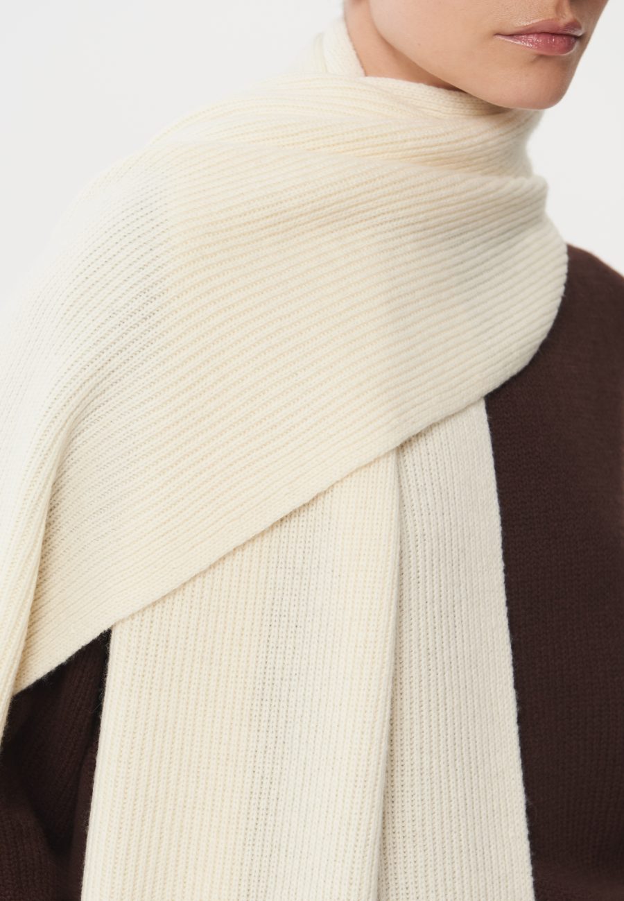 Широкий, длинный и теплый шарф Mist, связанный из мягкой и комфортной шерсти мериноса. Идеальная модель, чтобы накинуть поверх пальто или обернуть вокруг шеи. Базовый оттенок позволит сочетать данную модель с любой верхней одеждой. Рекомендуем стилизовать с шапкой и перчатками Mist