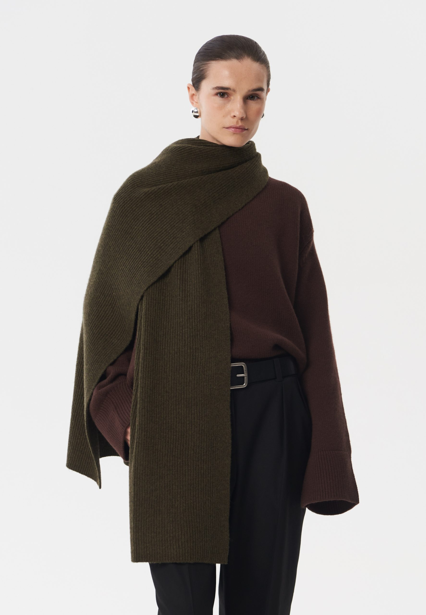 Широкий, длинный и теплый шарф Mist, связанный из мягкой и комфортной шерсти мериноса. Идеальная модель, чтобы накинуть поверх пальто или обернуть вокруг шеи. Базовый оттенок позволит сочетать данную модель с любой верхней одеждой. Рекомендуем стилизовать с шапкой и перчатками Mist