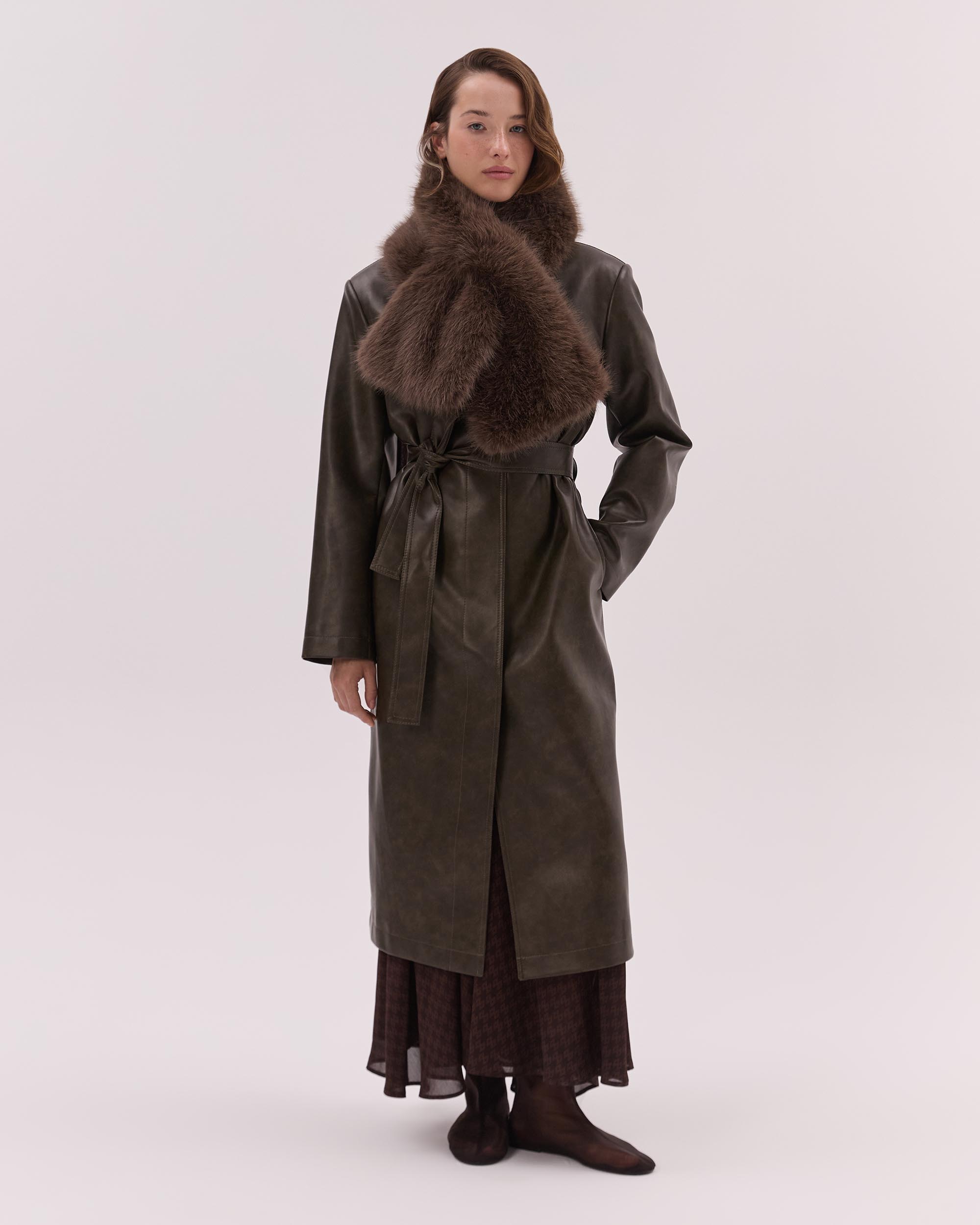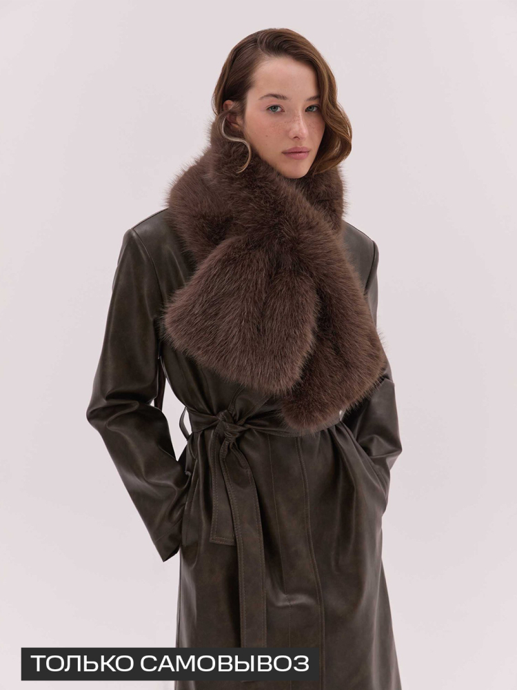 Шарф из экомеха. Красивое и теплое дополнение зимних и демисезонных образов. Особенно интересно смотрется с контрастными фактурами — экокожей или драпом. Удобно фиксируется на шее за счет специального разреза.