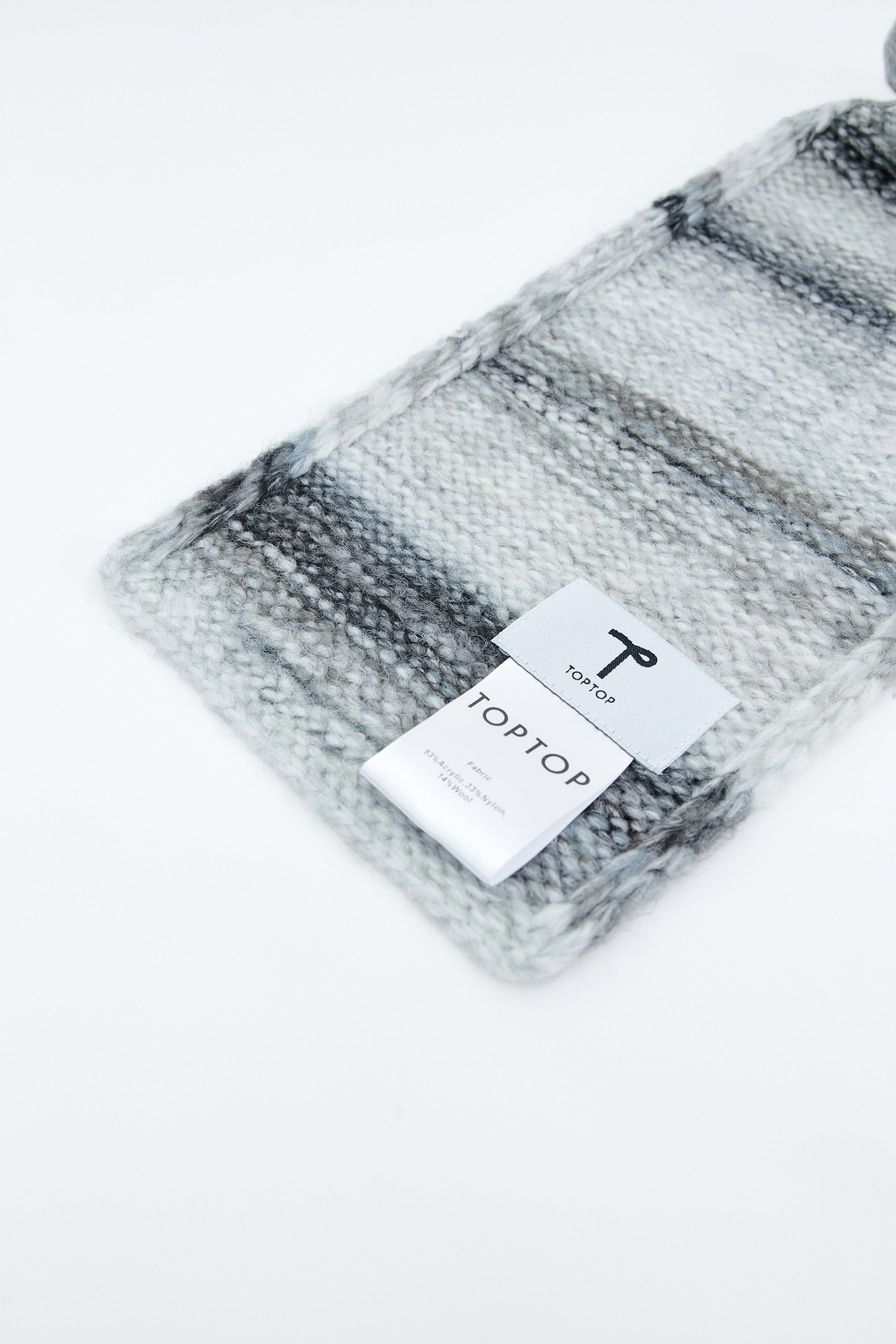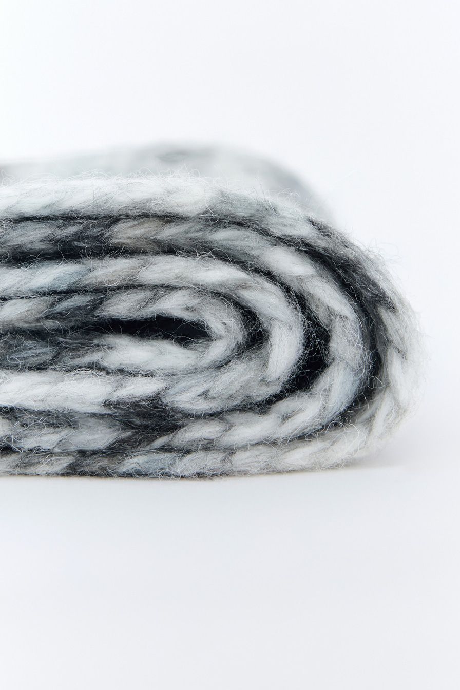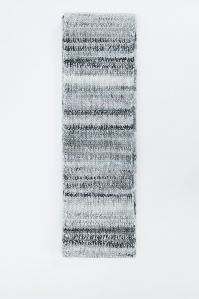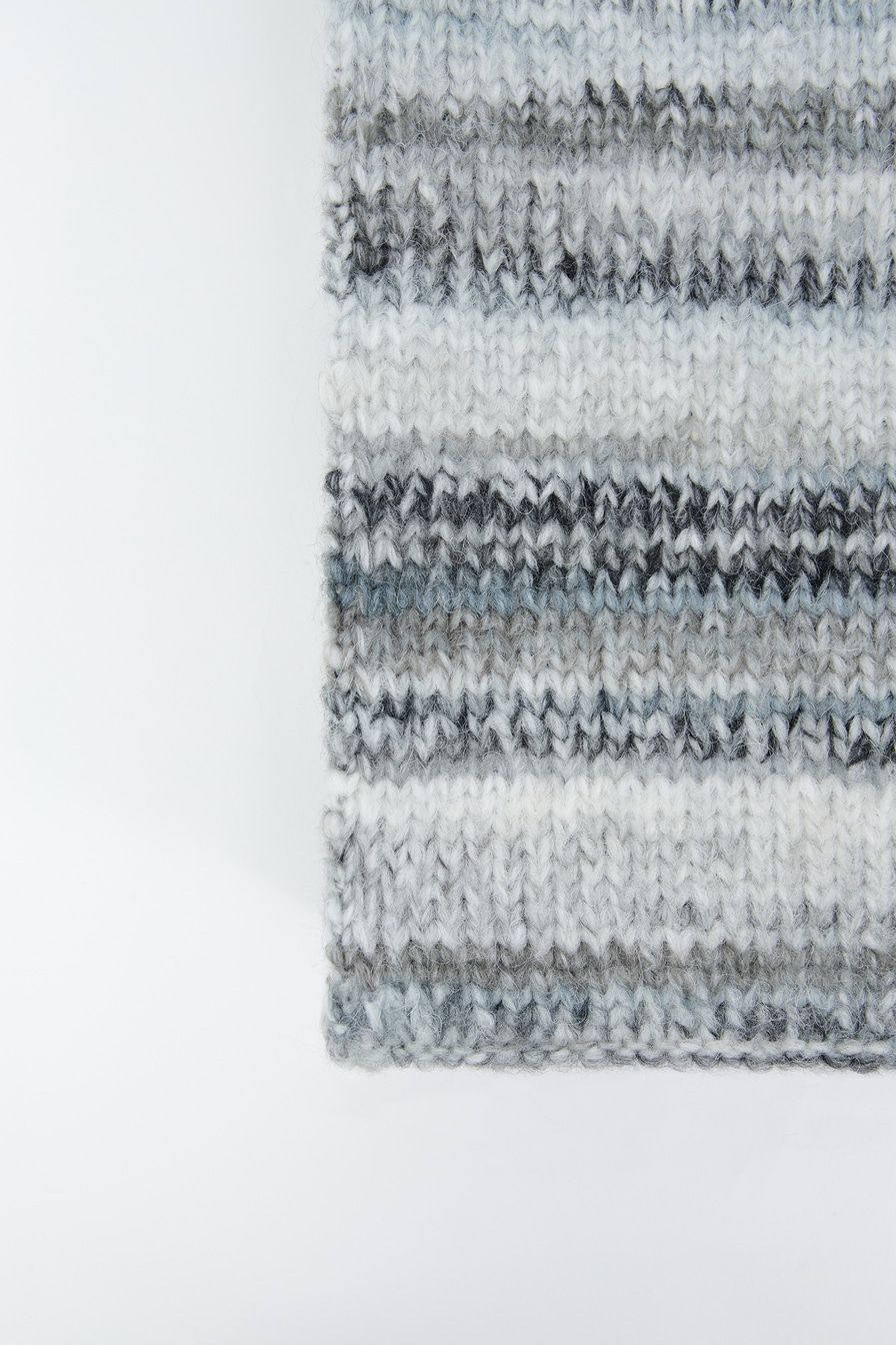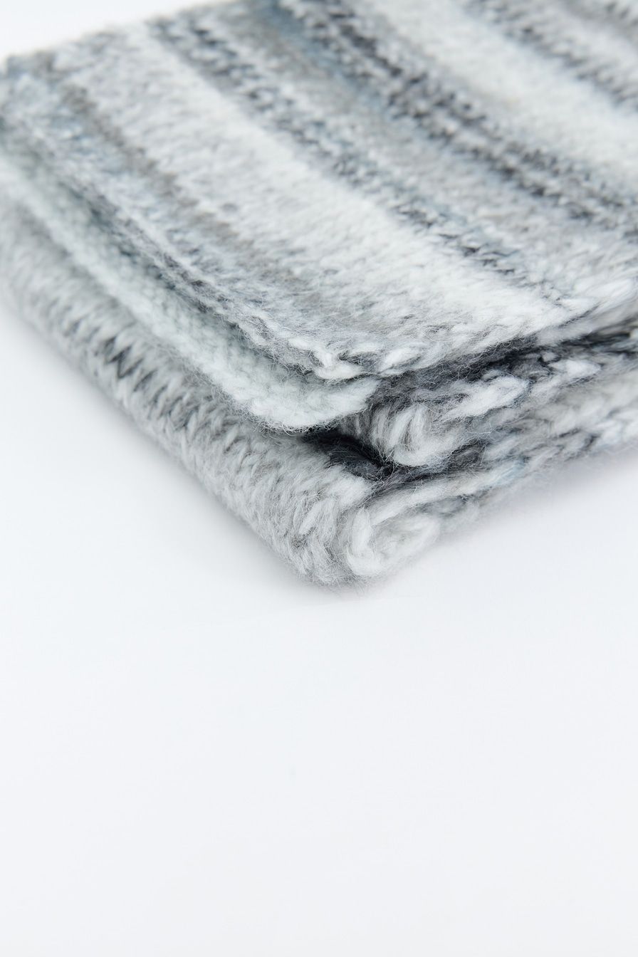 Узкий шарф из смесовой пряжи с добавлением шерсти – модель с градиентным принтом «полоска» в серых тонах.