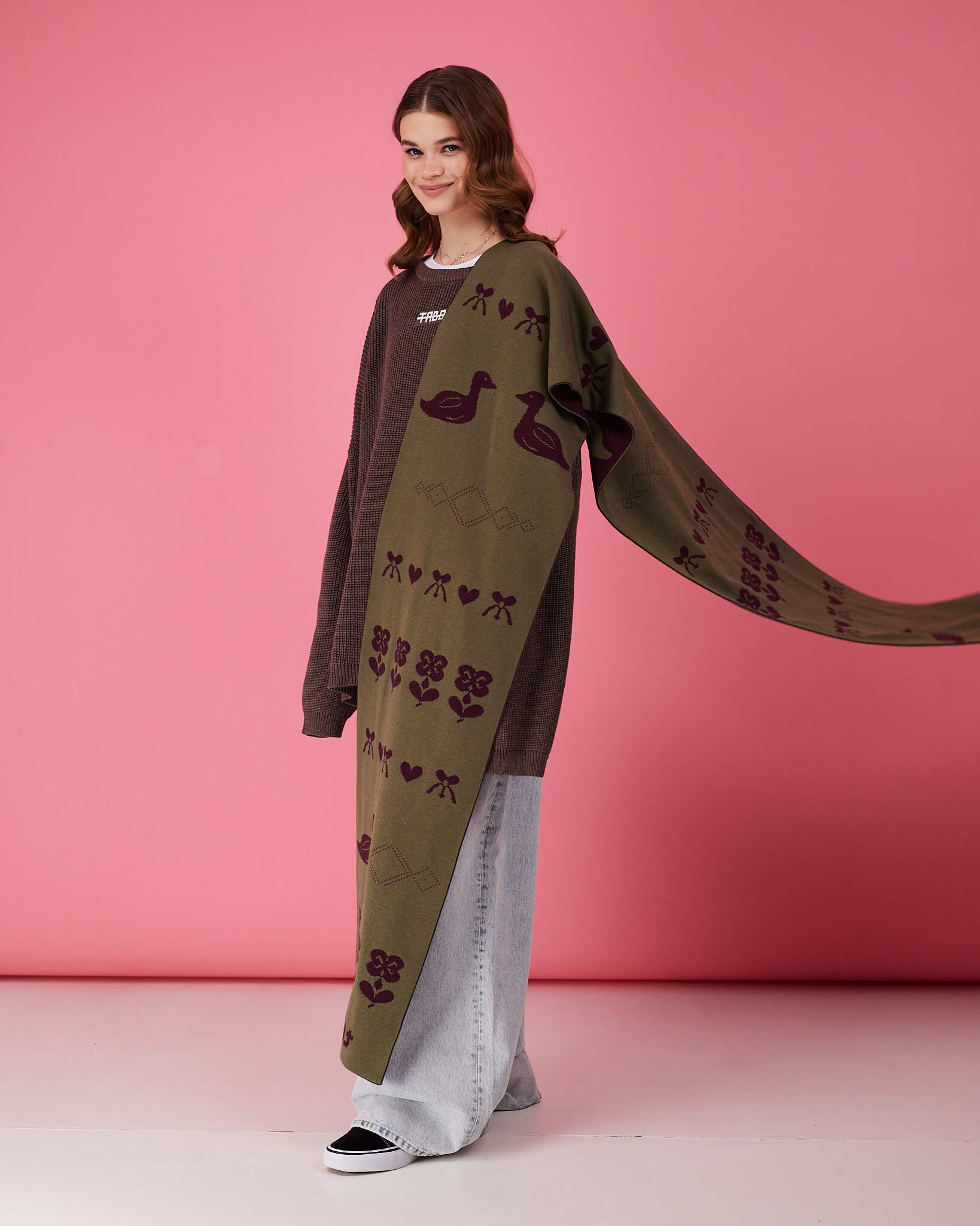 Двухсторонний шарф с фирменным паттерном будет отличным дополнением к образу, шарф выполнен из хлопка, благодаря чему он приятен к телу, а его большой размер позволяет стилизовать его под любой образ.