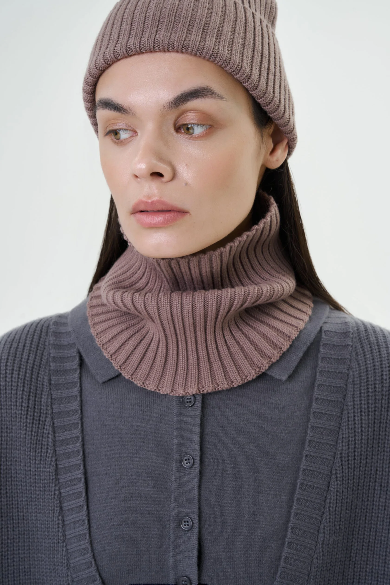 Снуд цвета какао выполнен из шерсти и акрила.