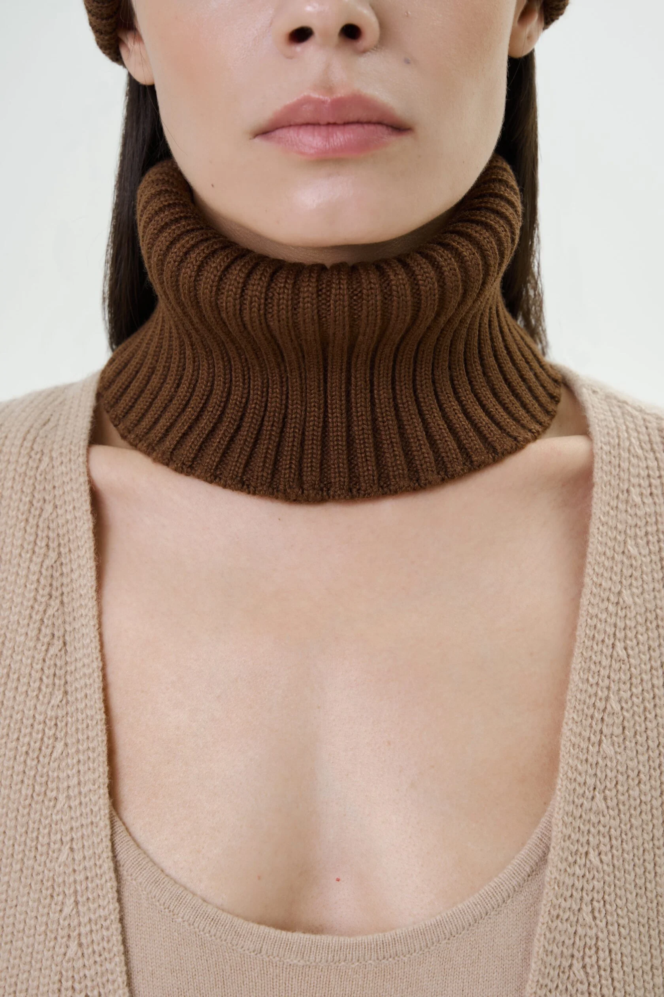 Снуд коричневого цвета выполнен из шерсти и акрила.