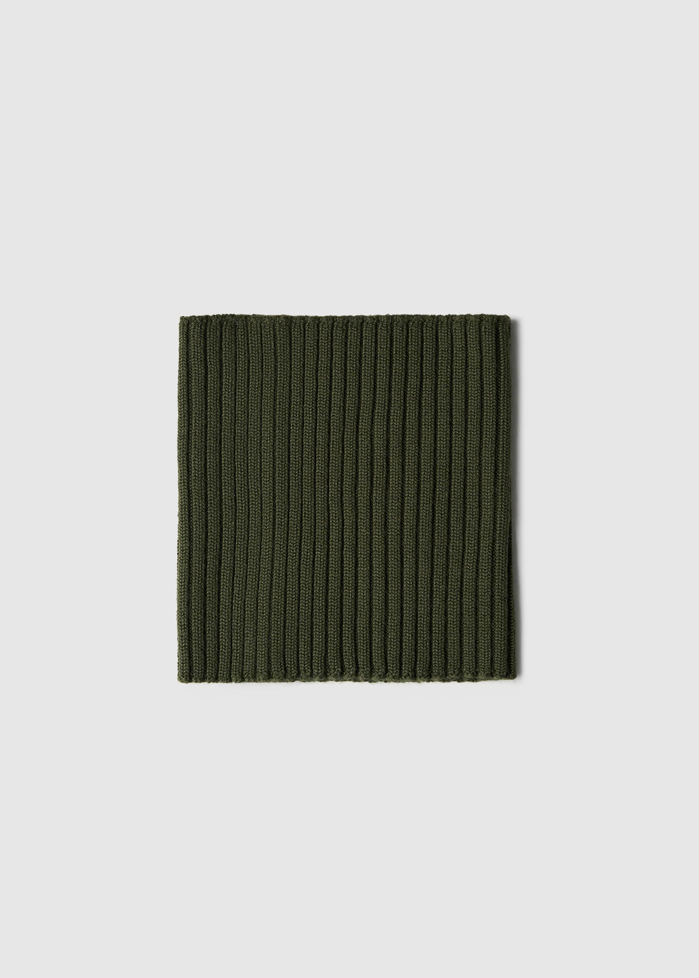 Снуд оливкового цвета выполнен из шерсти и акрила.