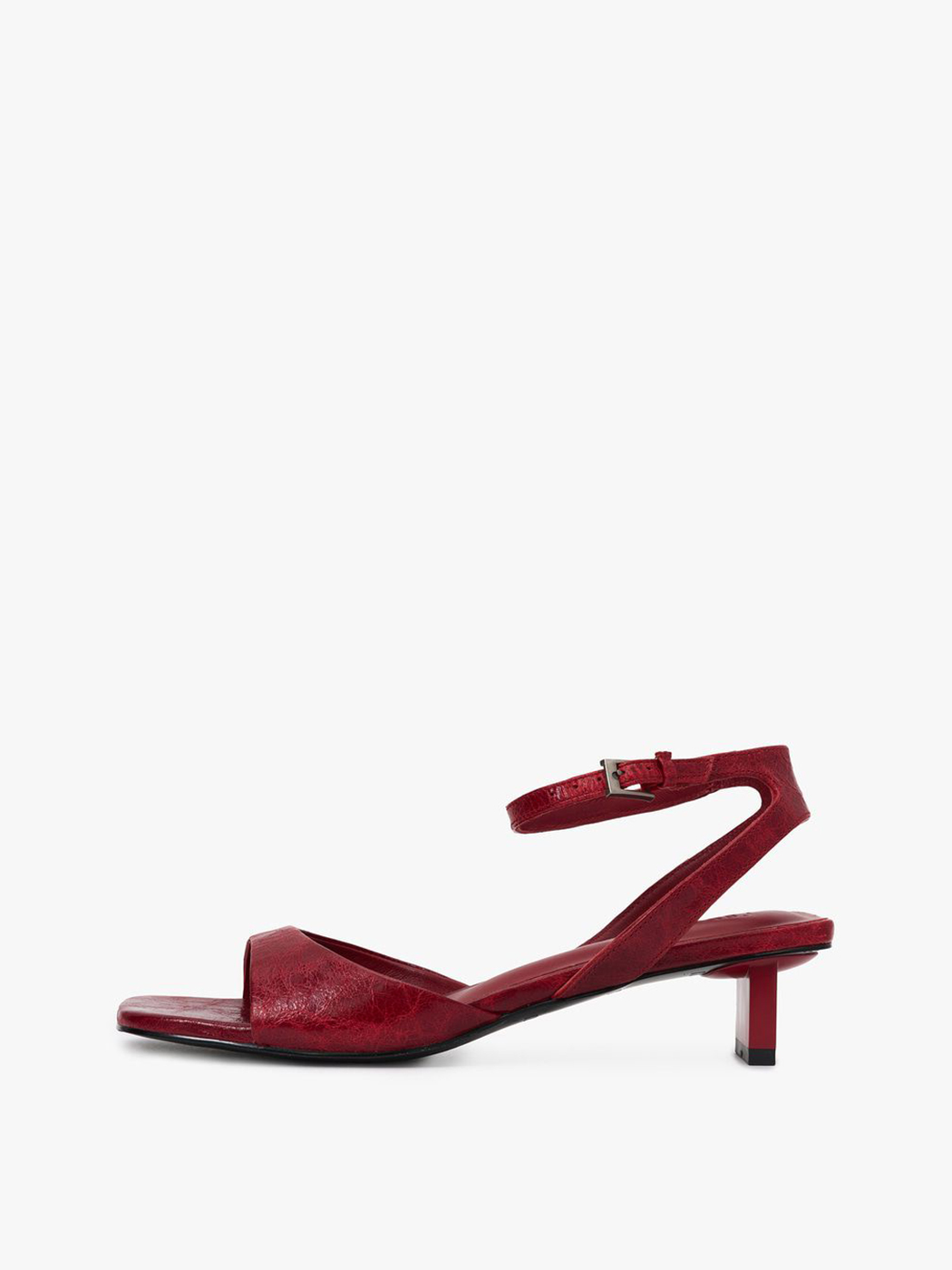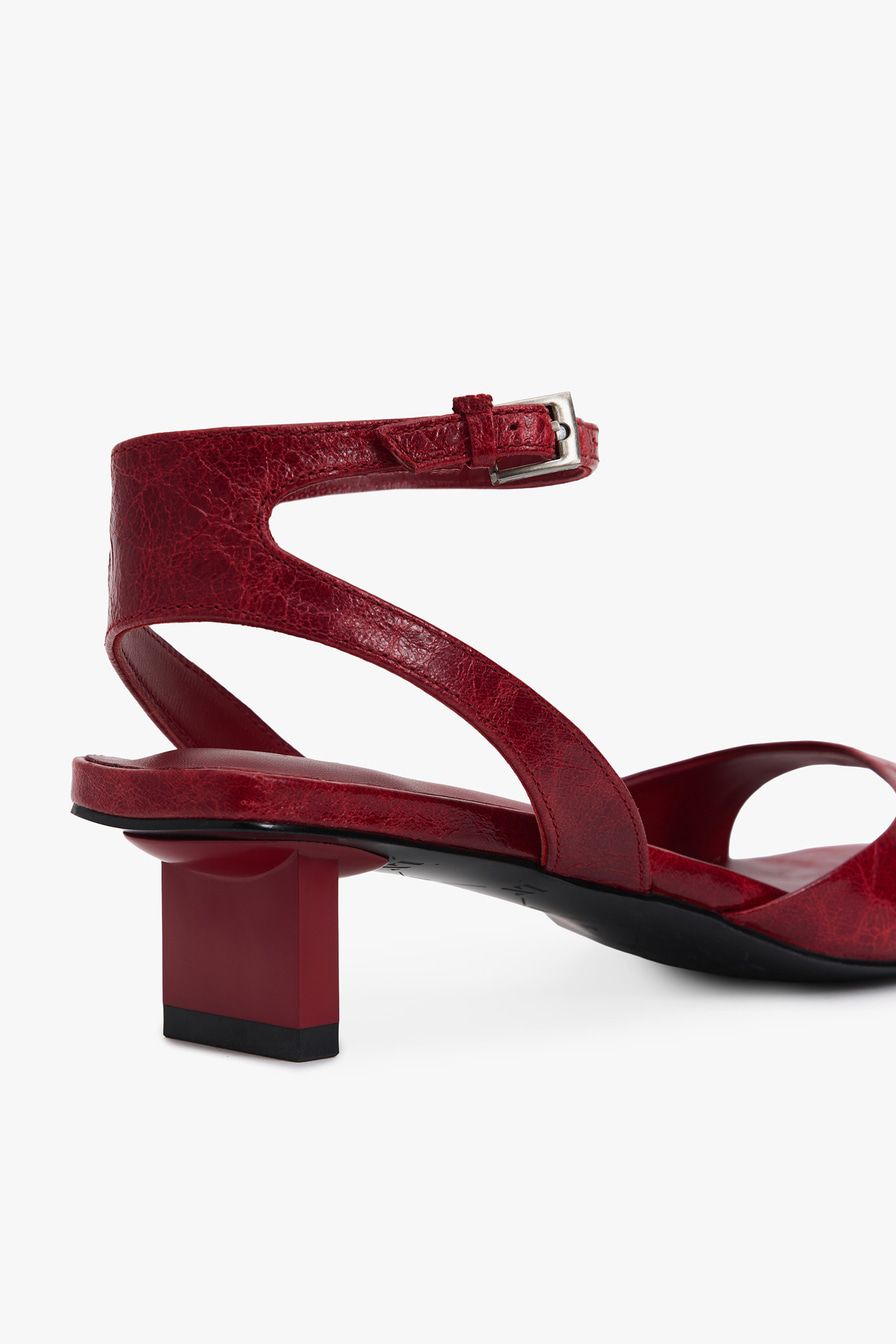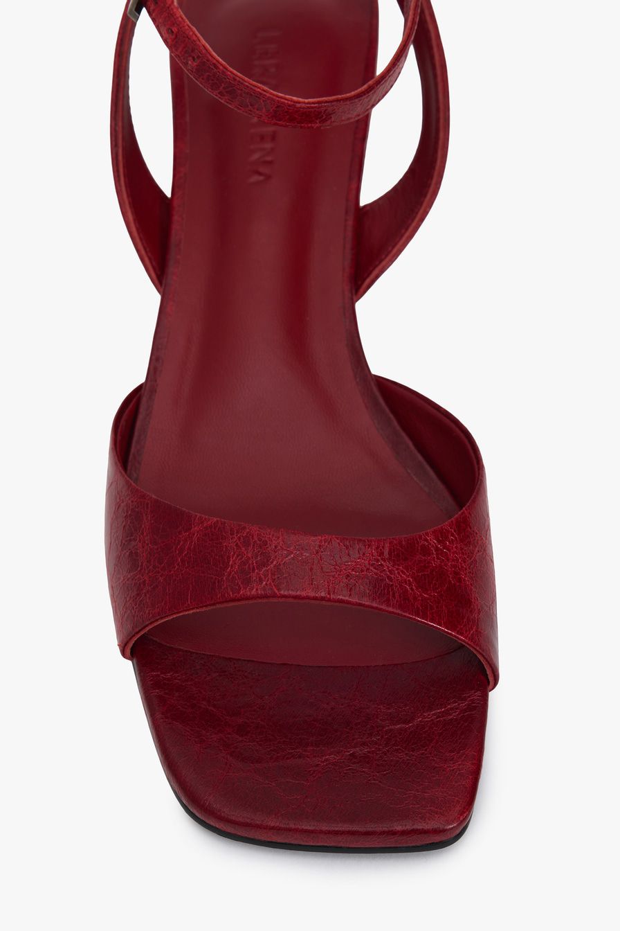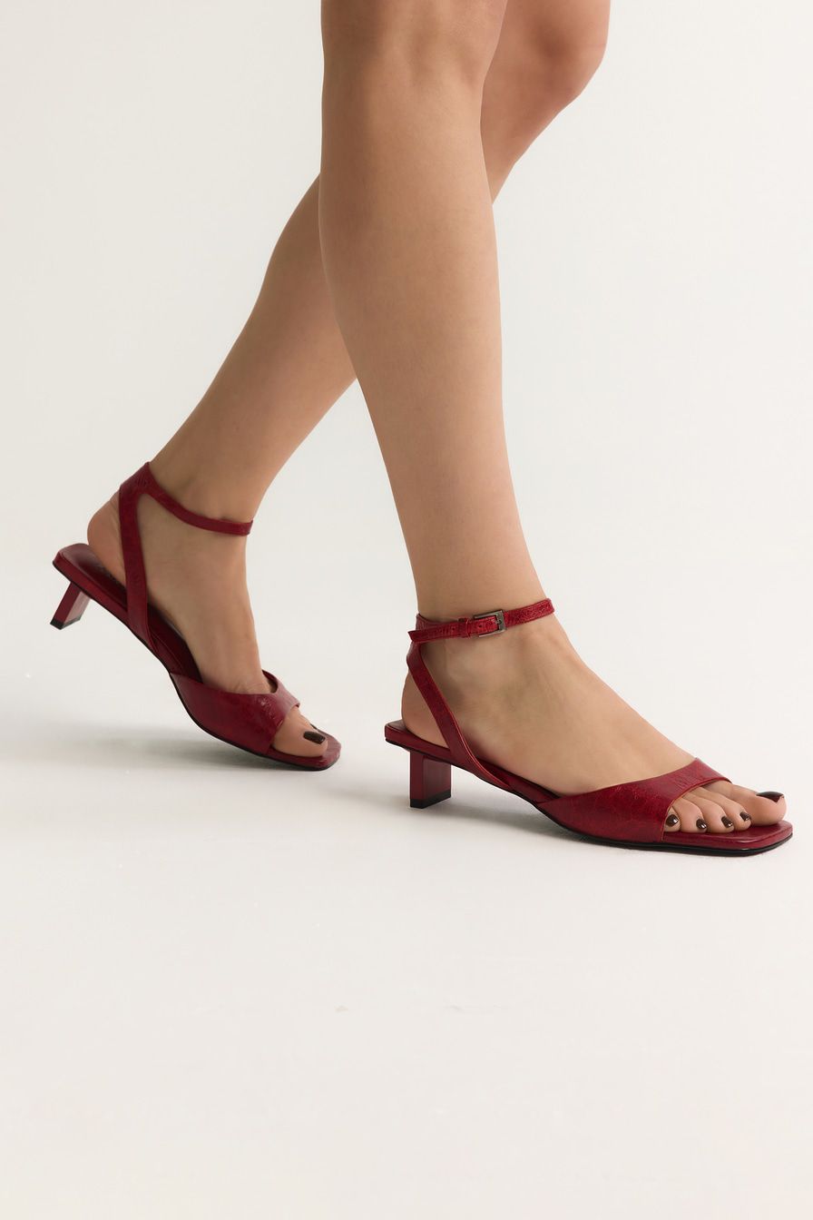 Красные босоножки из натуральной кожи – пара на широком каблуке средней высоты.