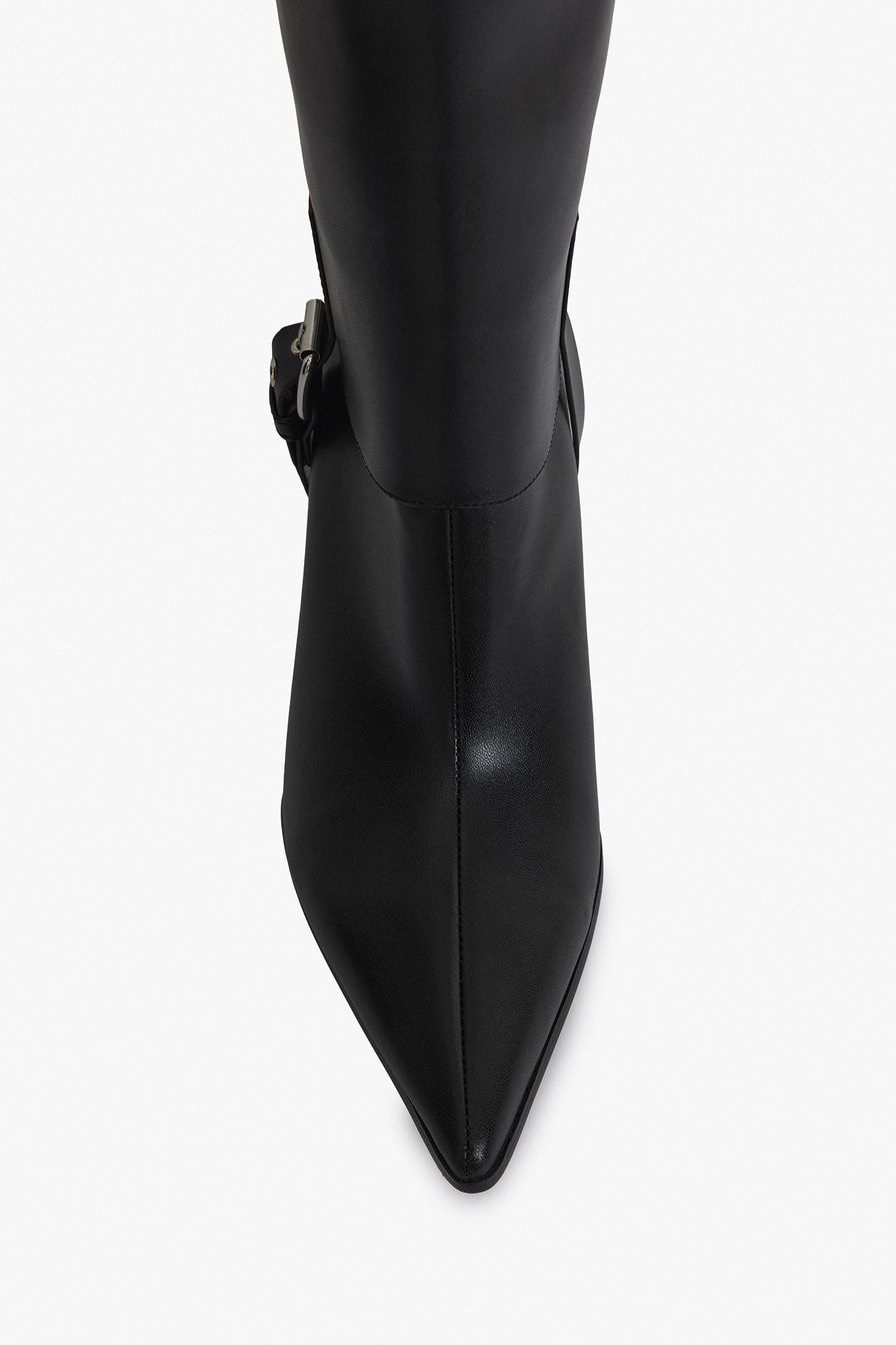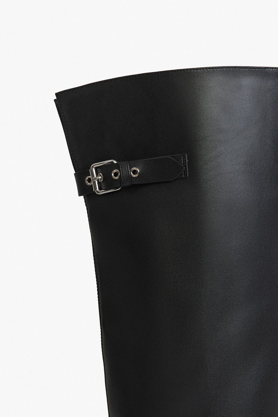 Черные ботфорты из микрофибры – высокопрочного заменителя натуральной кожи на основе микроволокон. Благодаря отстегивающемуся голенищу ботфорты трансфомируются в ботильоны.