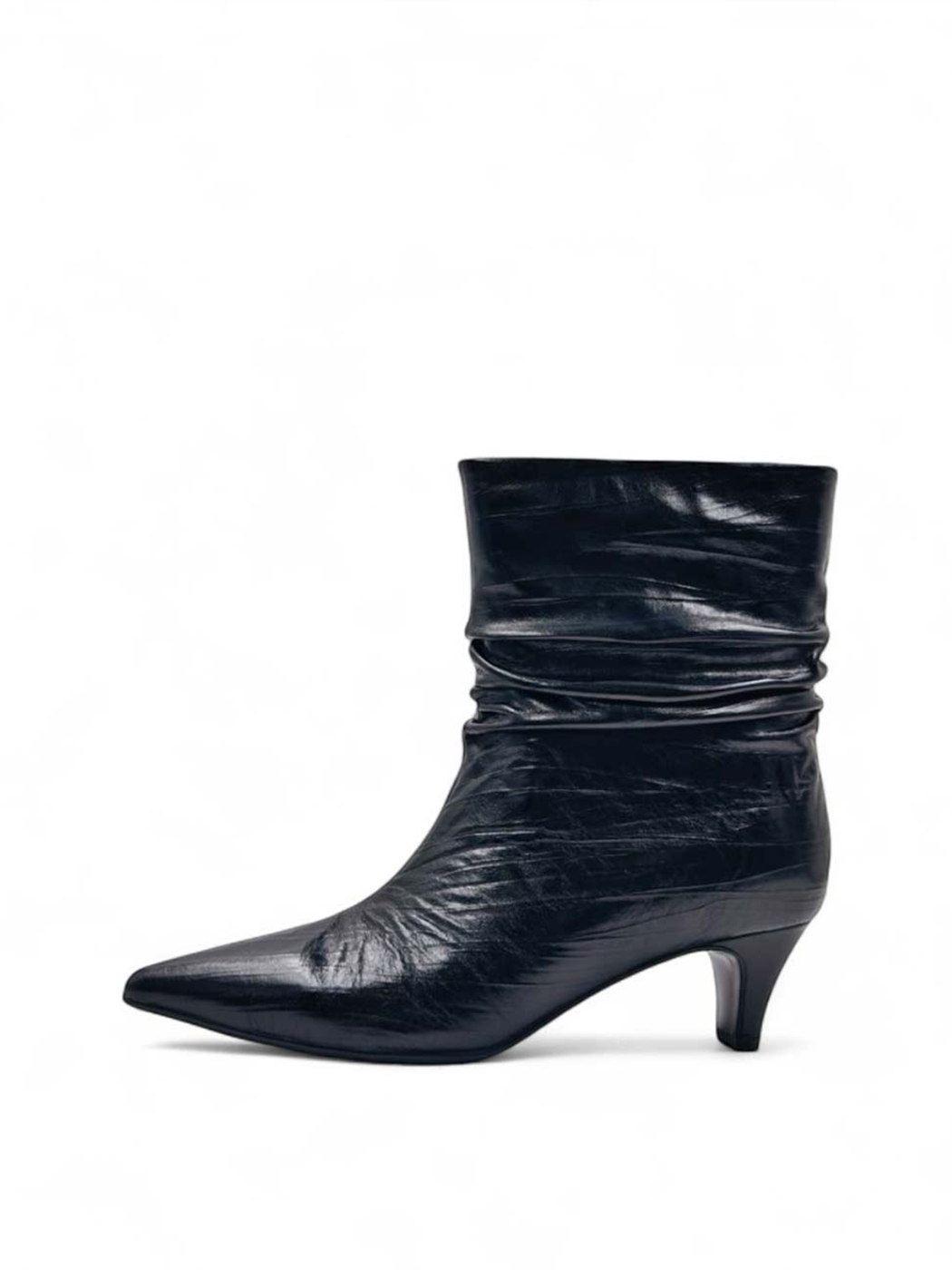 Ботильоны на низком каблуке с необычным рельефом и драпировками - идеальный выбор на холодную погоду.