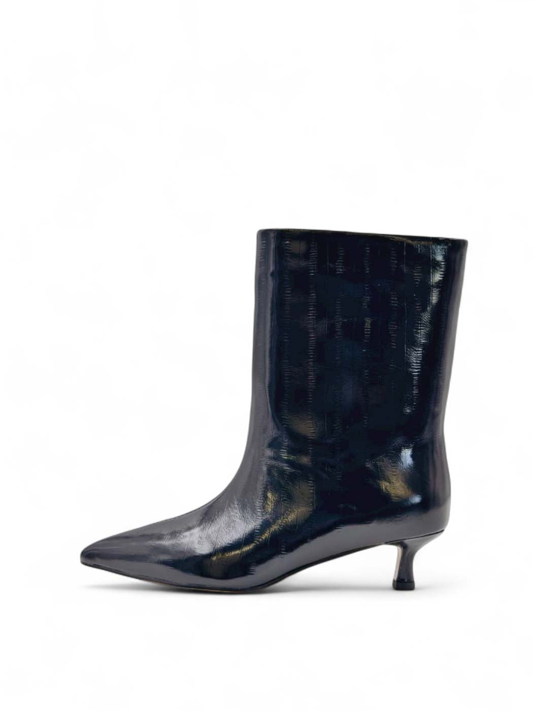 Ботильоны из натуральной кожи черного цвета с имитацией вертикальных полосок.