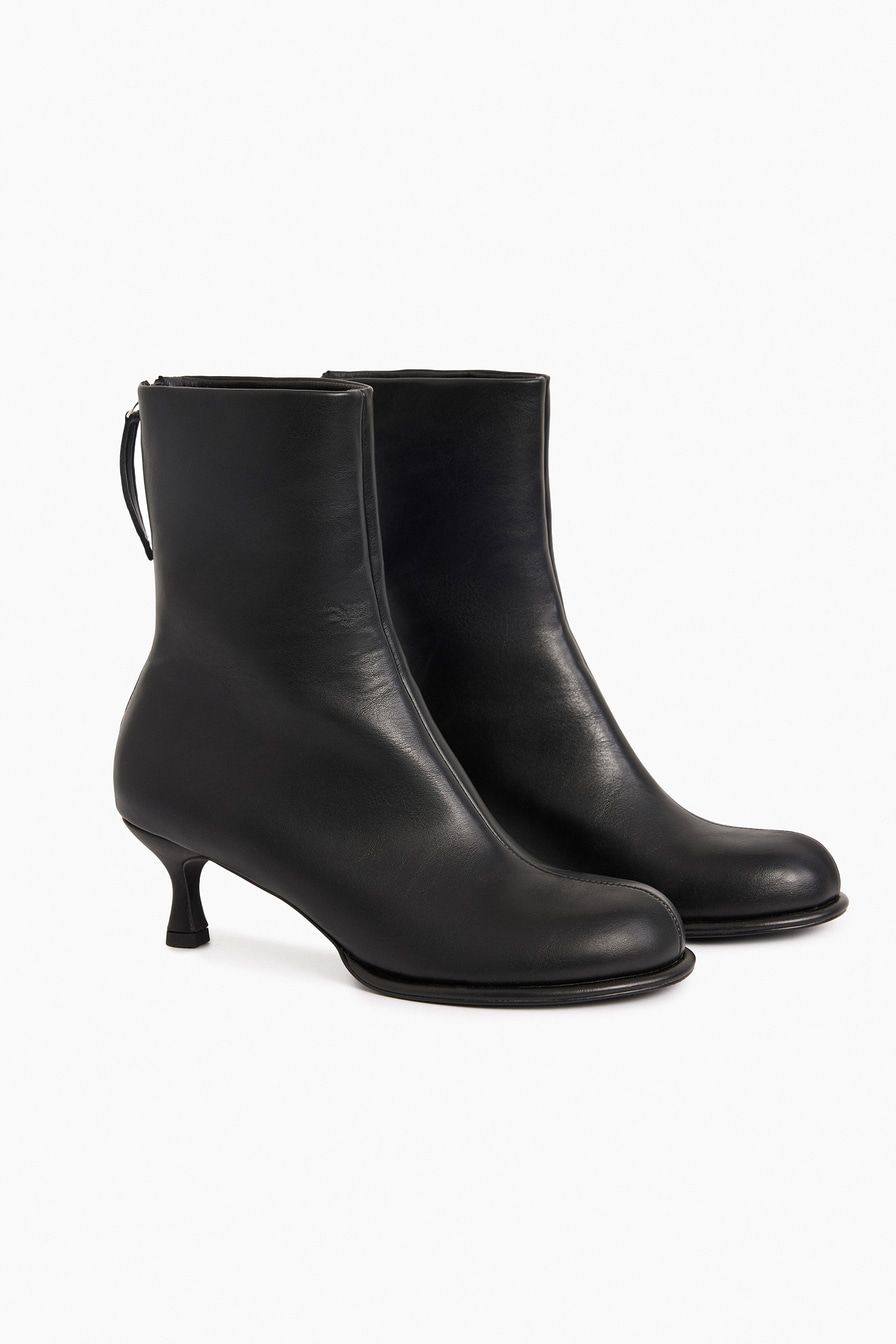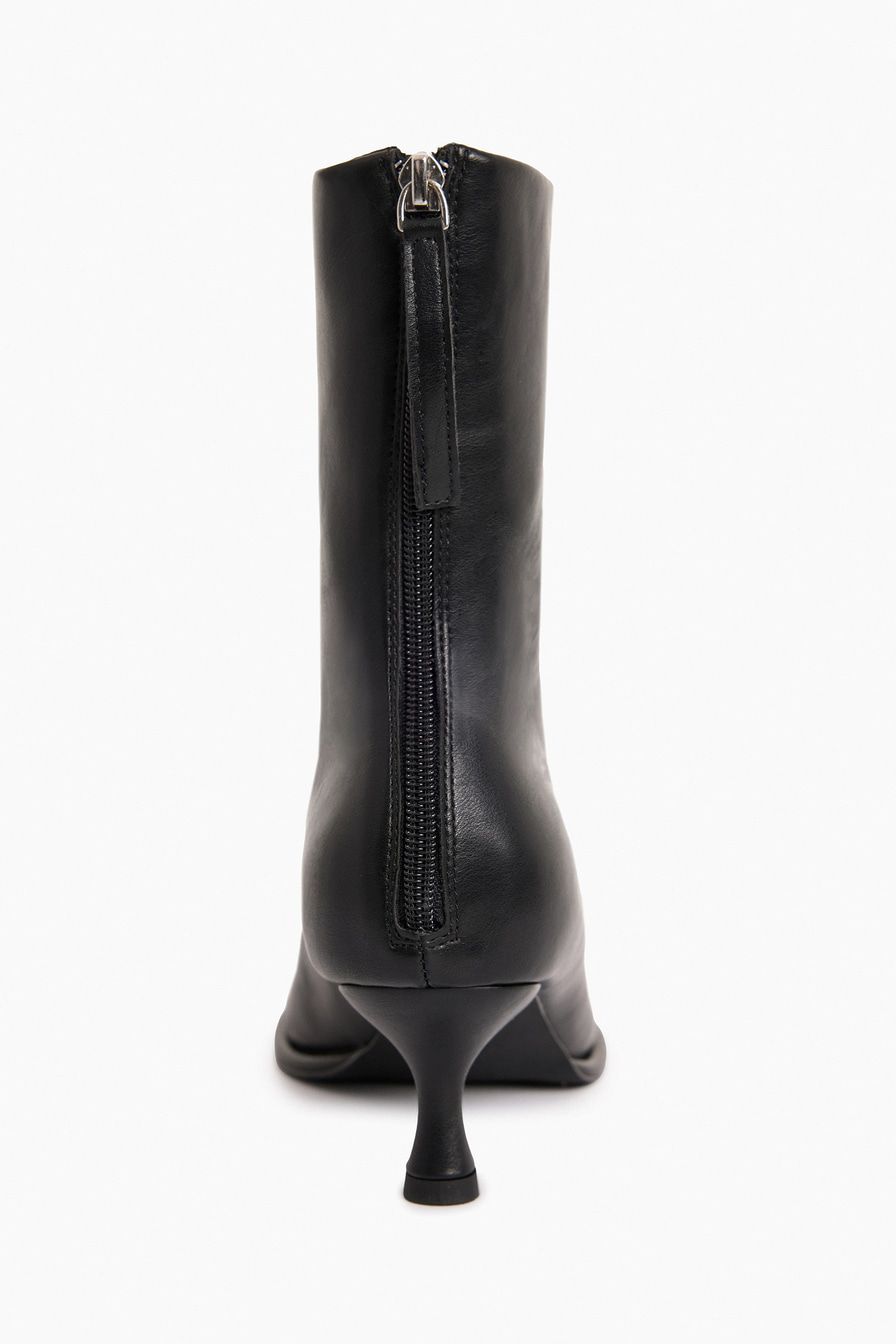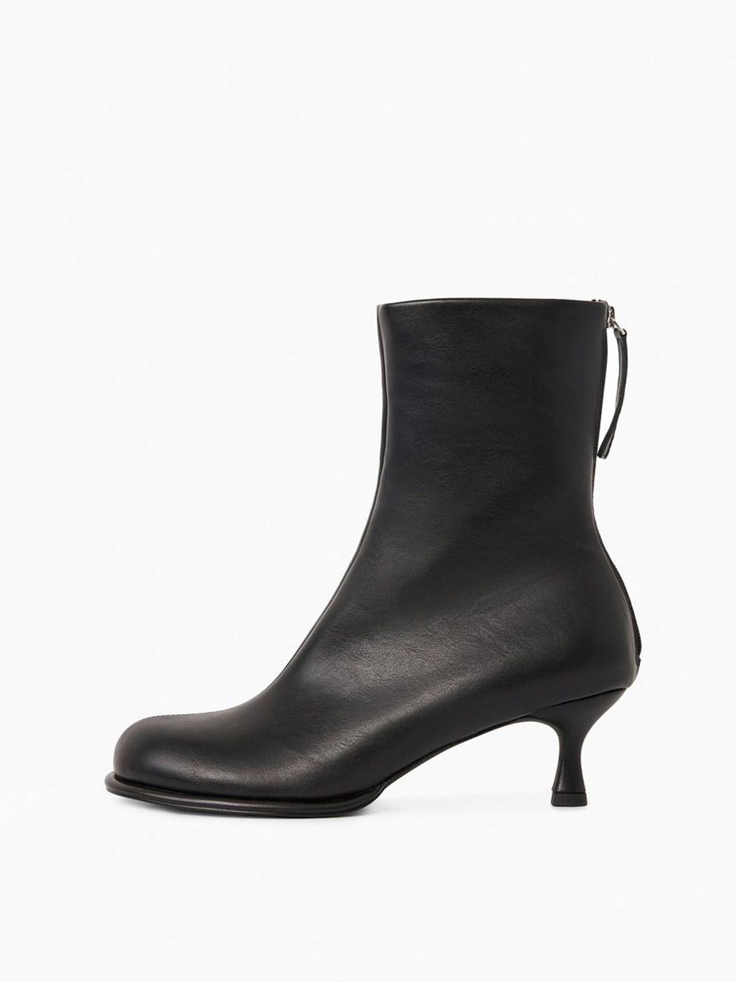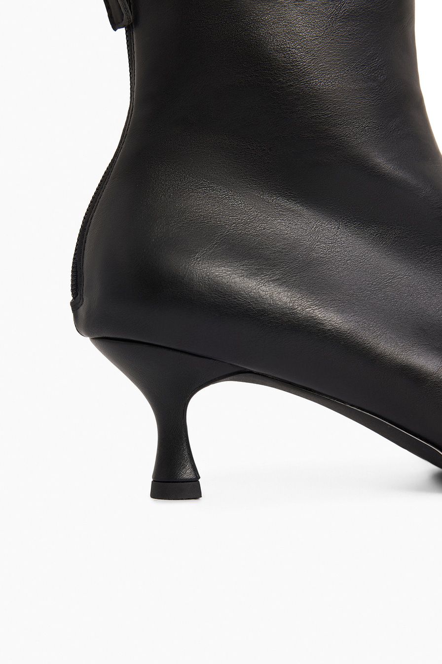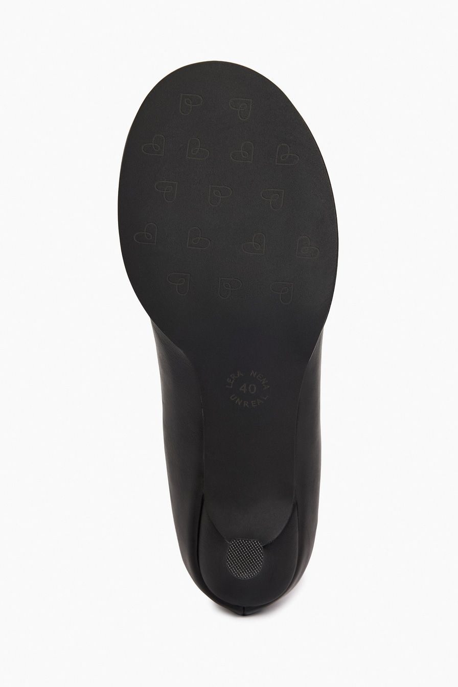Черные ботильоны из экокожи – модель с круглым мысом на высоком каблуке. Пара дополнена мягкой байковой подкладкой.
